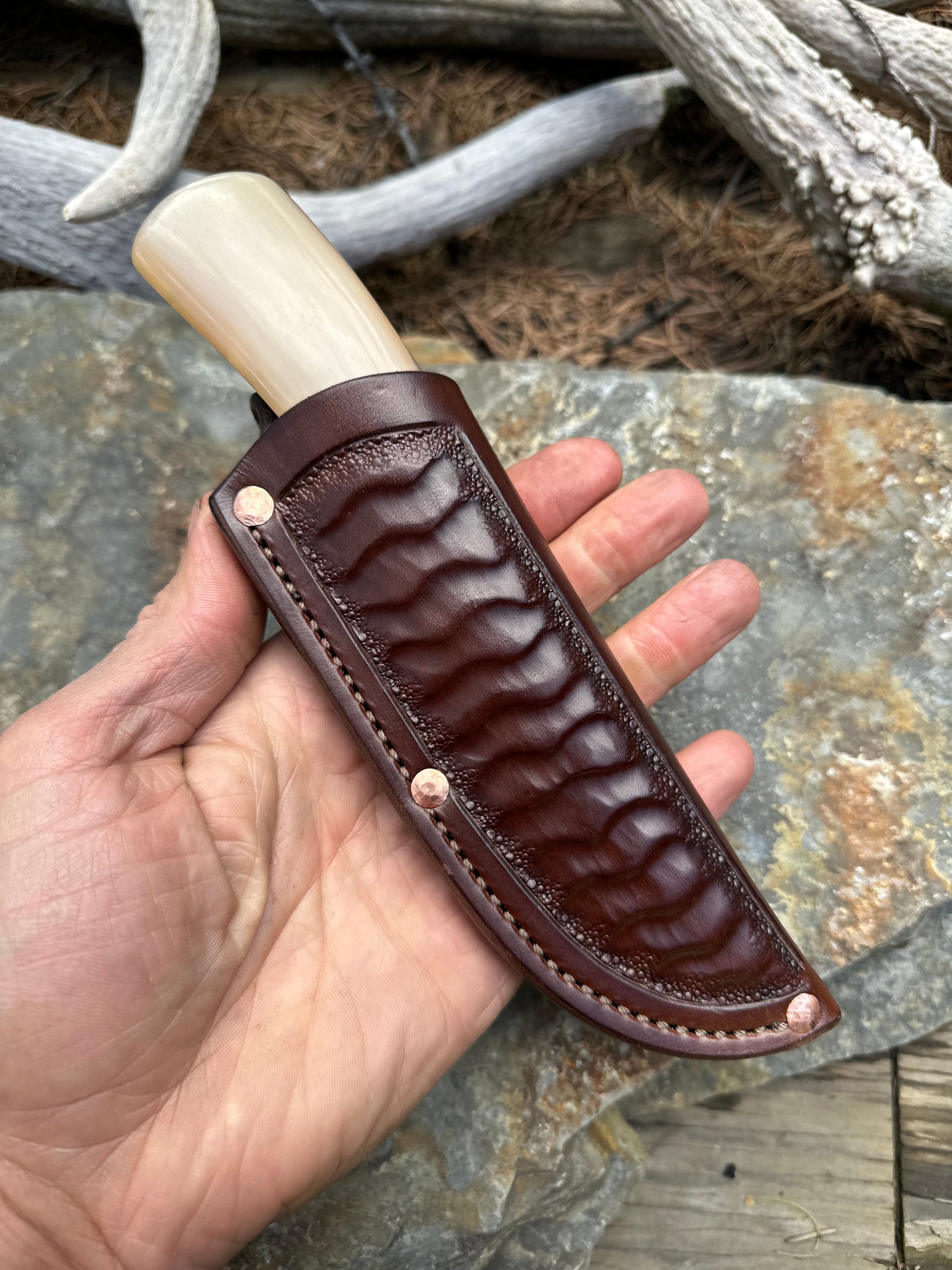 - Brown Ripple Tooled Pouch Sheath w/ Copper Rivets