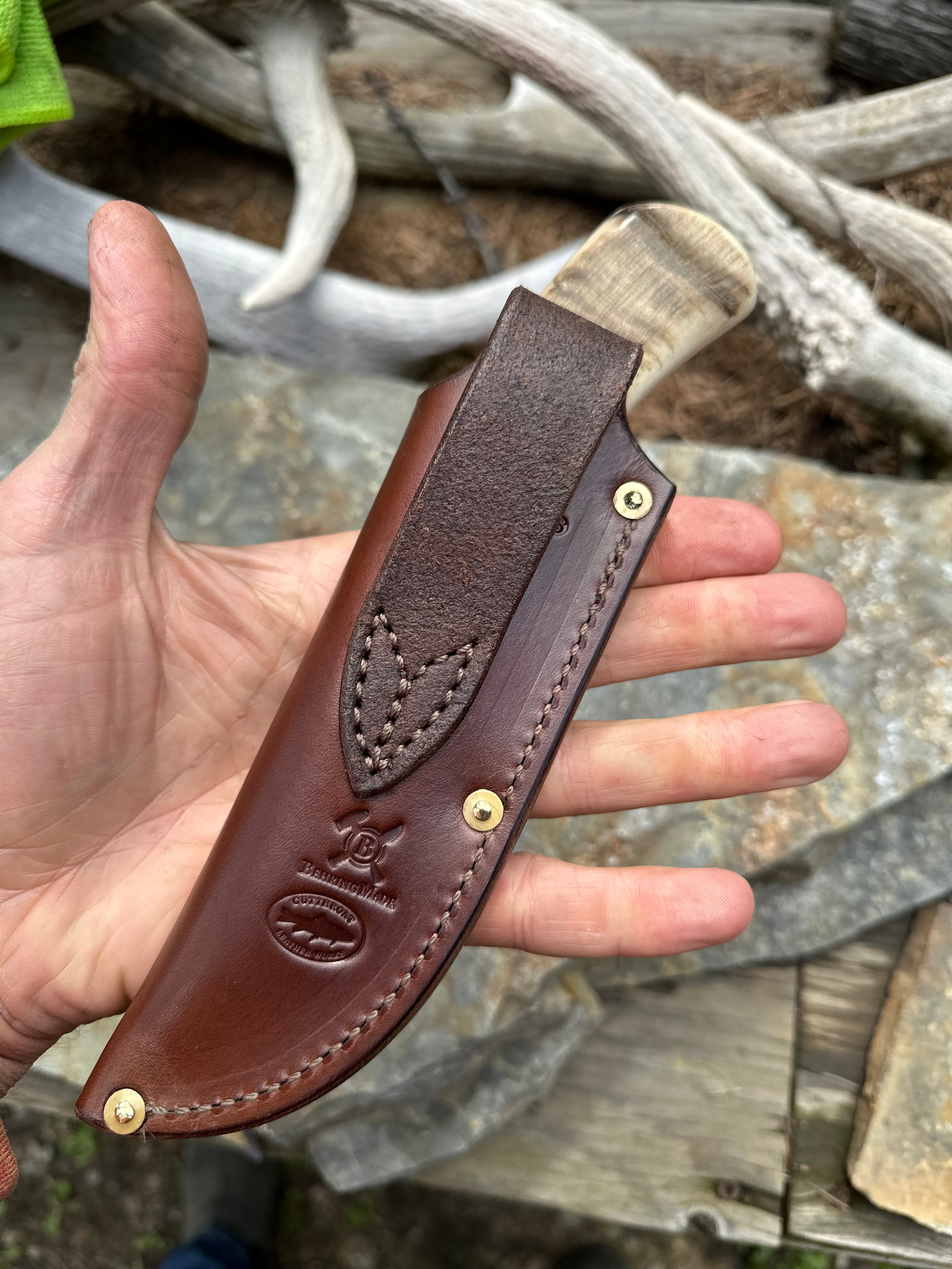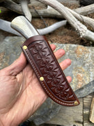 - Brown Tooled Pouch Sheath w/ Brass Rivets