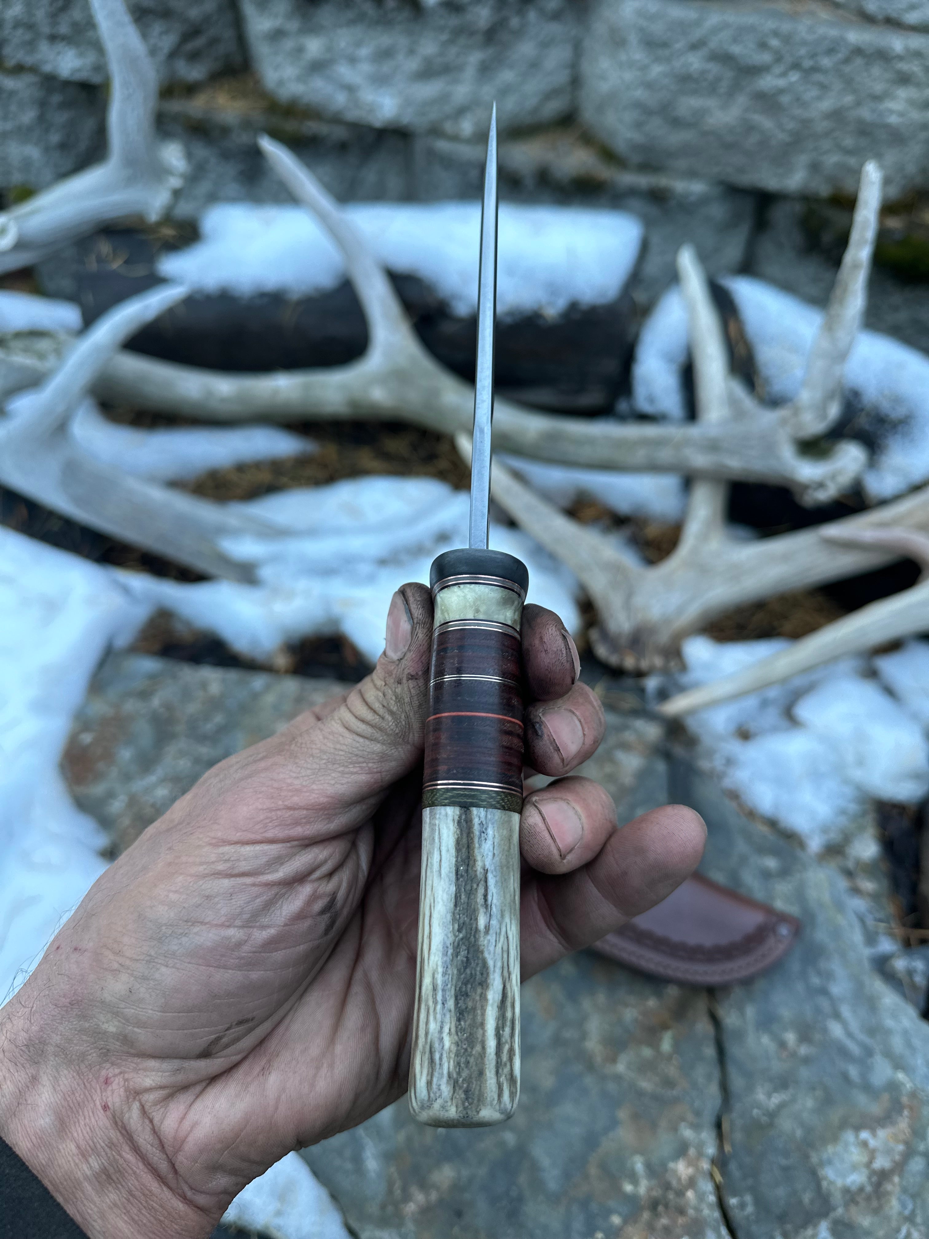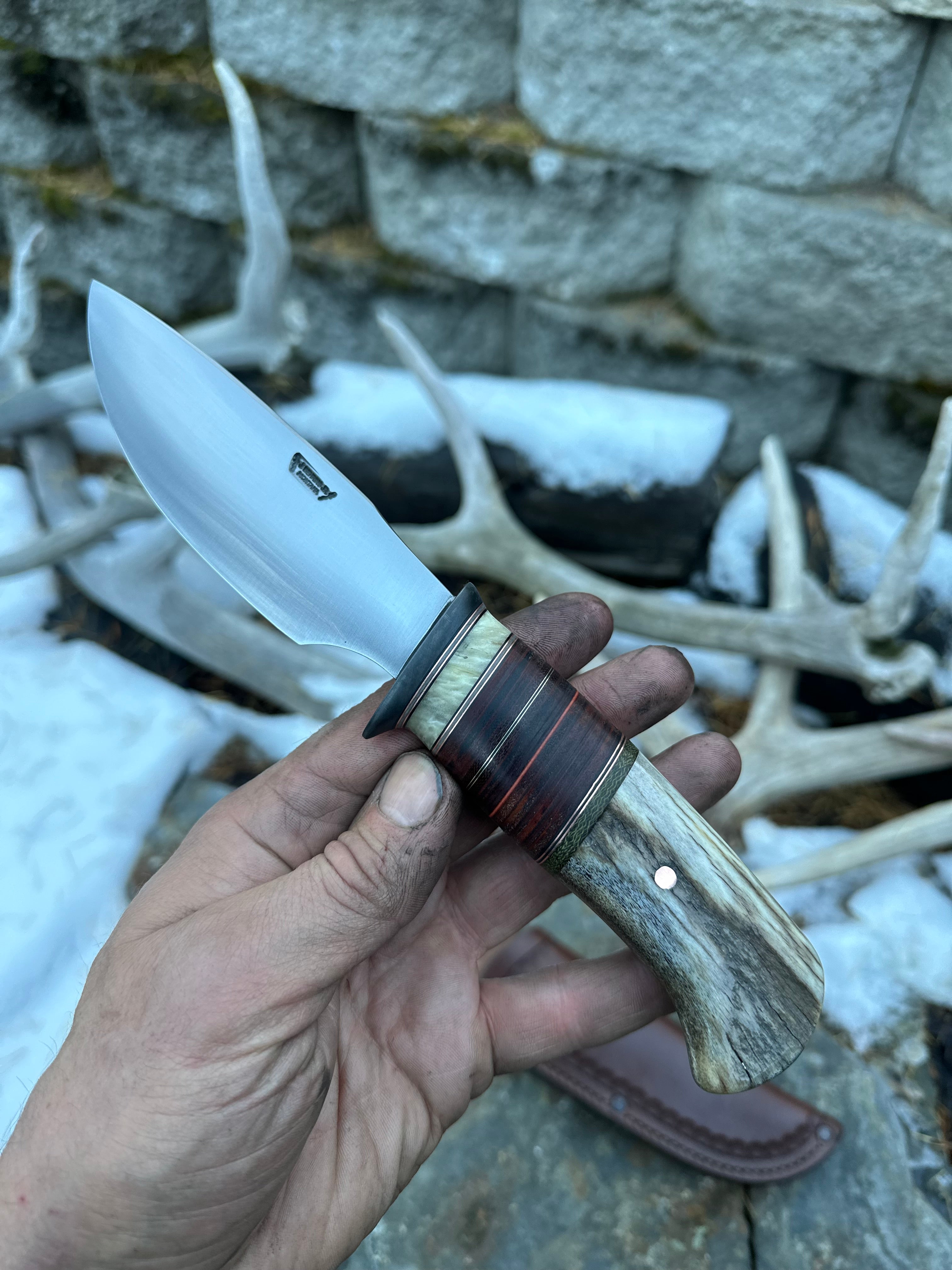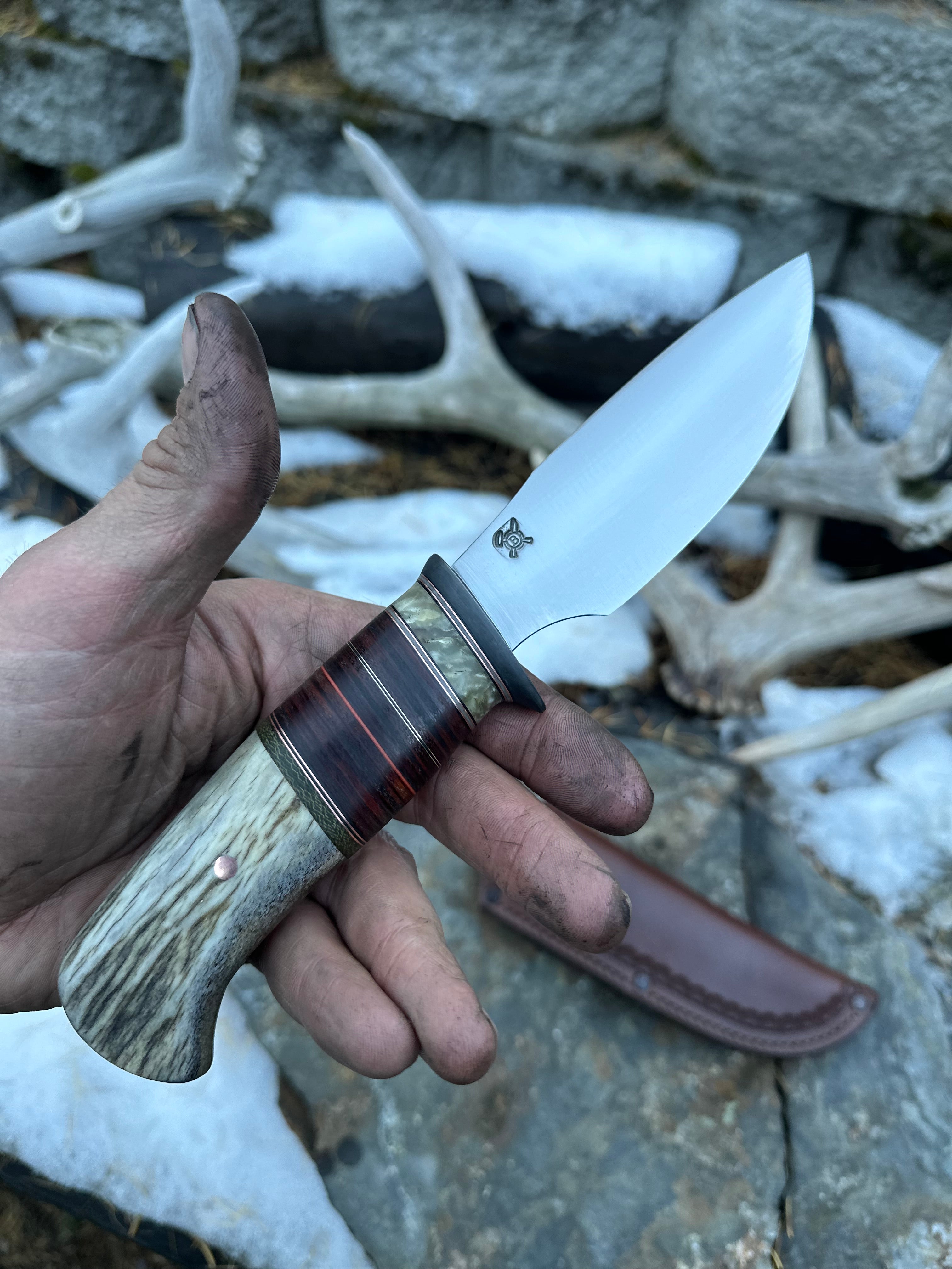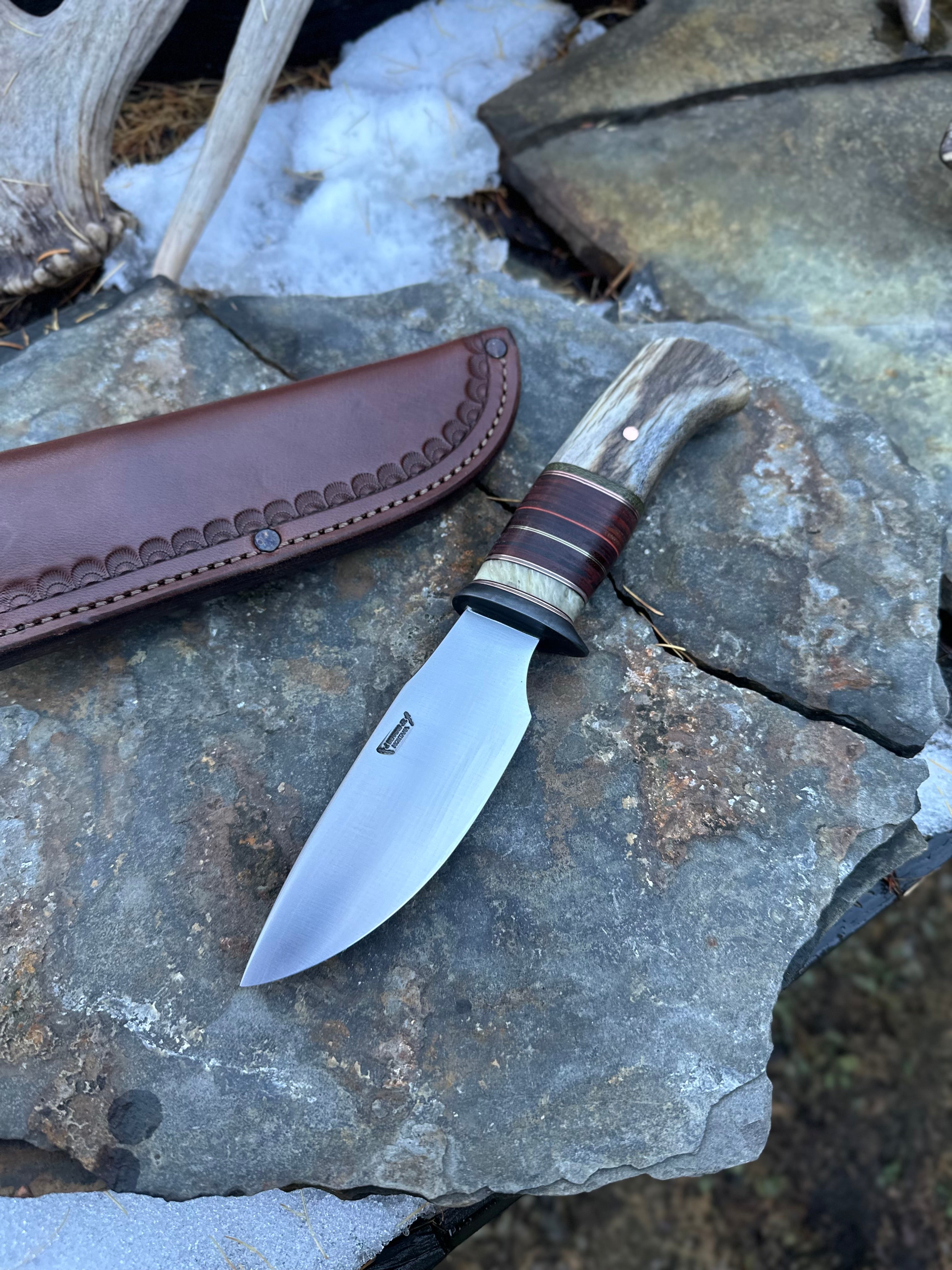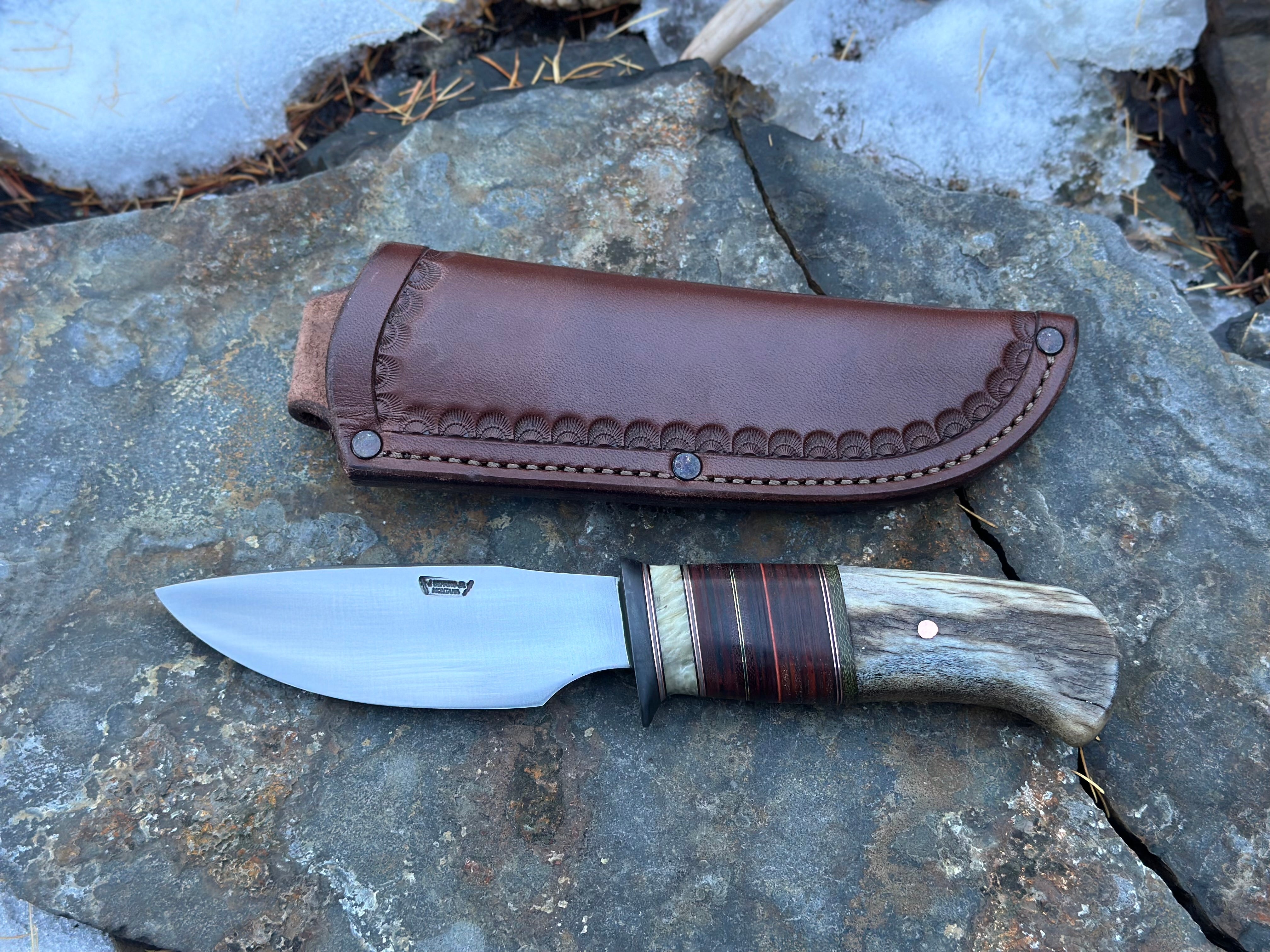- Musk Ox Boss, Horsehide, Copper, Brass, Grey Fiber, Green Micarta, & Black Fiber Spacers