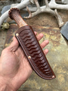 - Brown Ripple Tooled Pouch Sheath, w/ Copper Rivets
