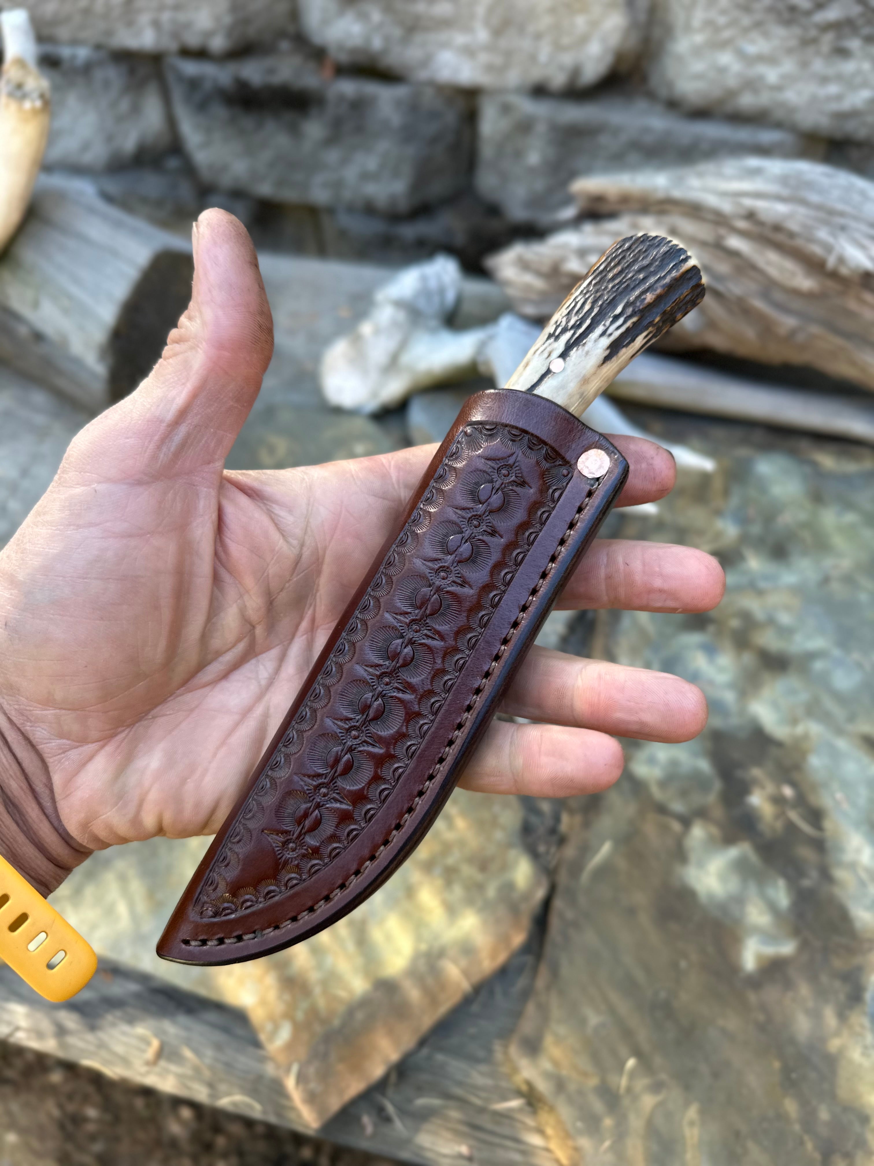 - Black Fiber, Copper, Horsehide, Maroon Fiber & Mammoth Ivory Handle