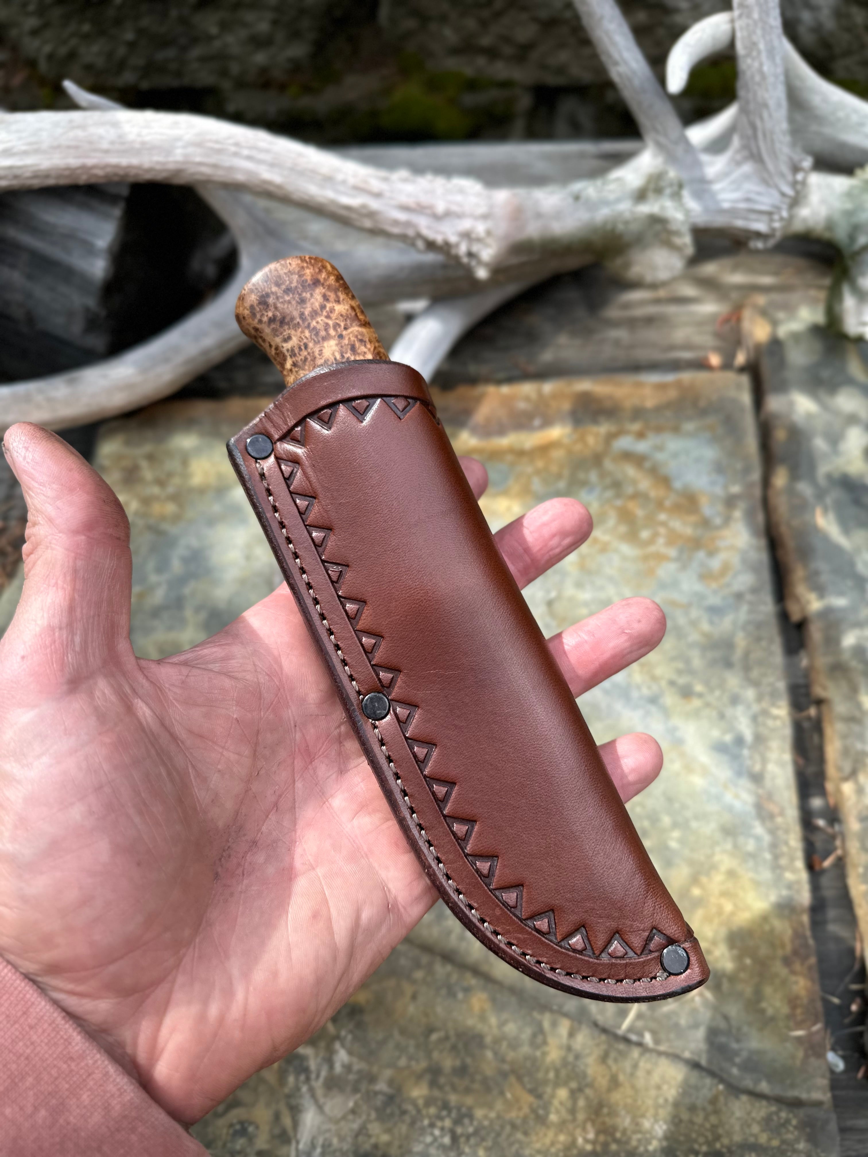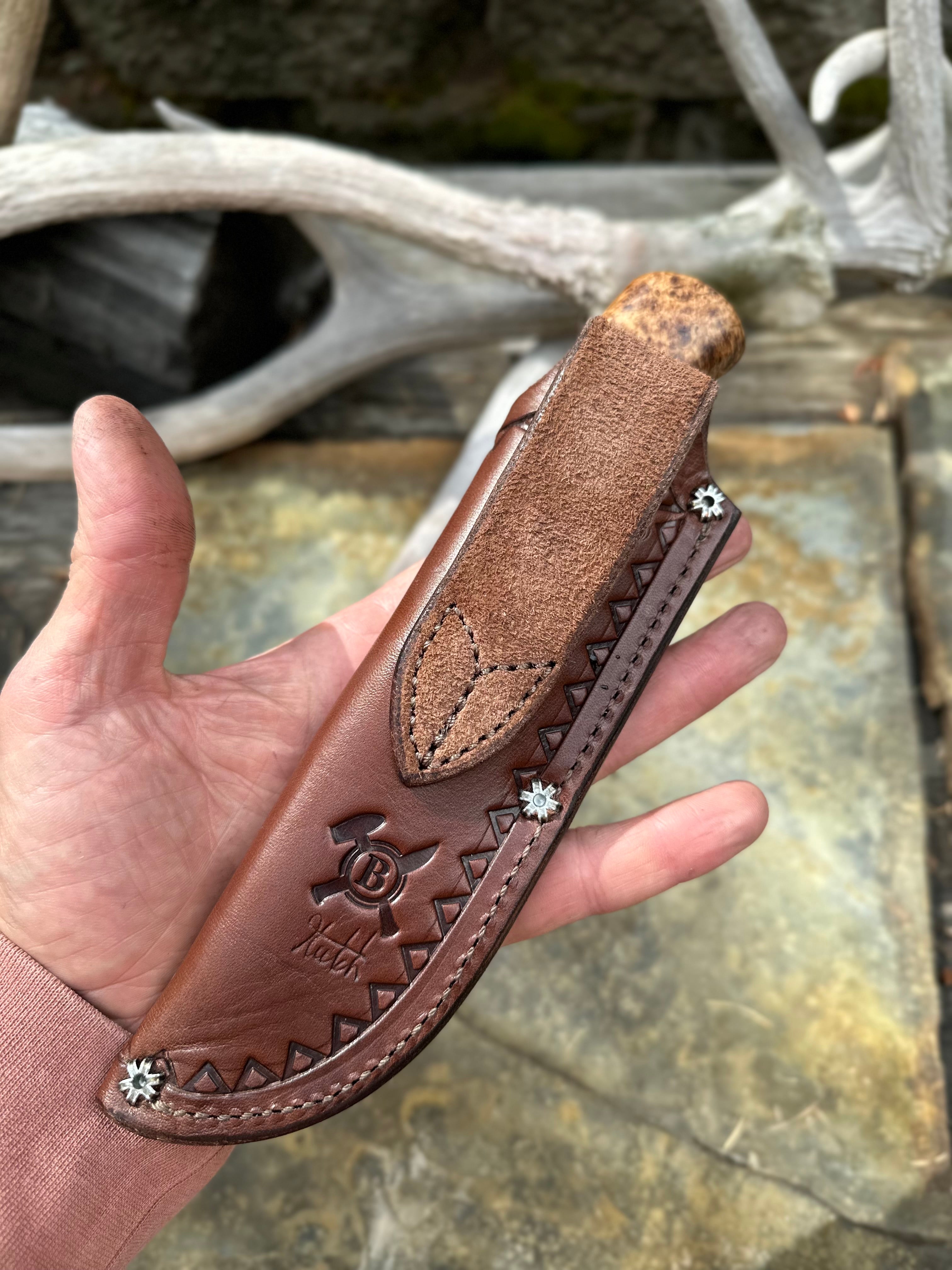 • Border Tooled Pouch Sheath w/ Black Rivets