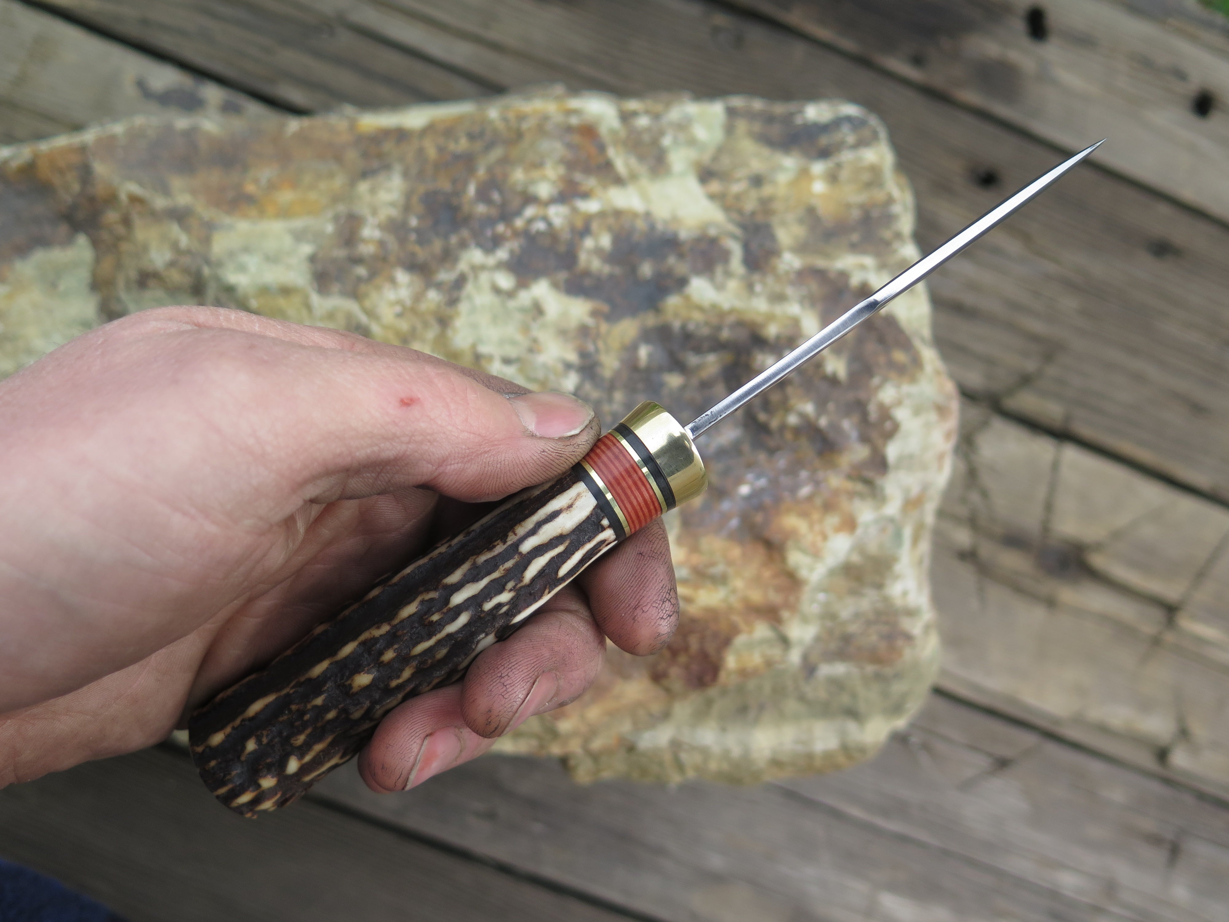 Premium Sambar Stag Canoe Knife w/ Mudbone Leather