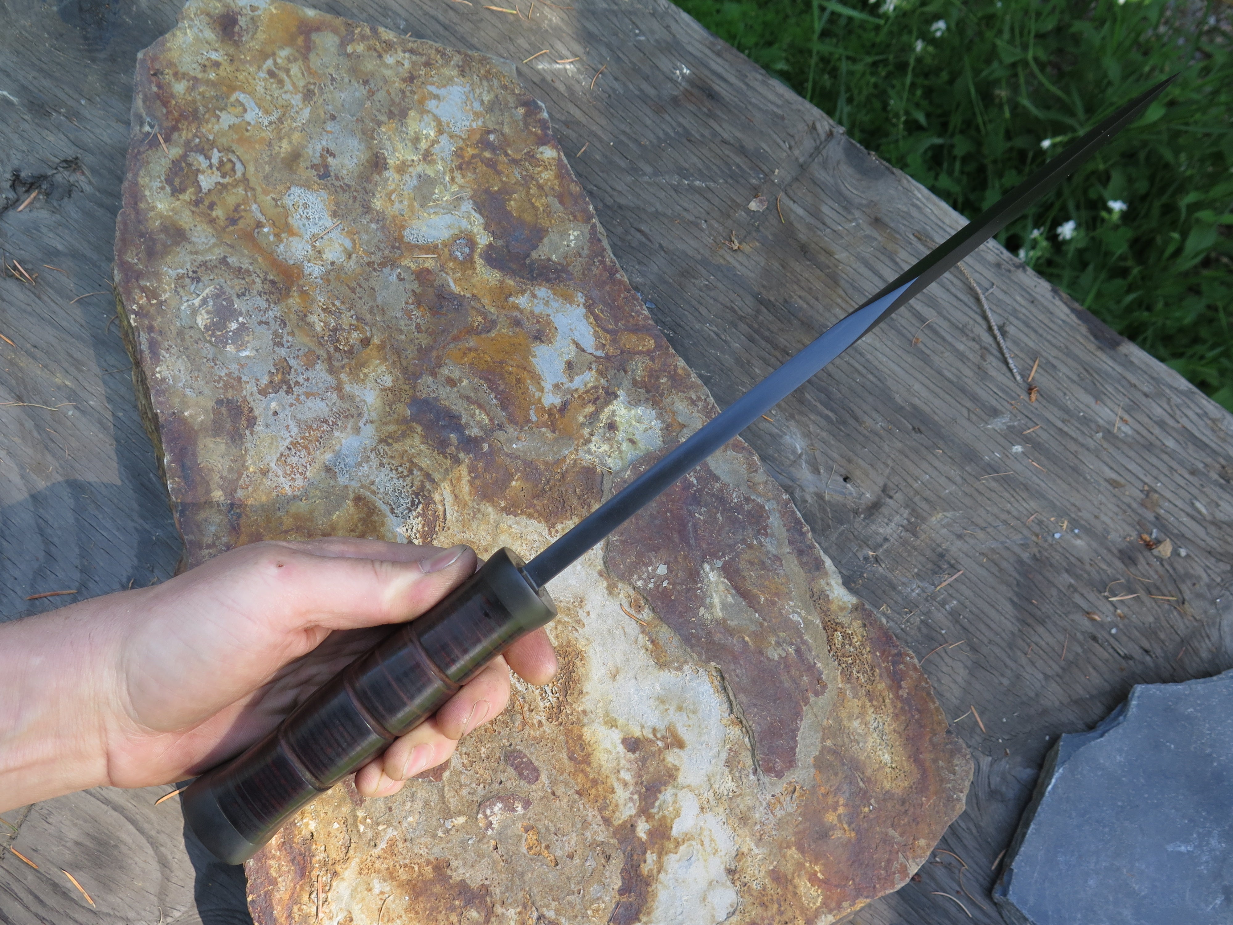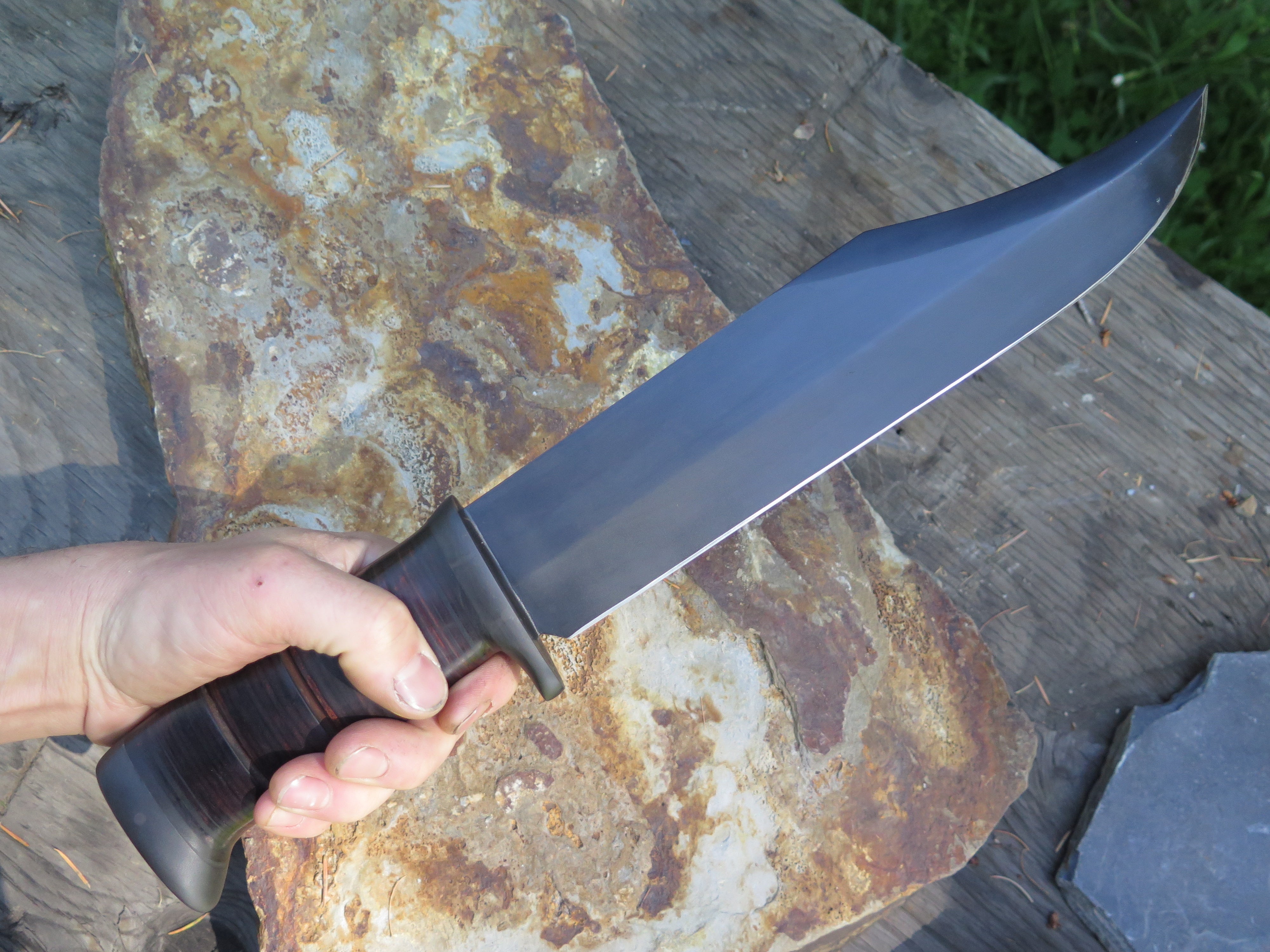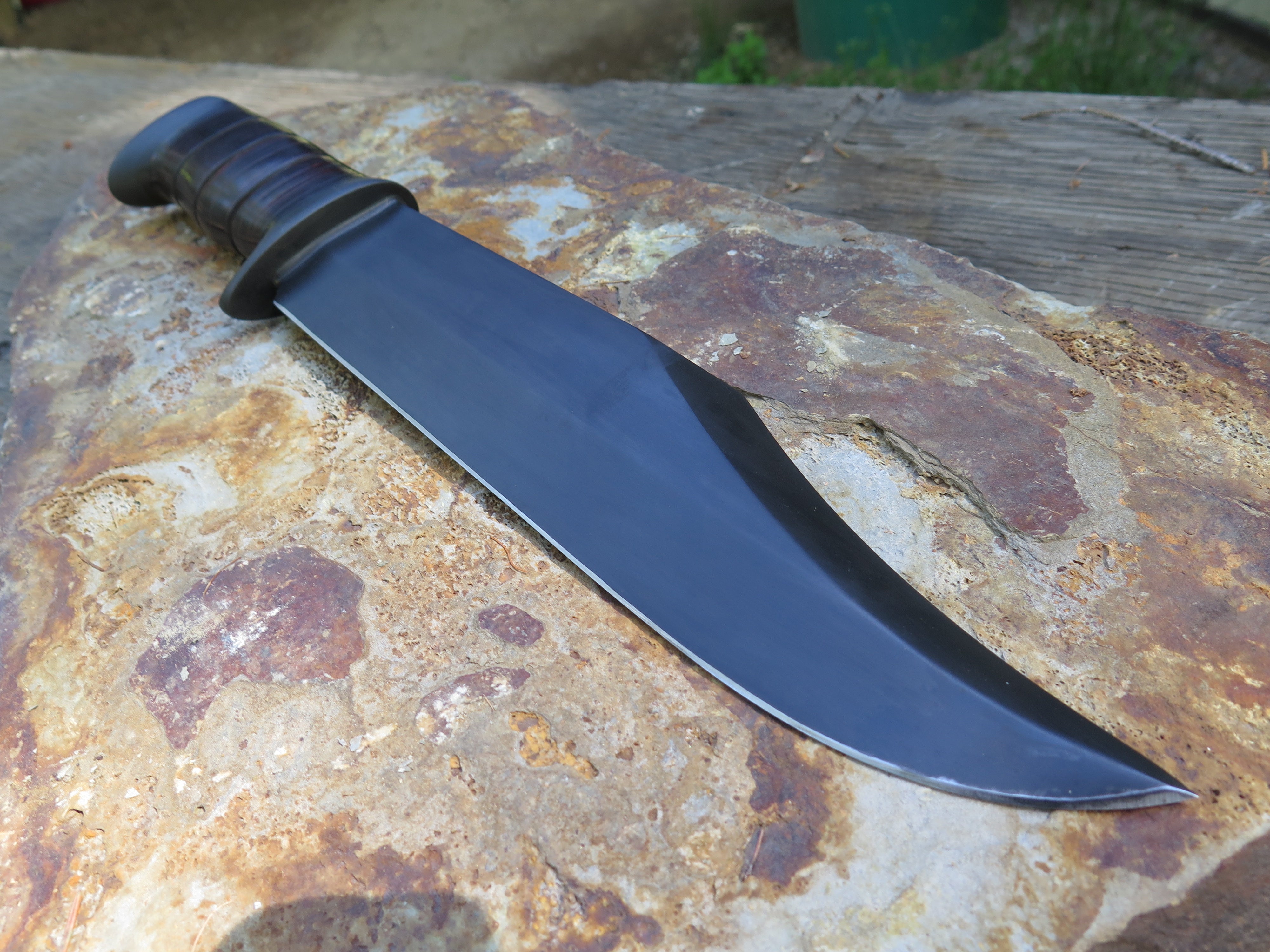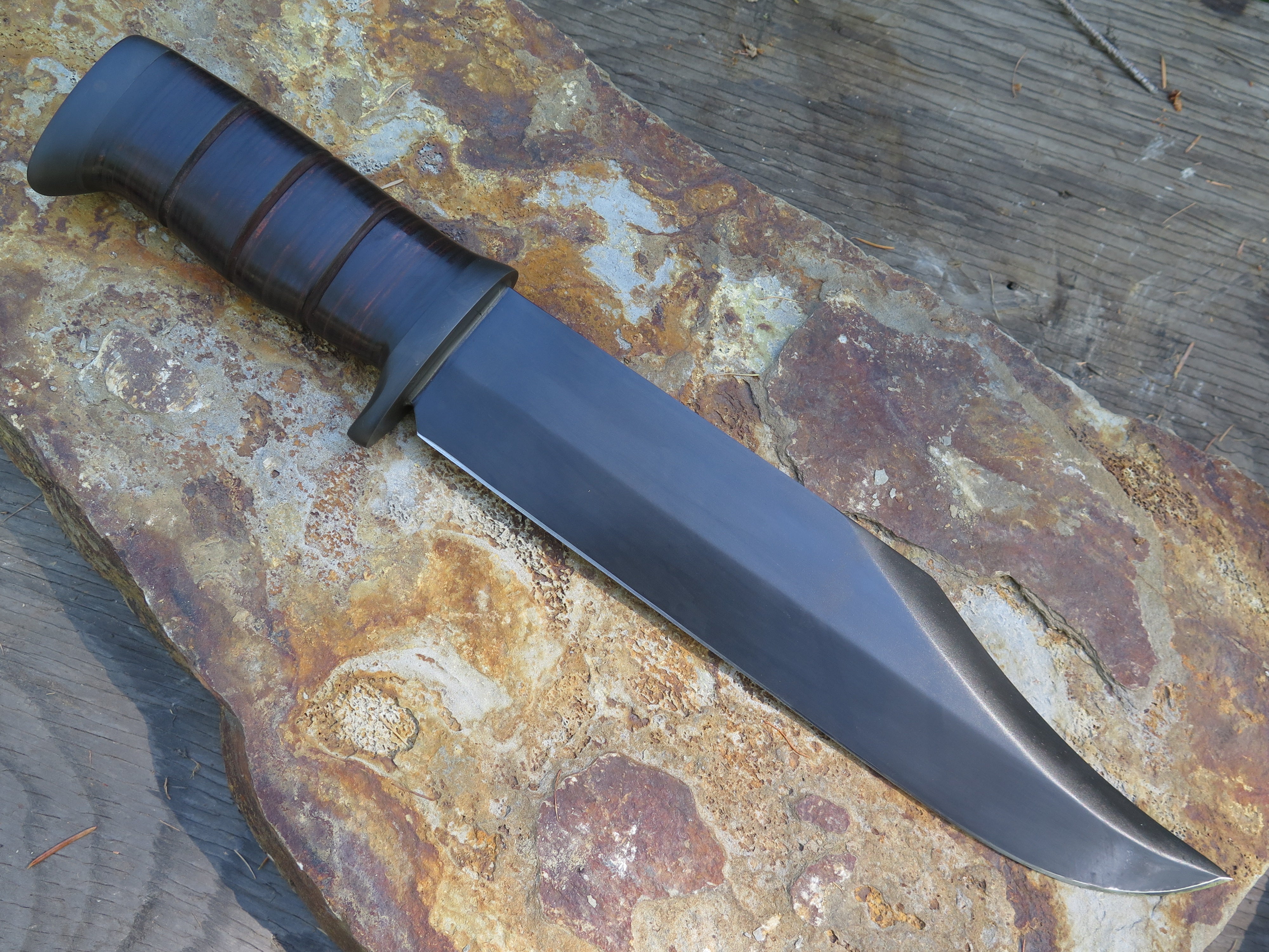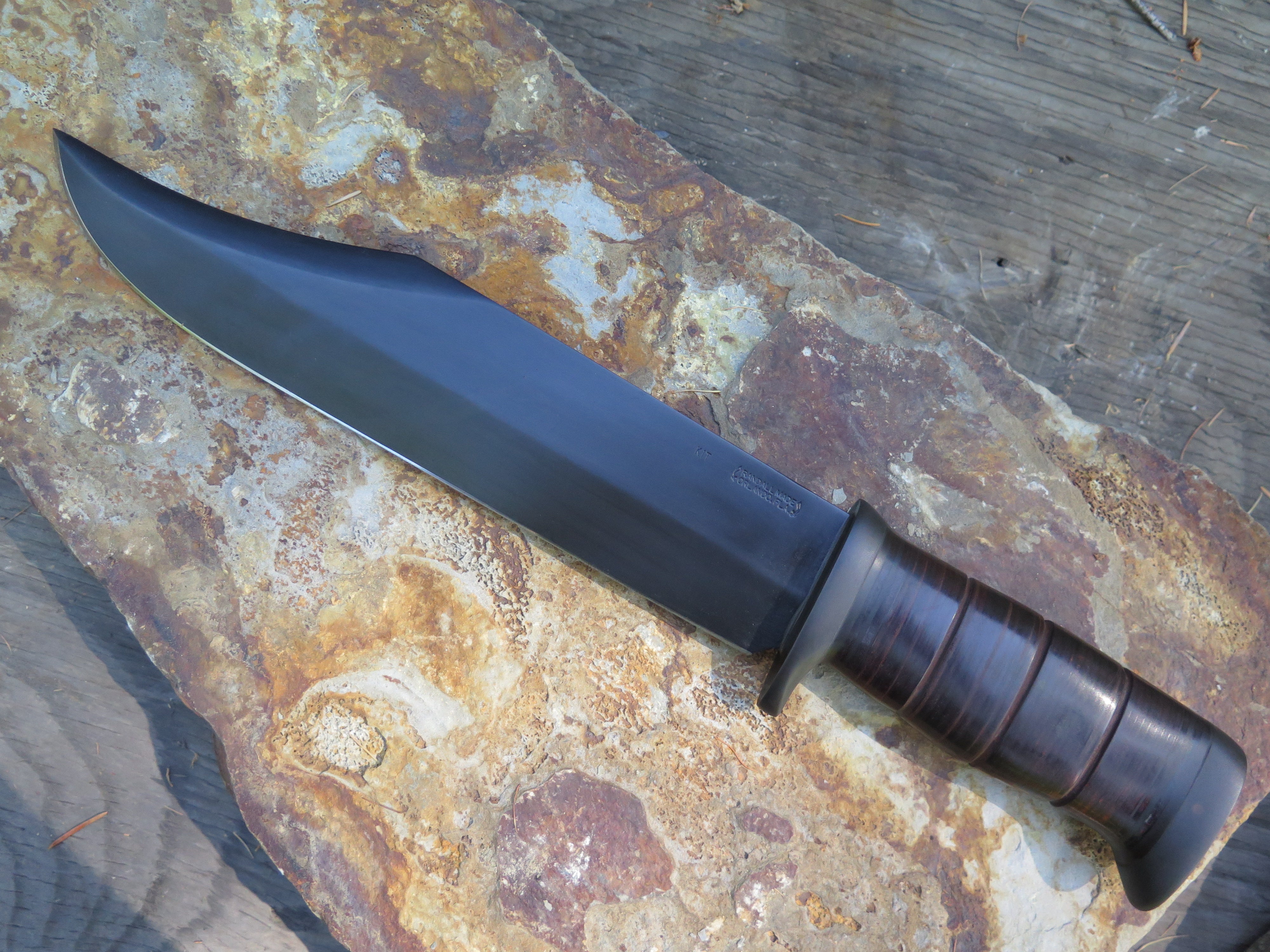 One of our favorite side projects is the careful and respectful rehandling of Randall Made Knives and other premium custom knives- or in this case the original handle on this old Smithsonian KIT knife, which we stacked with horsehide leather and blued steel. If interested in a project of your own, email grant@behringmade.com or call/text 406-304-5641.