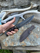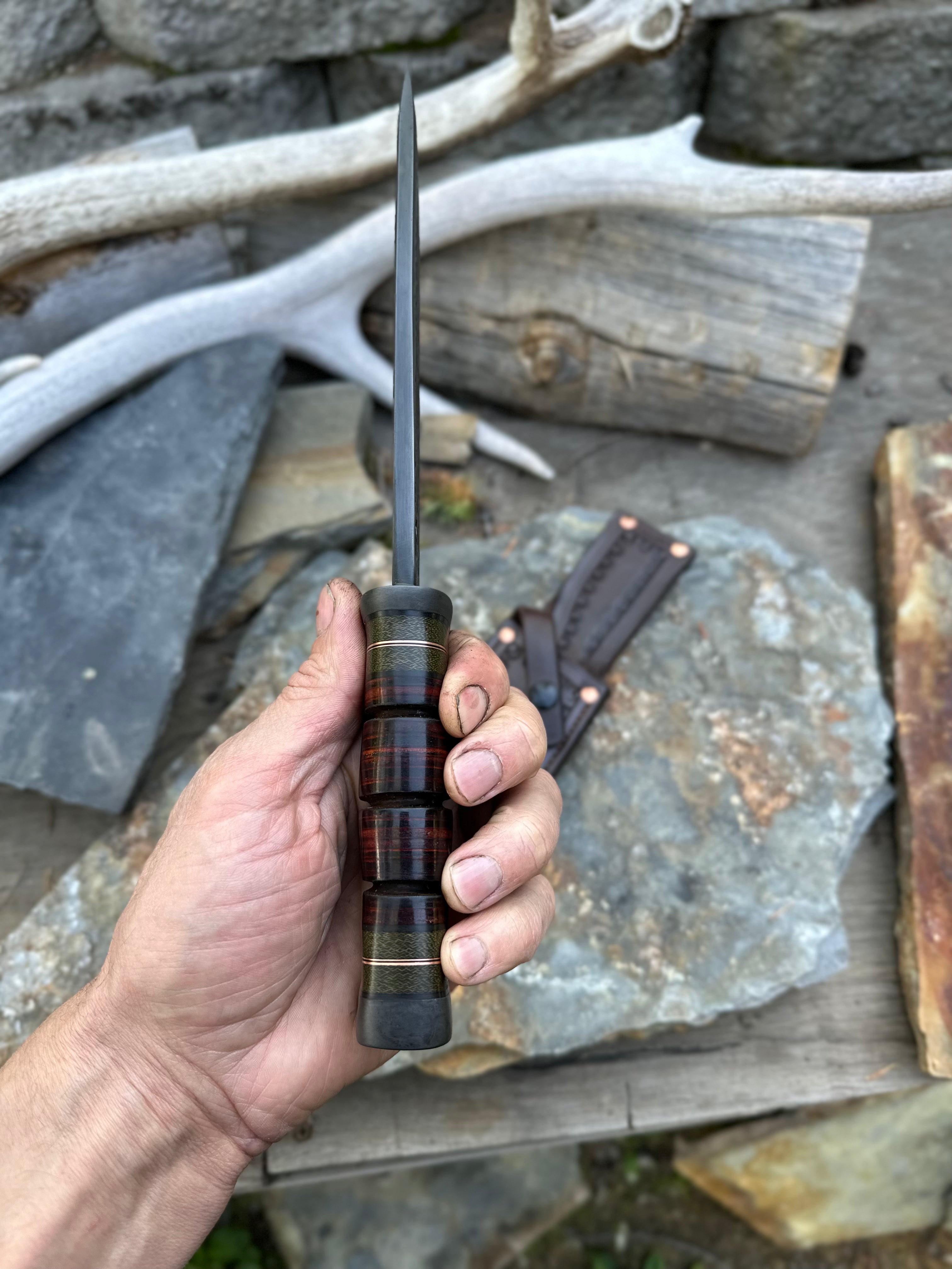 - Black Fiber, Green Micarta, Copper, & Horsehide Handle