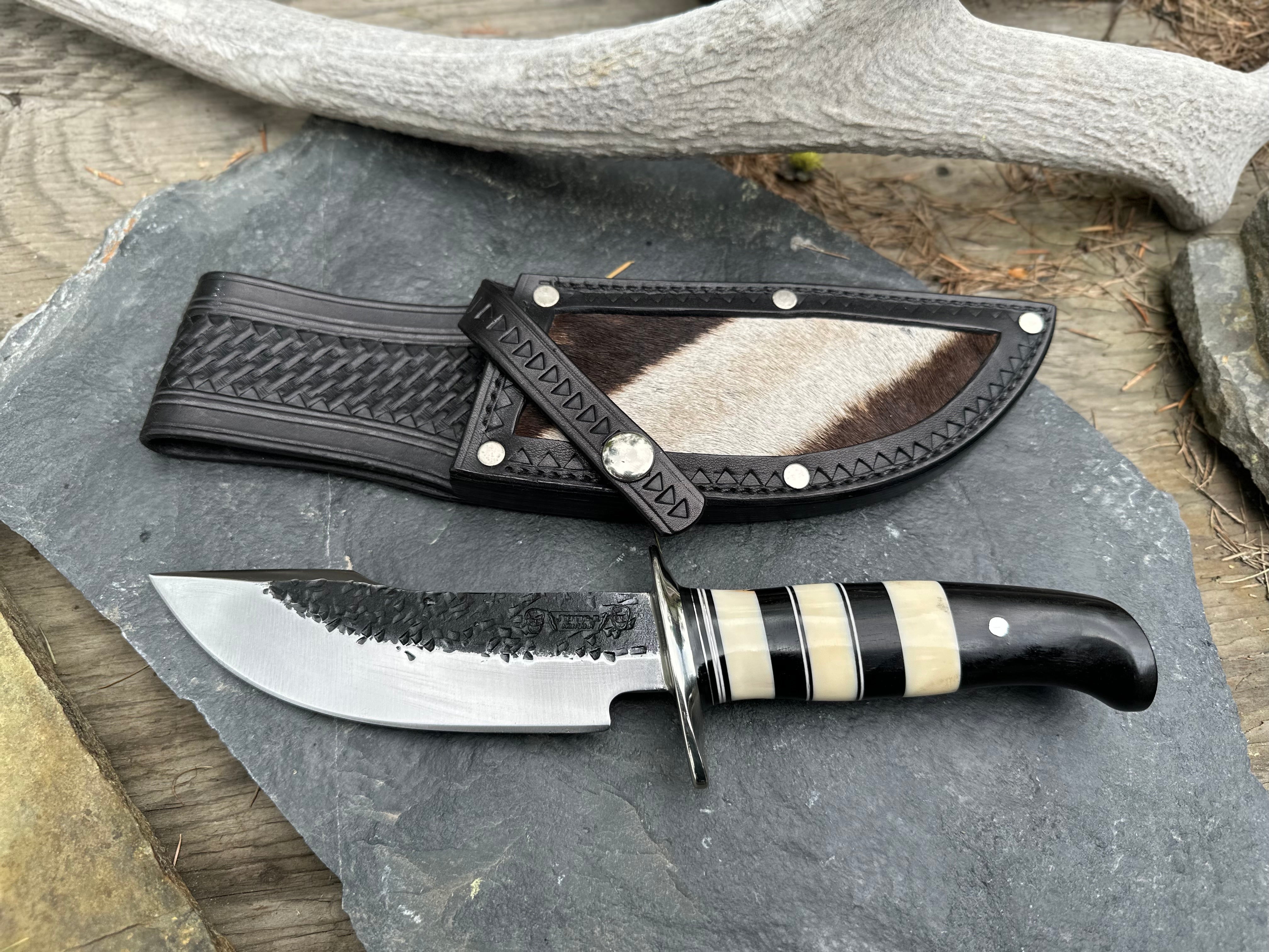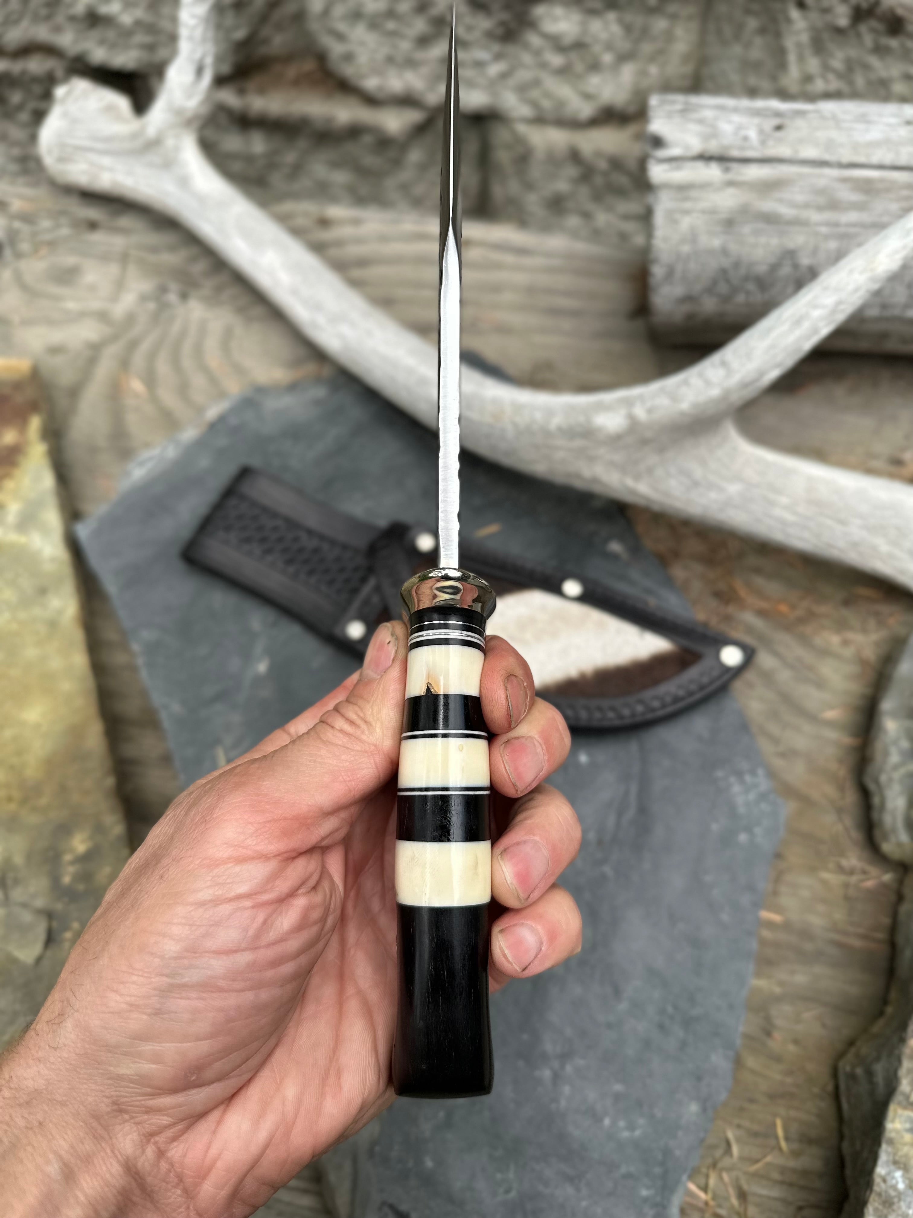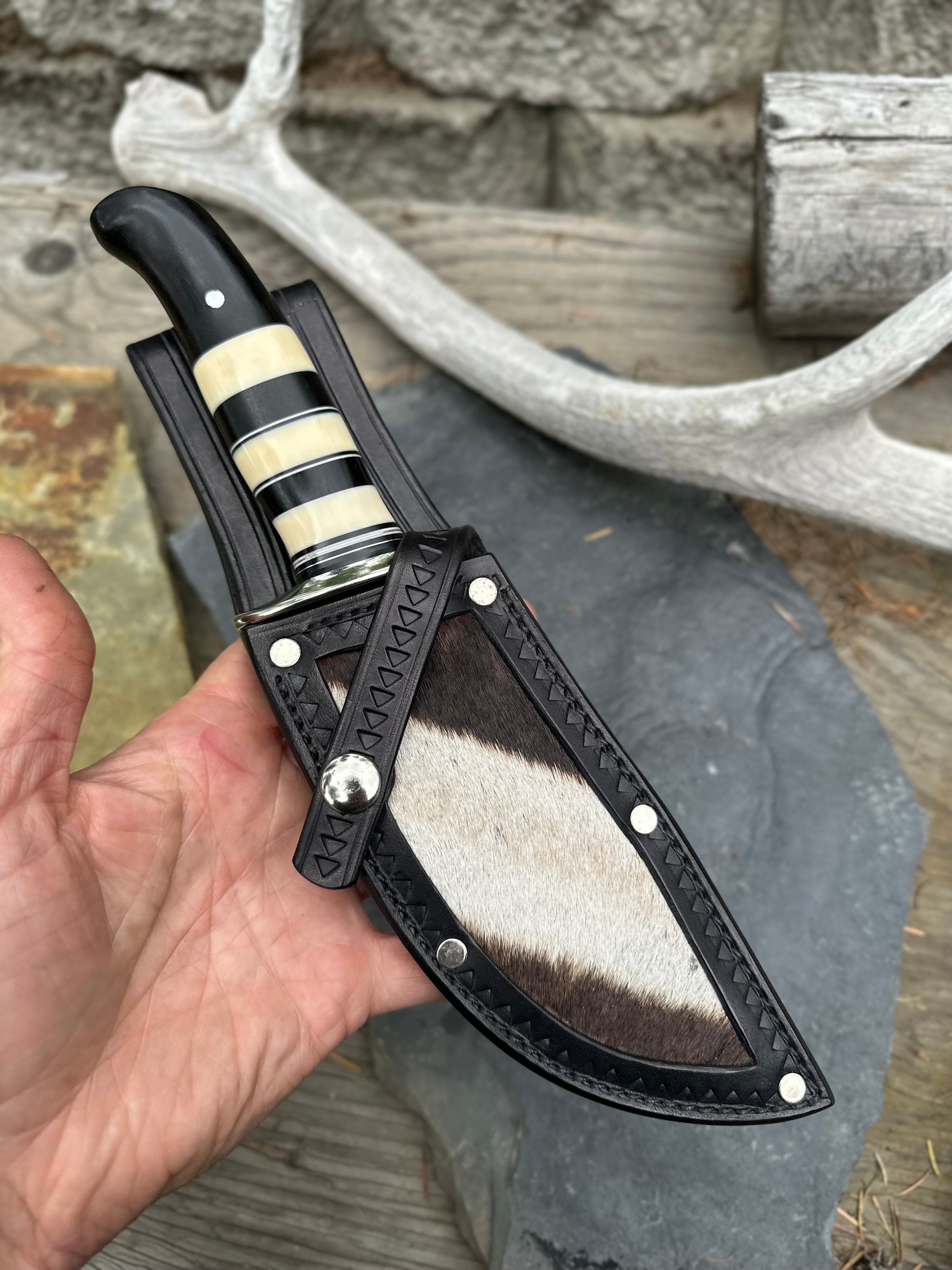 Ebony & Walrus Ivory Pre B Logo / Zebra Skin Inlayed Mosher Sheath