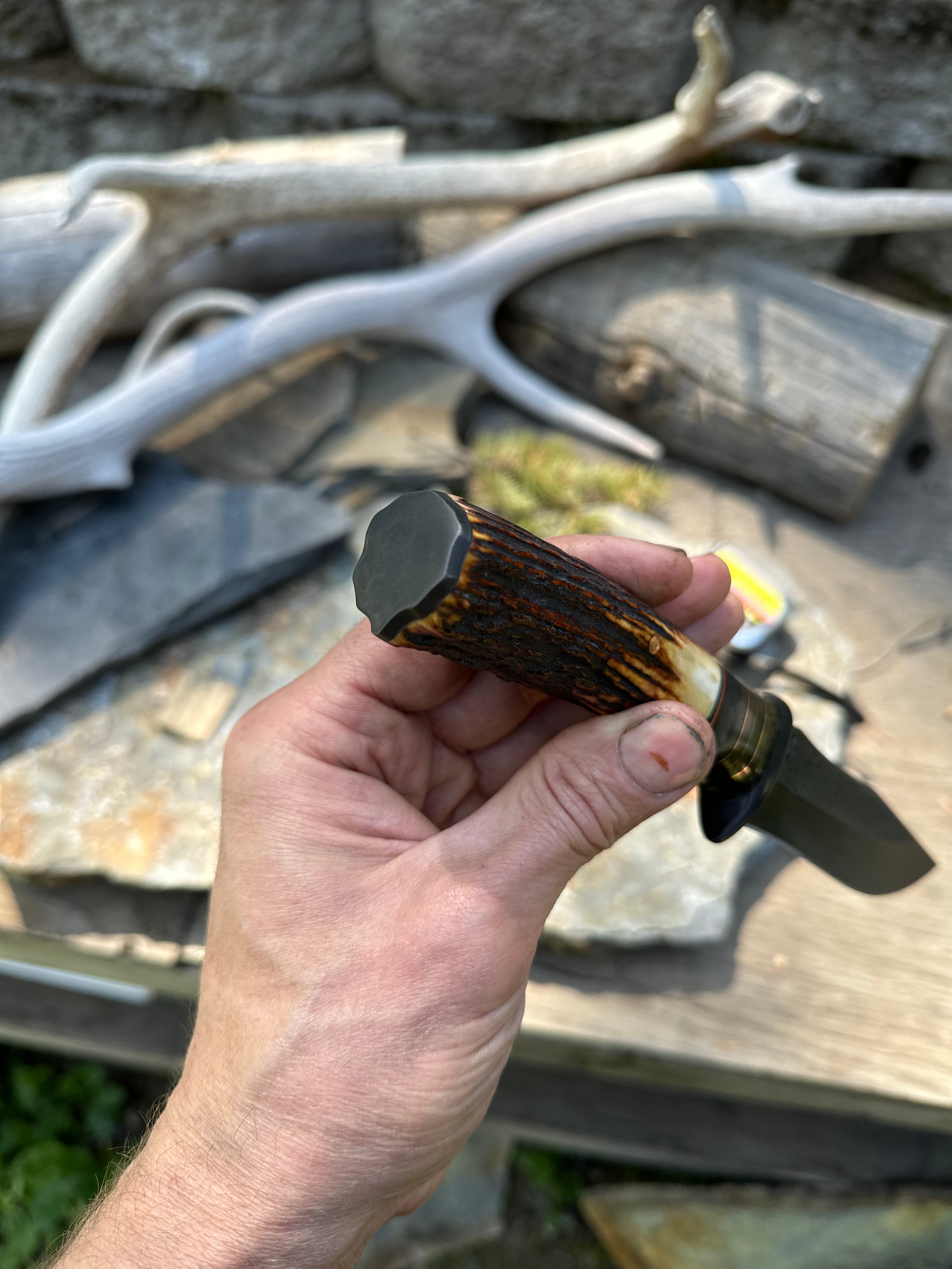 • Sambar Stag Handle w/ Blued Carbon Steel Butt Plate