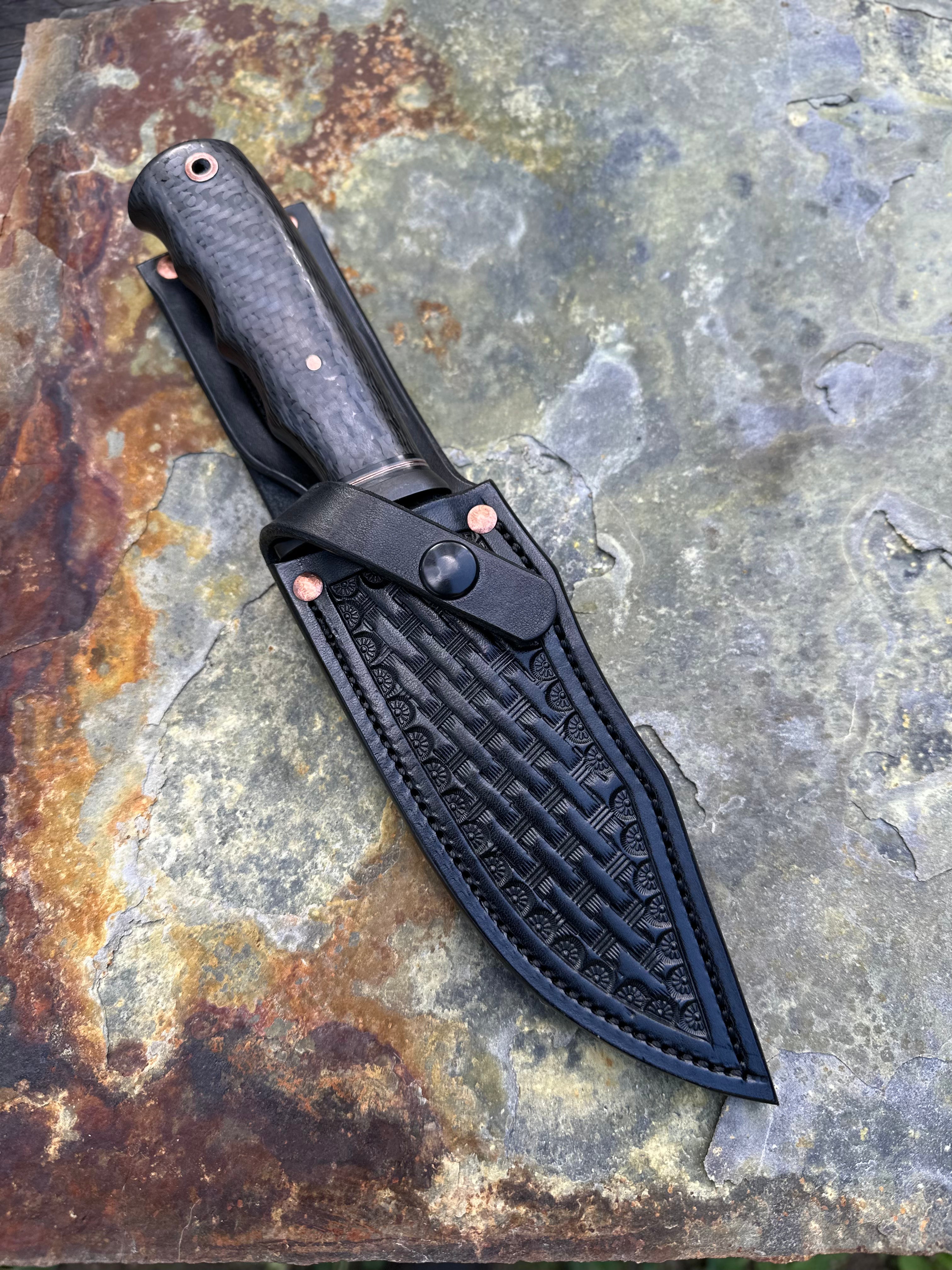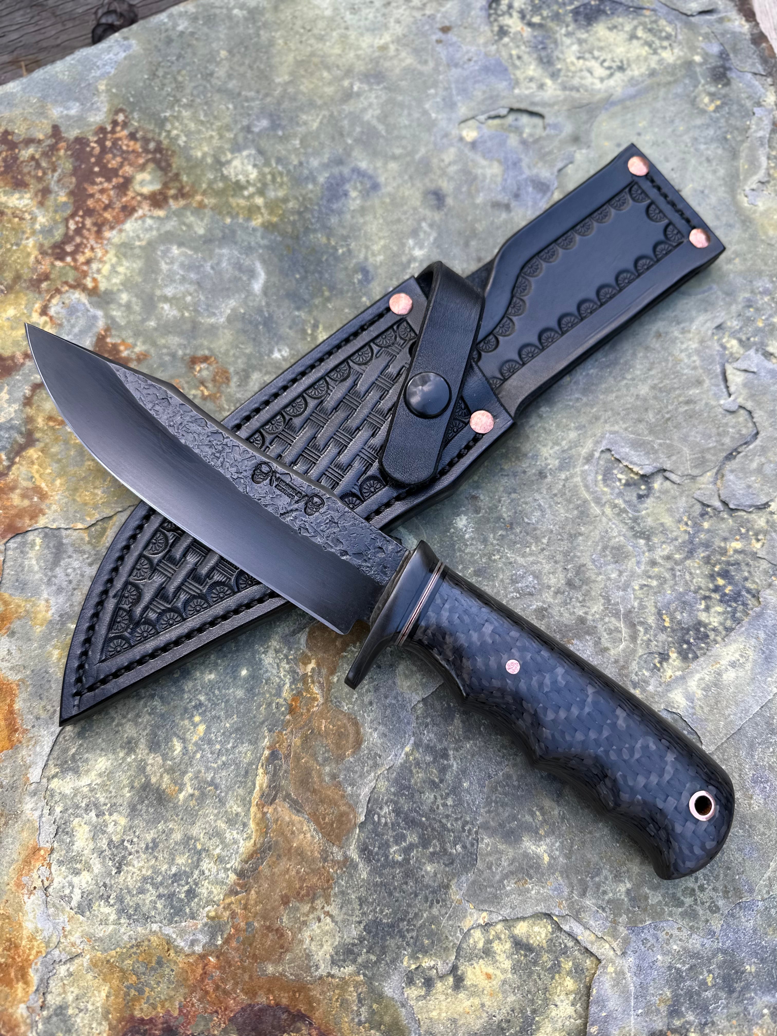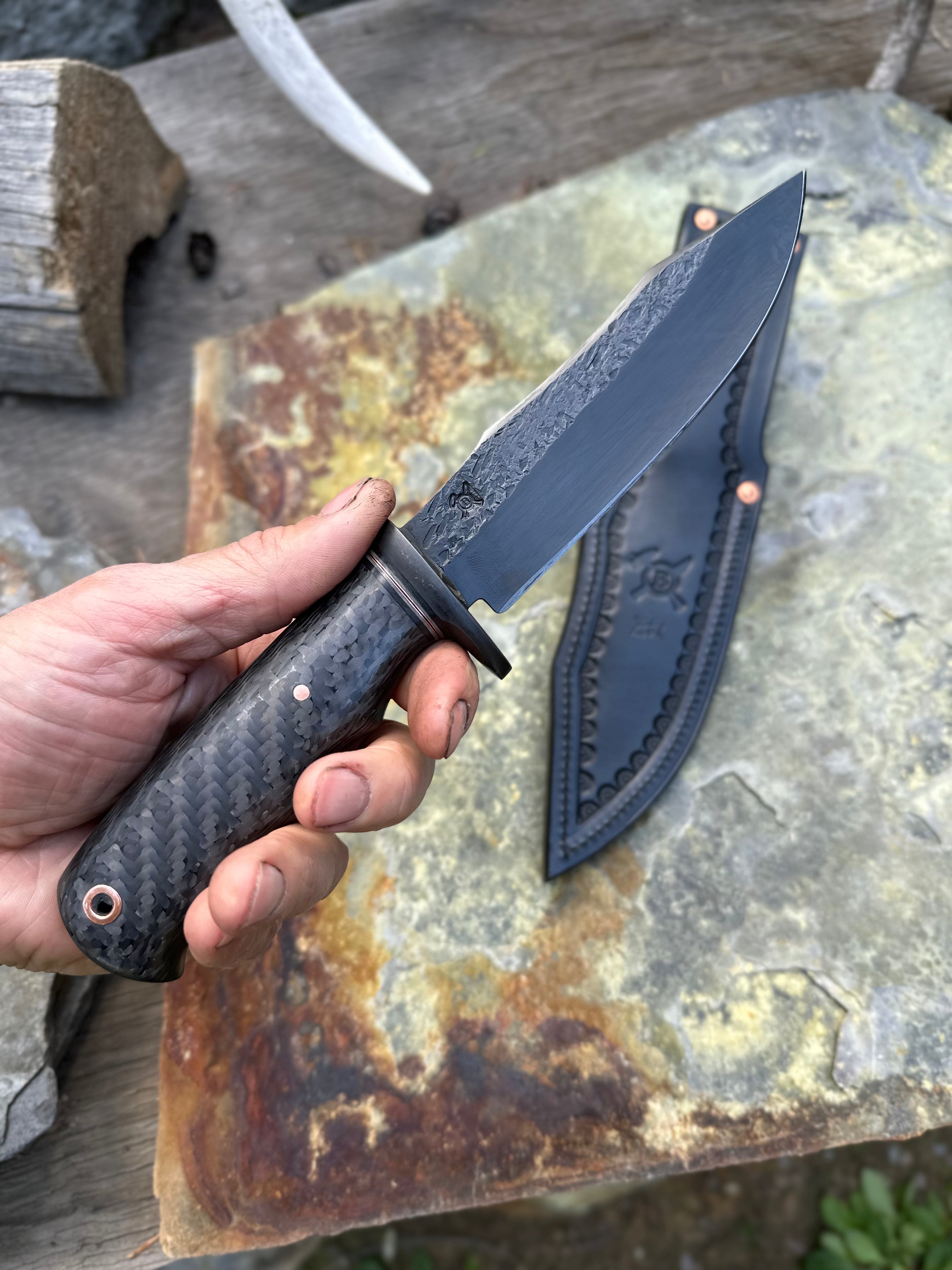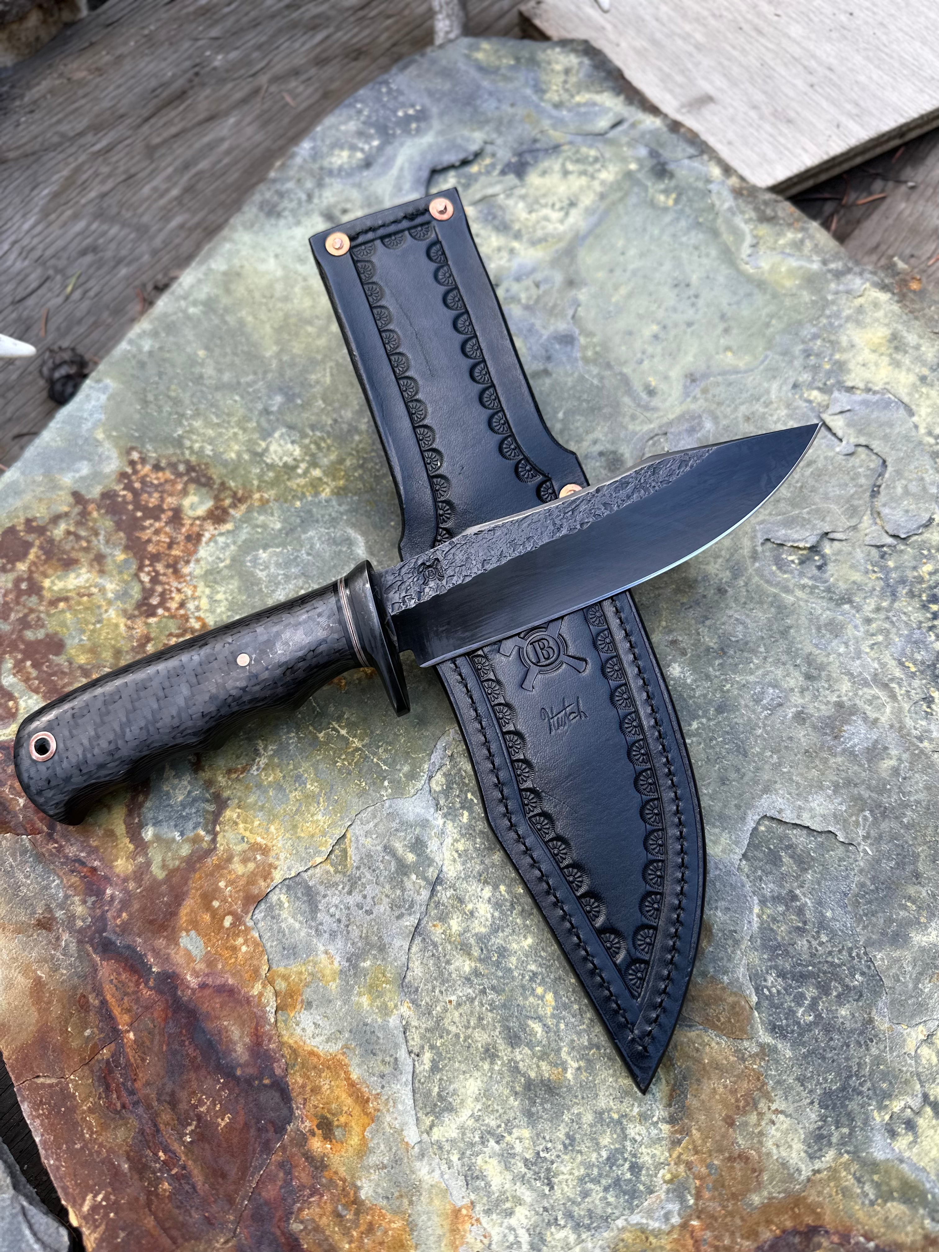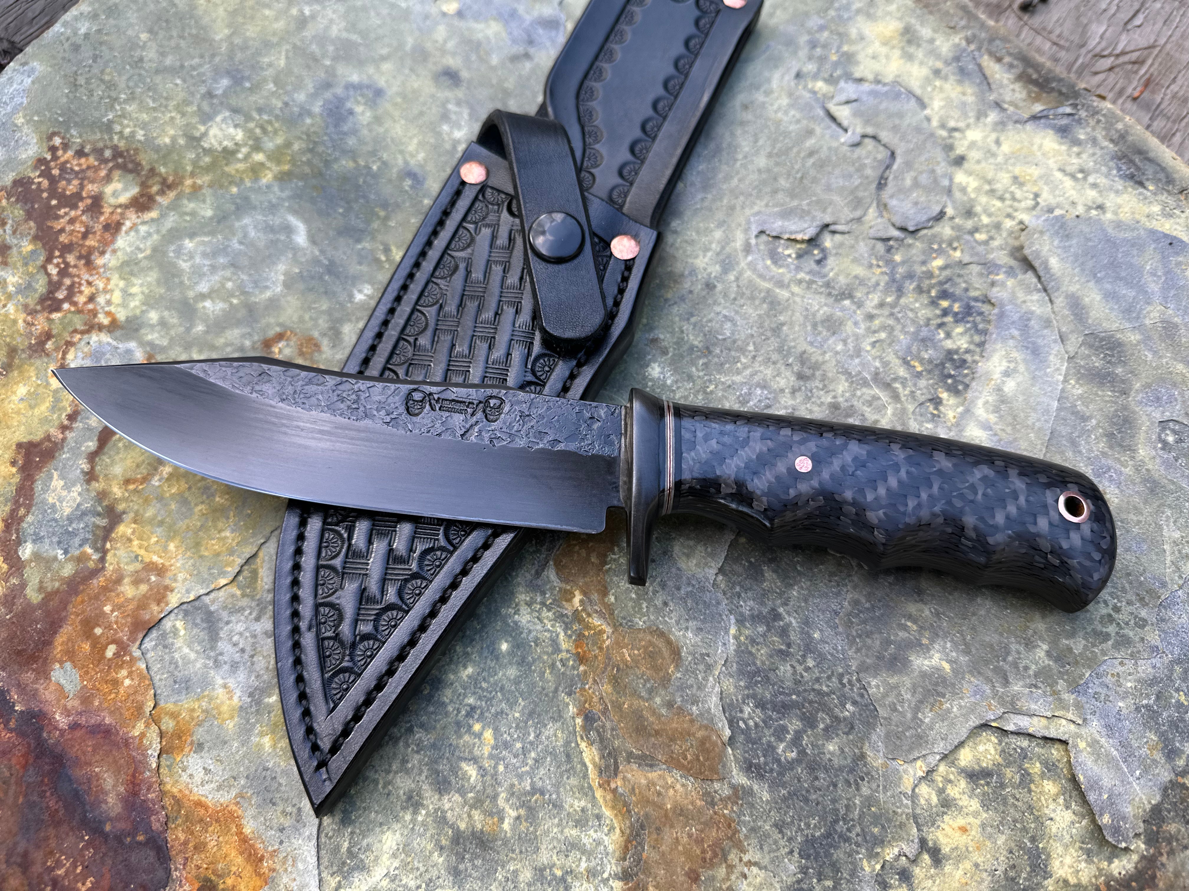 - 1/4” 5160 Spring Steel, Blued Hammermark Finish