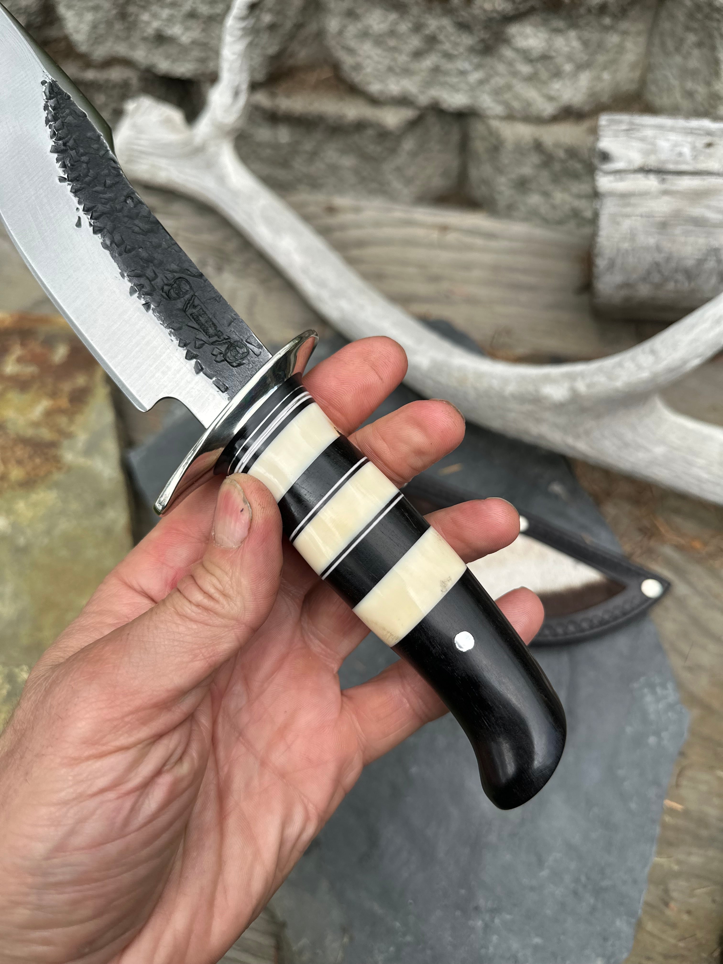 Ebony & Walrus Ivory Pre B Logo / Zebra Skin Inlayed Mosher Sheath