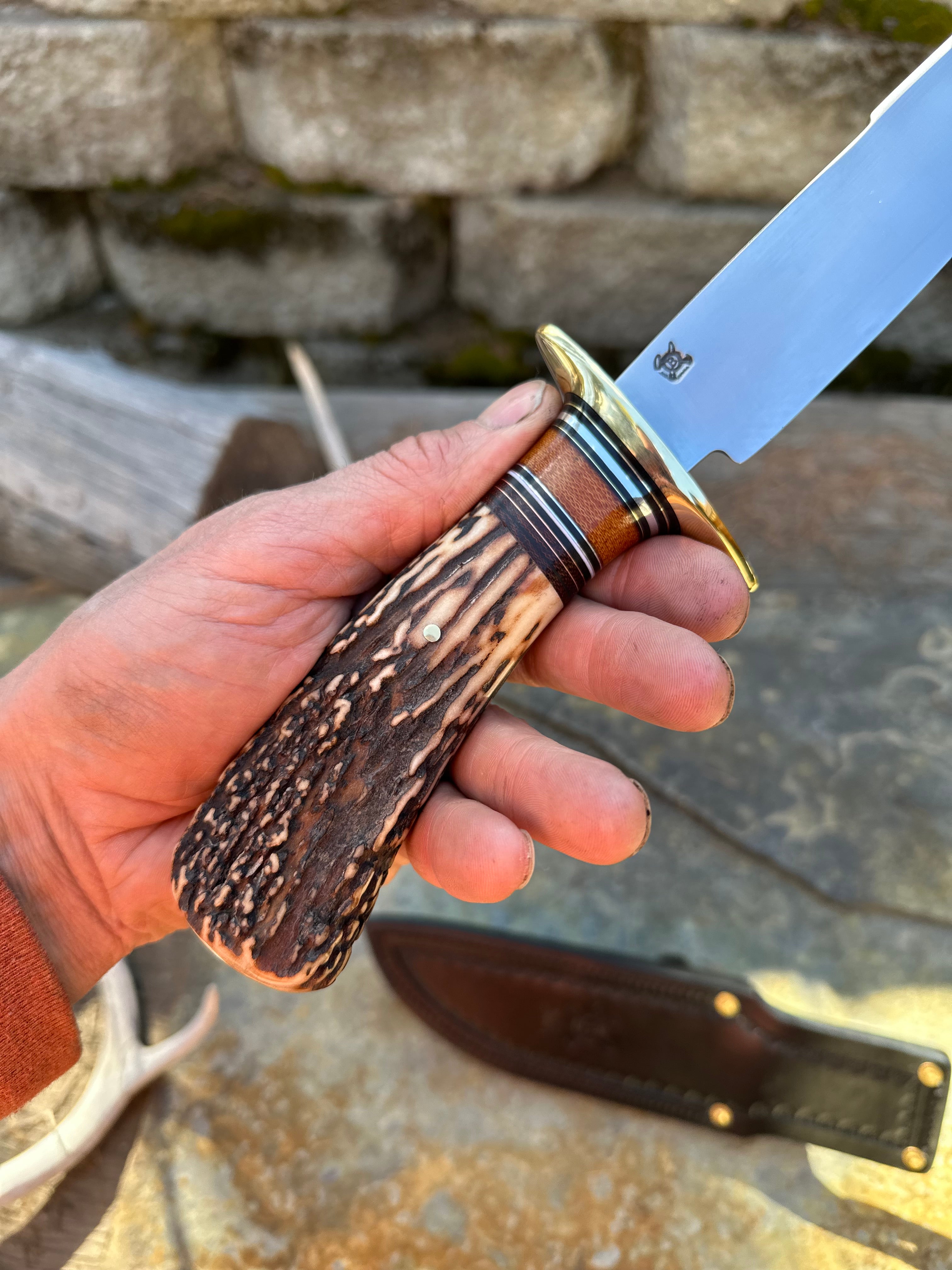 - Brass, Aluminum, Brown Canvas Micarta, White Fiber, & Black Fiber Spacers