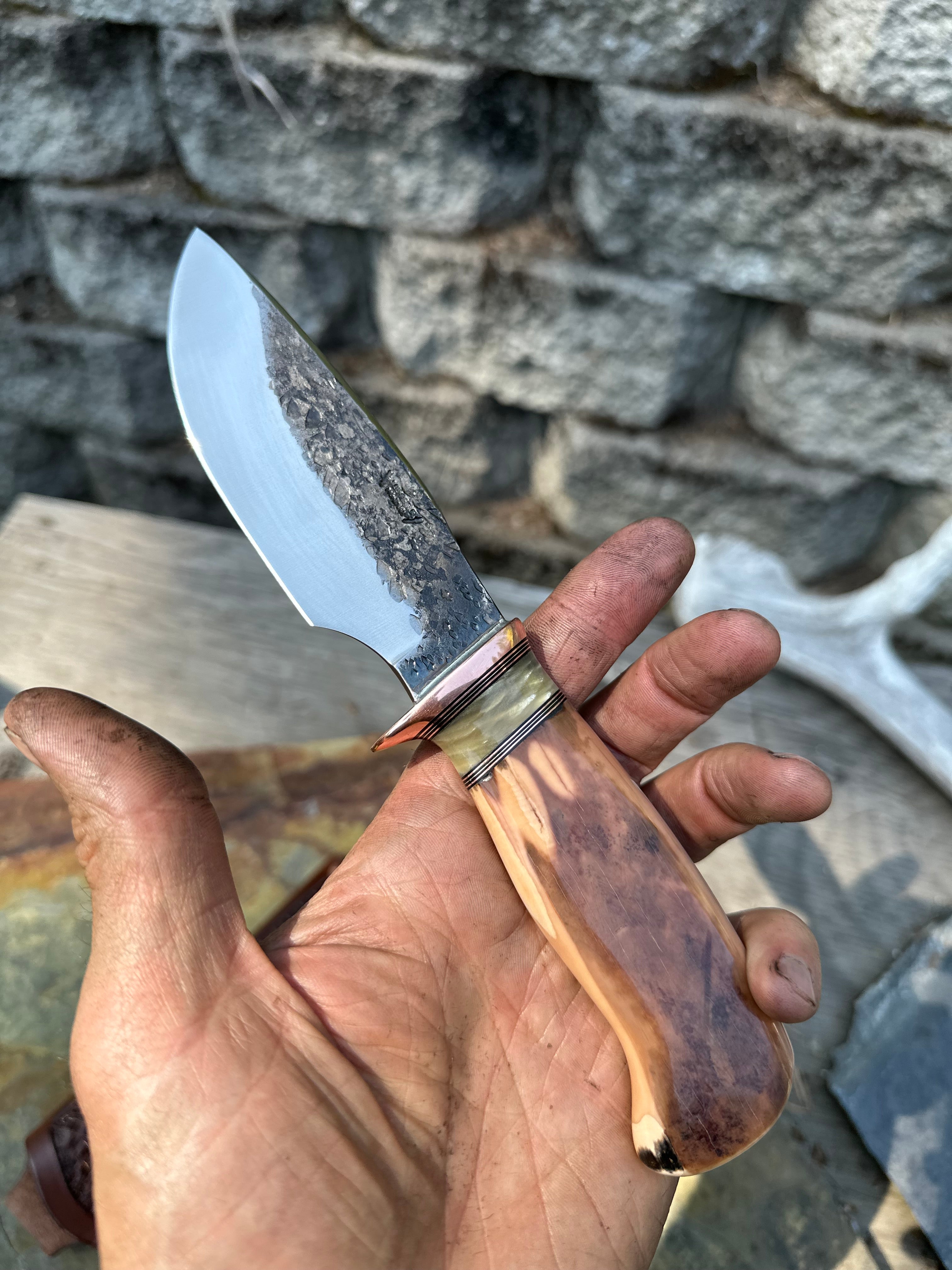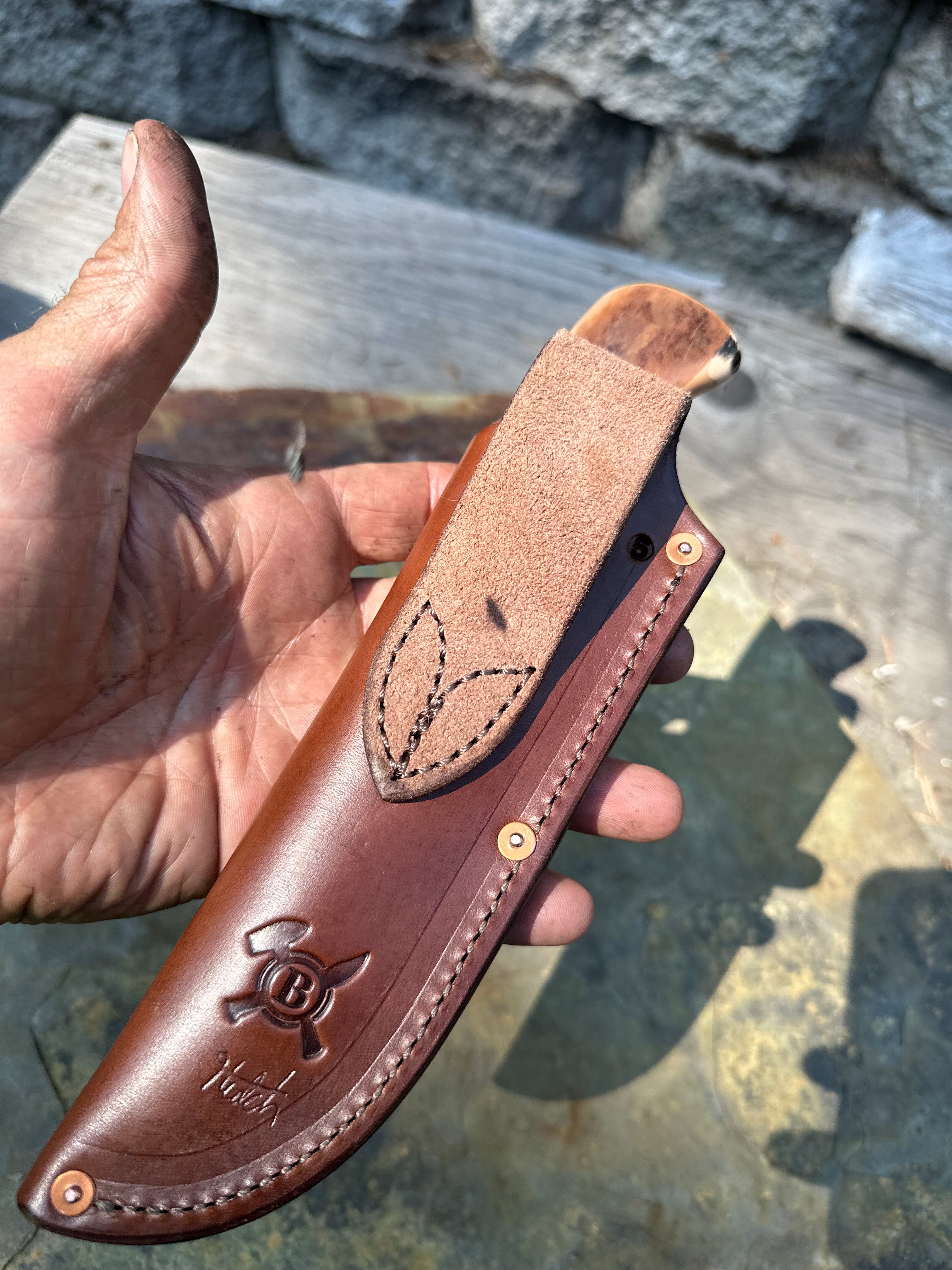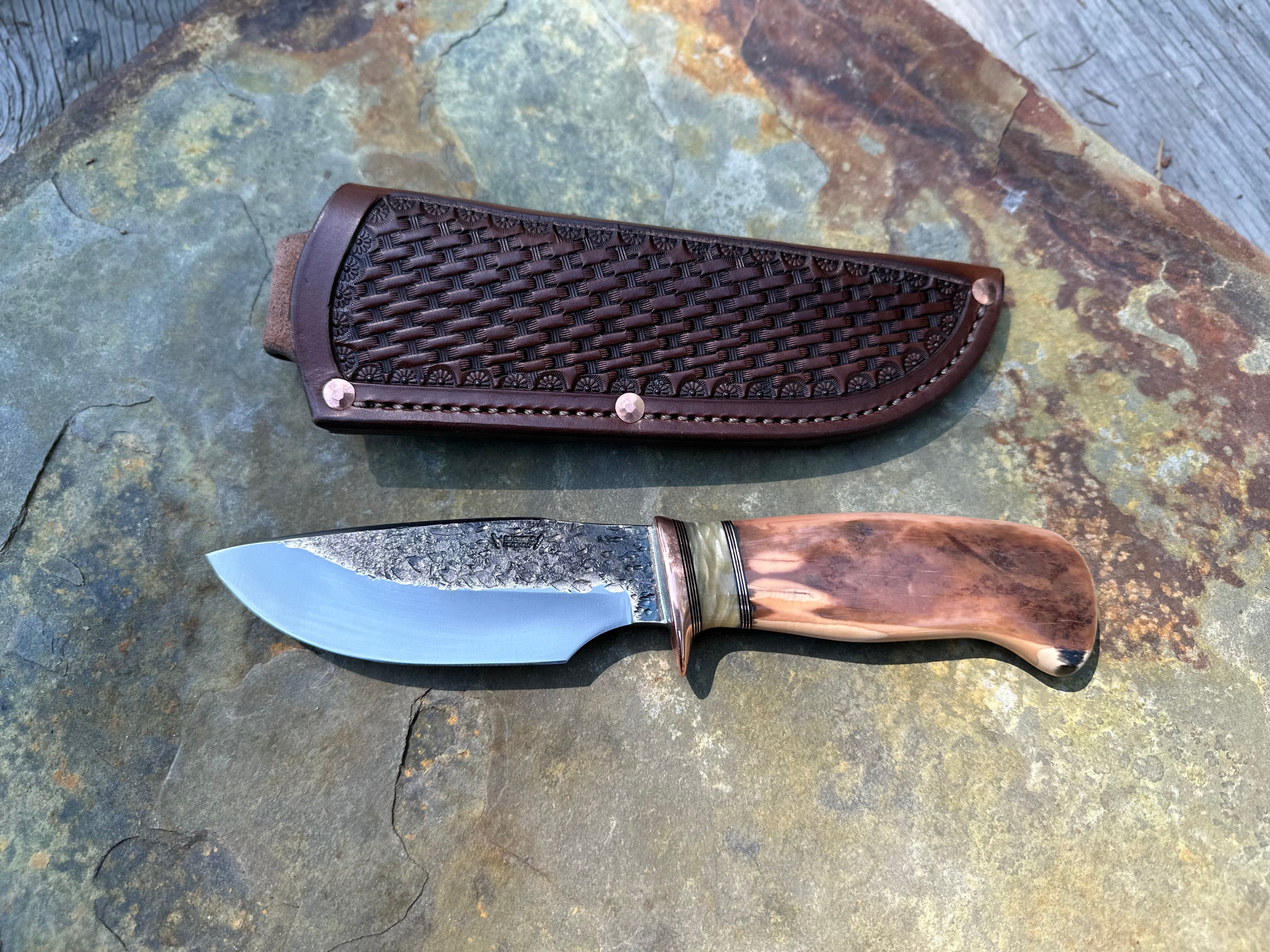 Fossilized Walrus Ivory & Ox Boss Alaskan Hunter