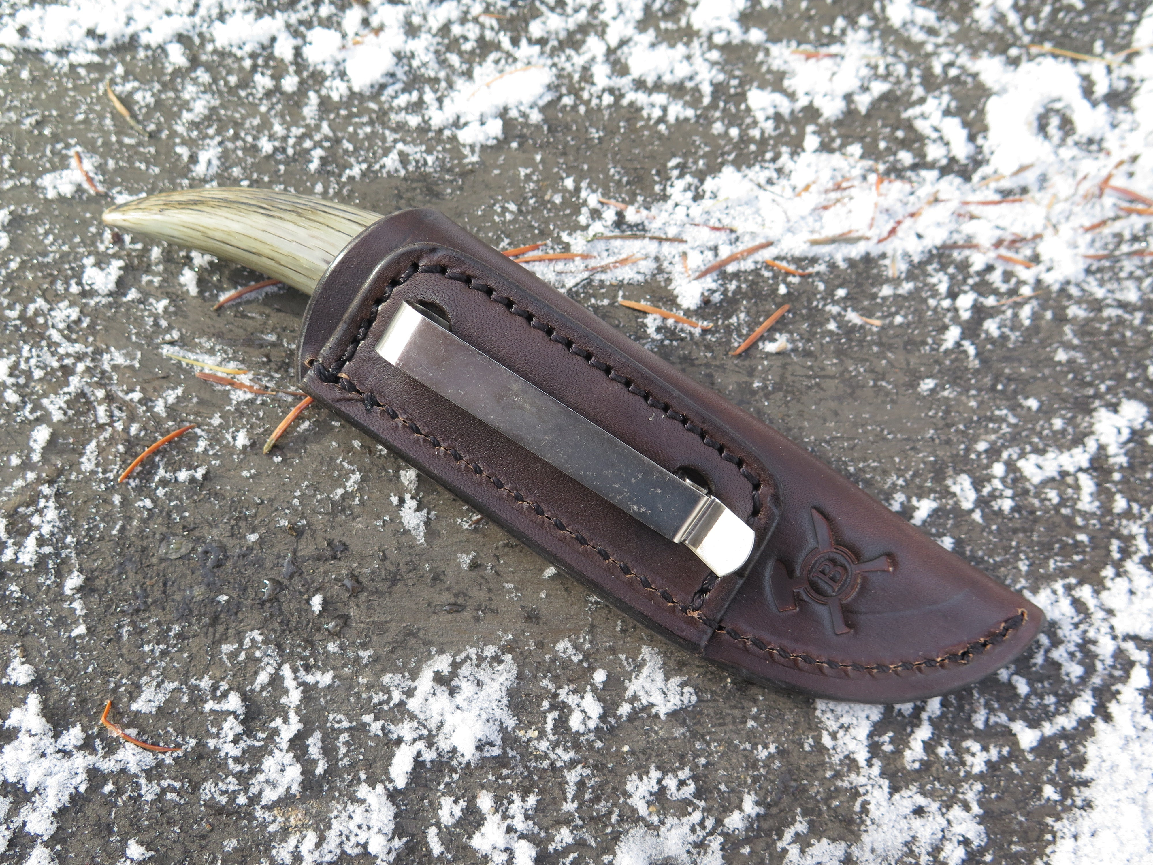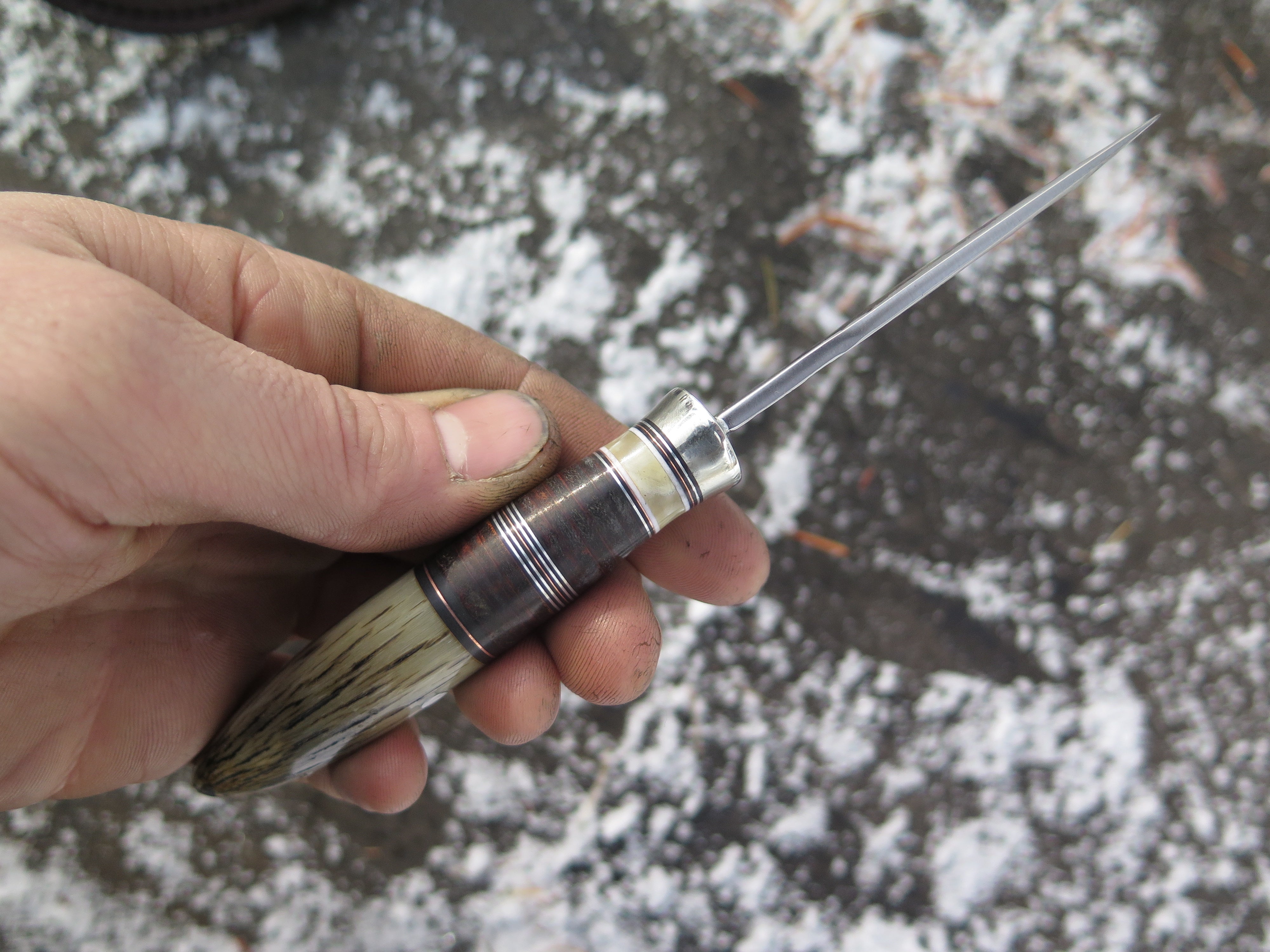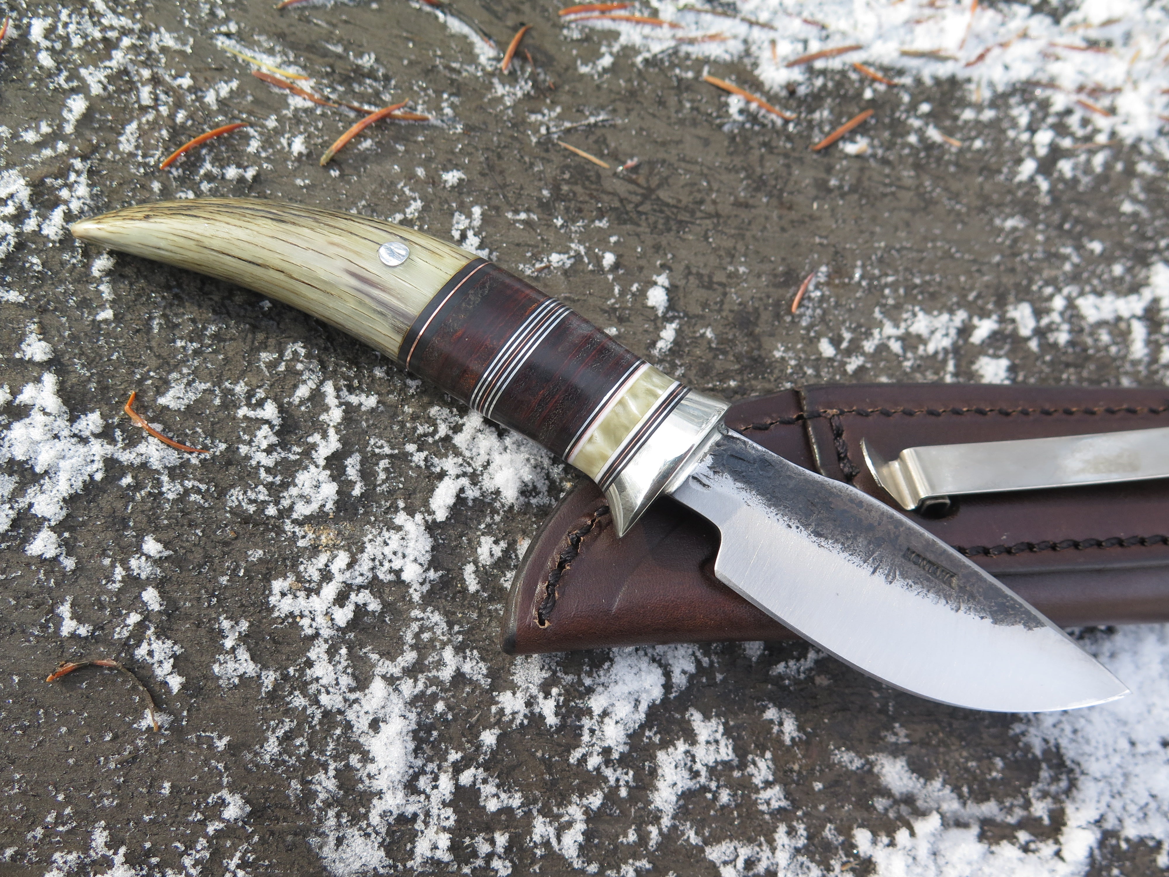 - Black, White, Copper, Aluminum, Horsehide, and Musk Ox Boss handle with a Musk Ox Horn Tip.