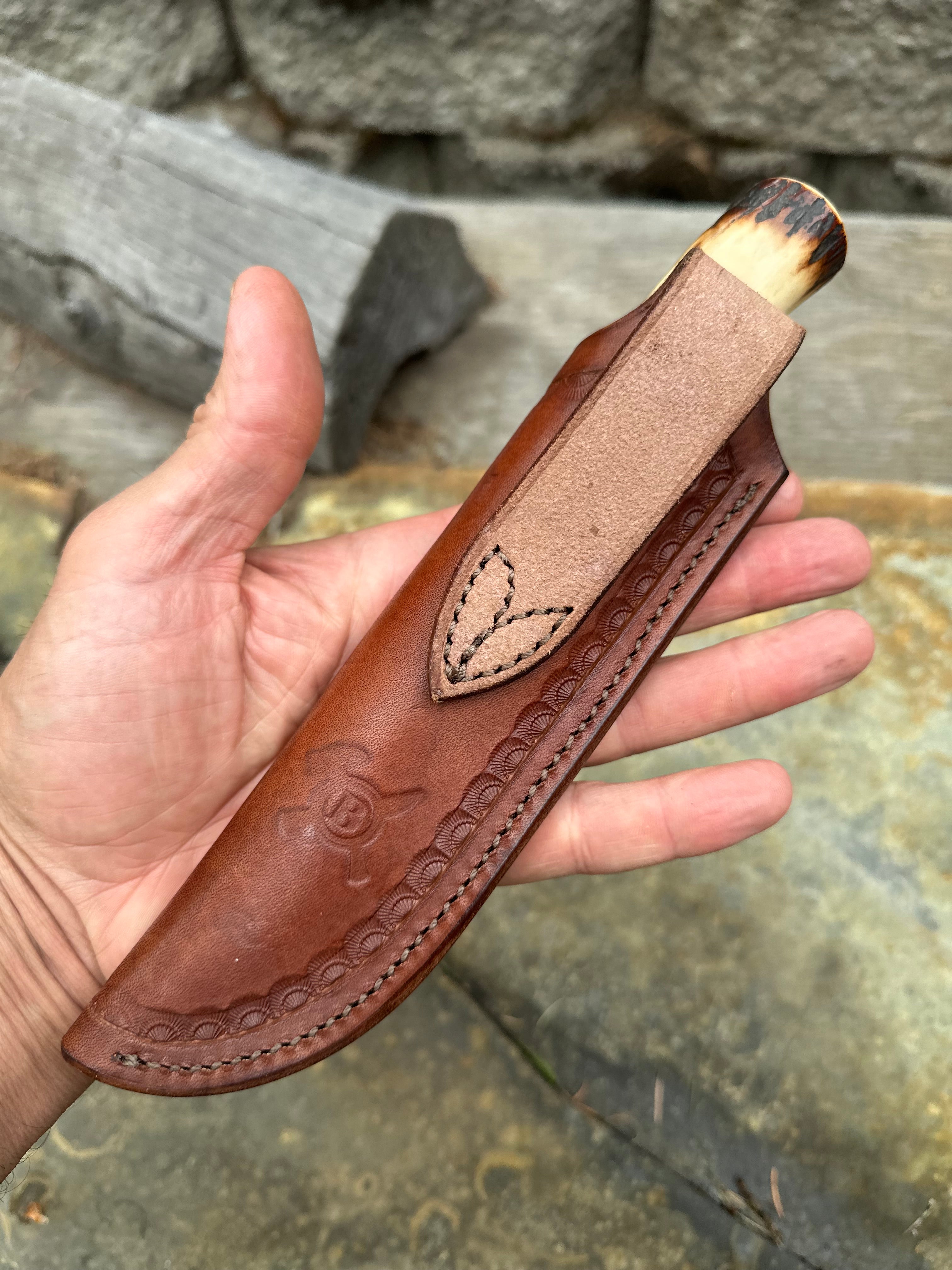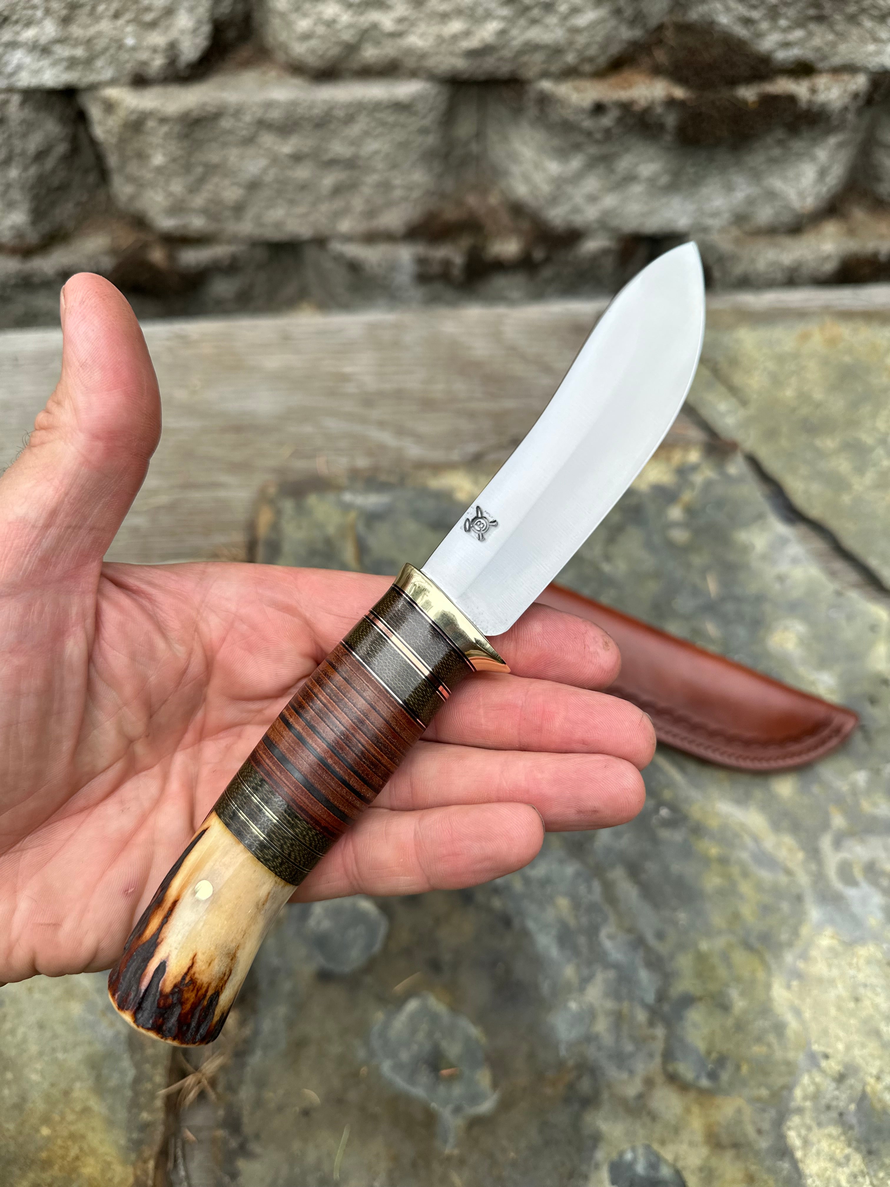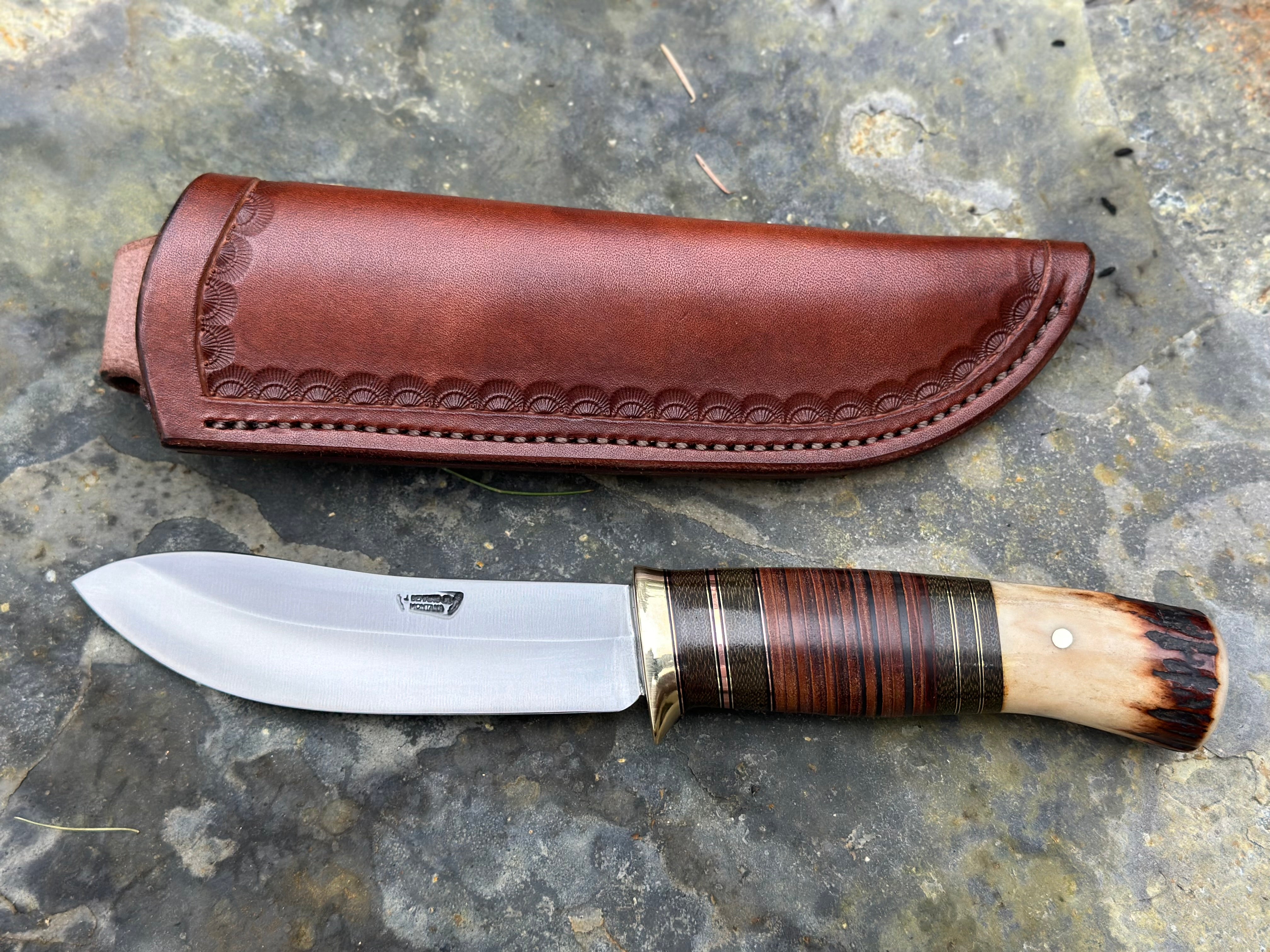 - Green Micarta, Brass, Copper, Black Fiber, & Horsehide Handle