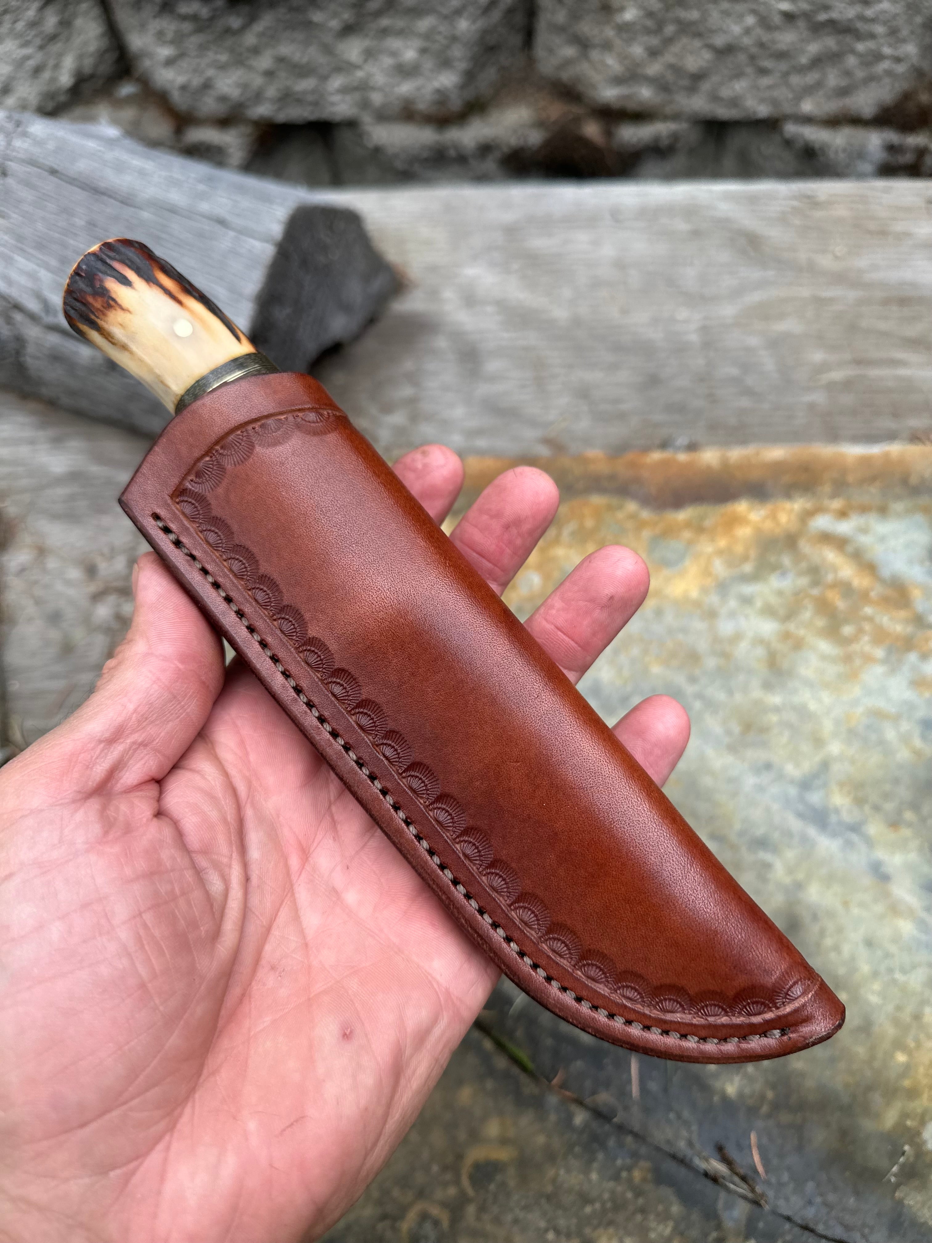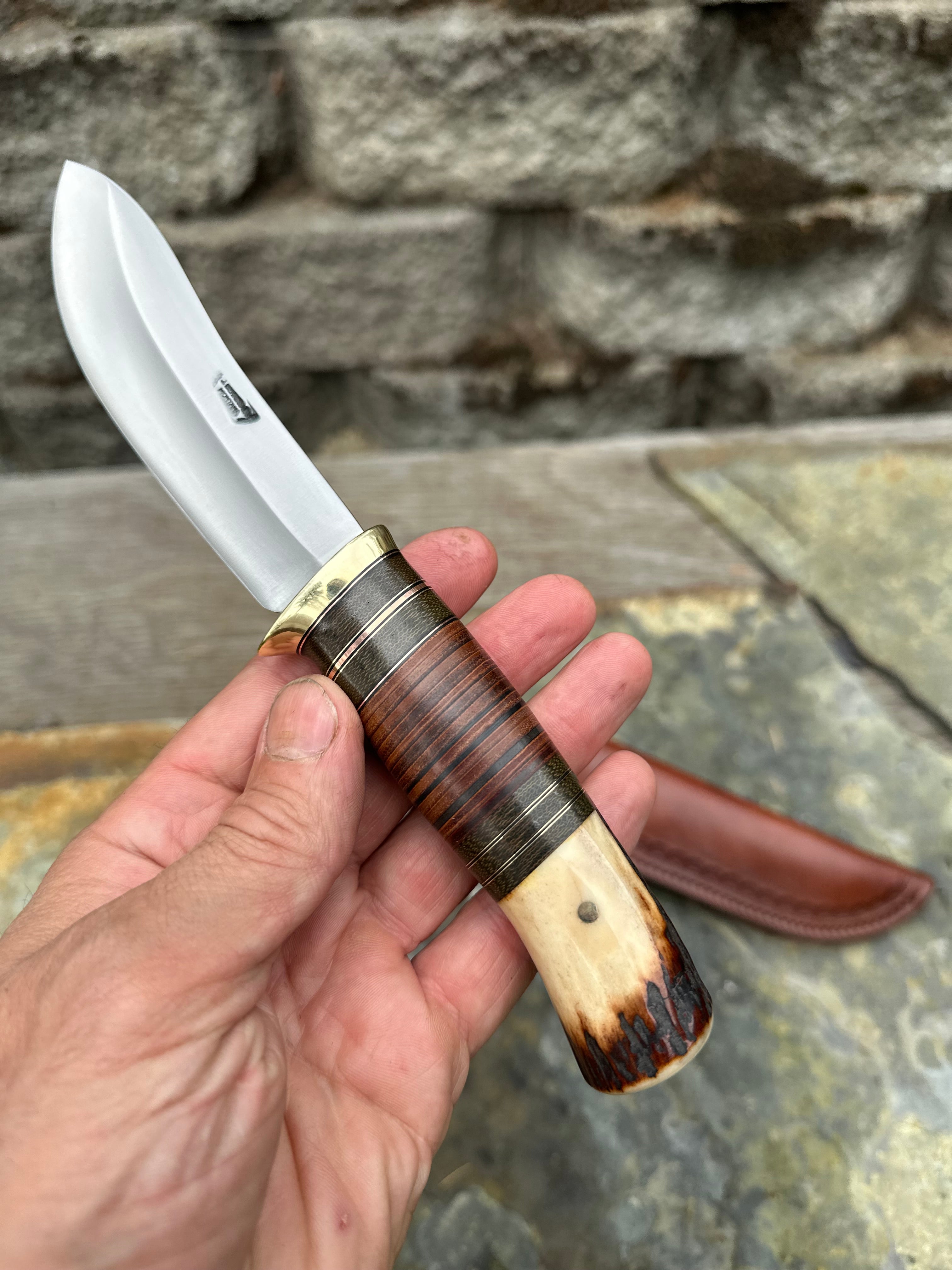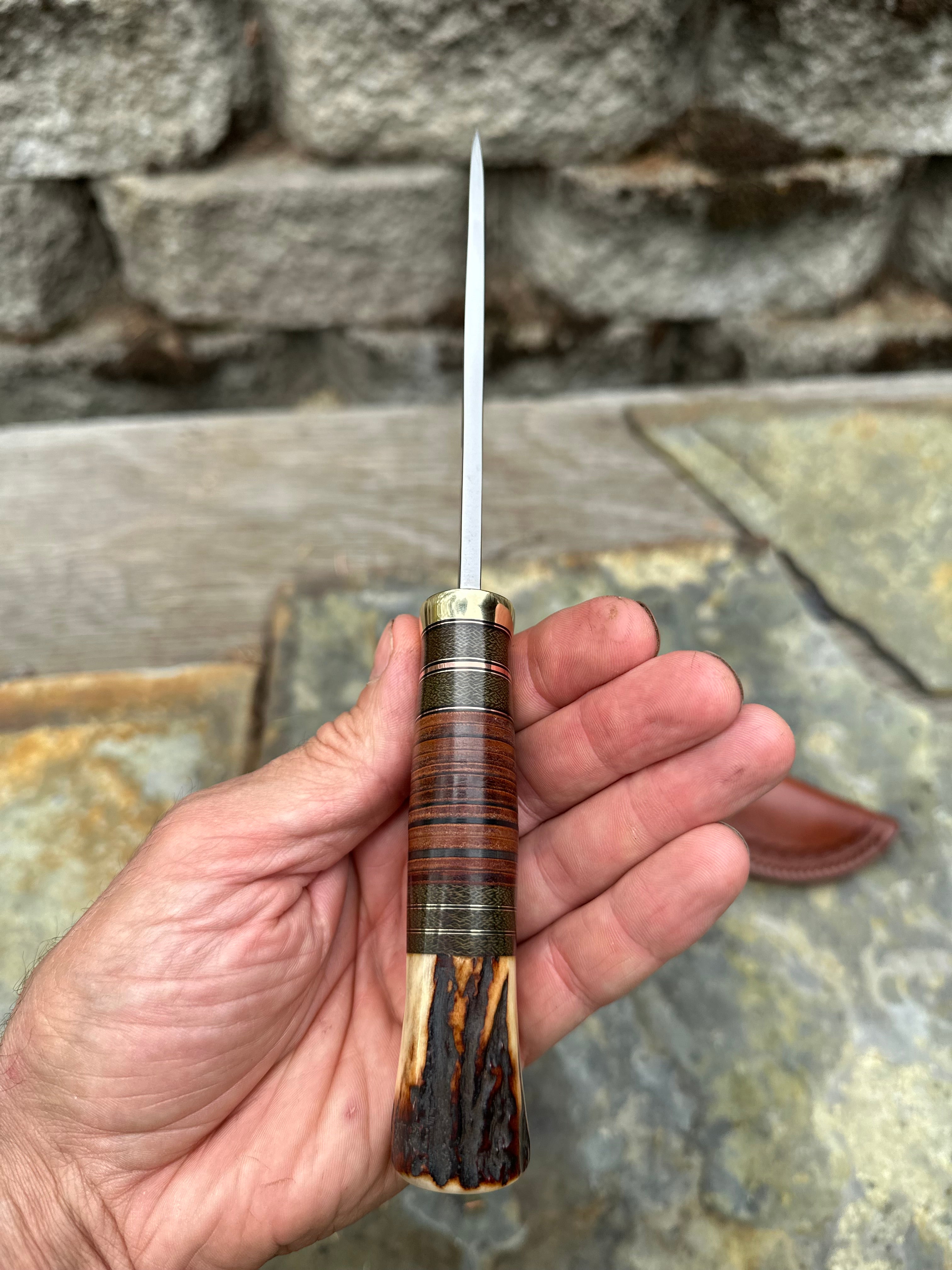 - Green Micarta, Brass, Copper, Black Fiber, & Horsehide Handle