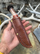 • Brown Tooled Pouch Sheath w/ Brass Rivets