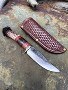 • Brass, Nickel Silver, Maroon Fiber, Horsehide, & Black Fiber Handle