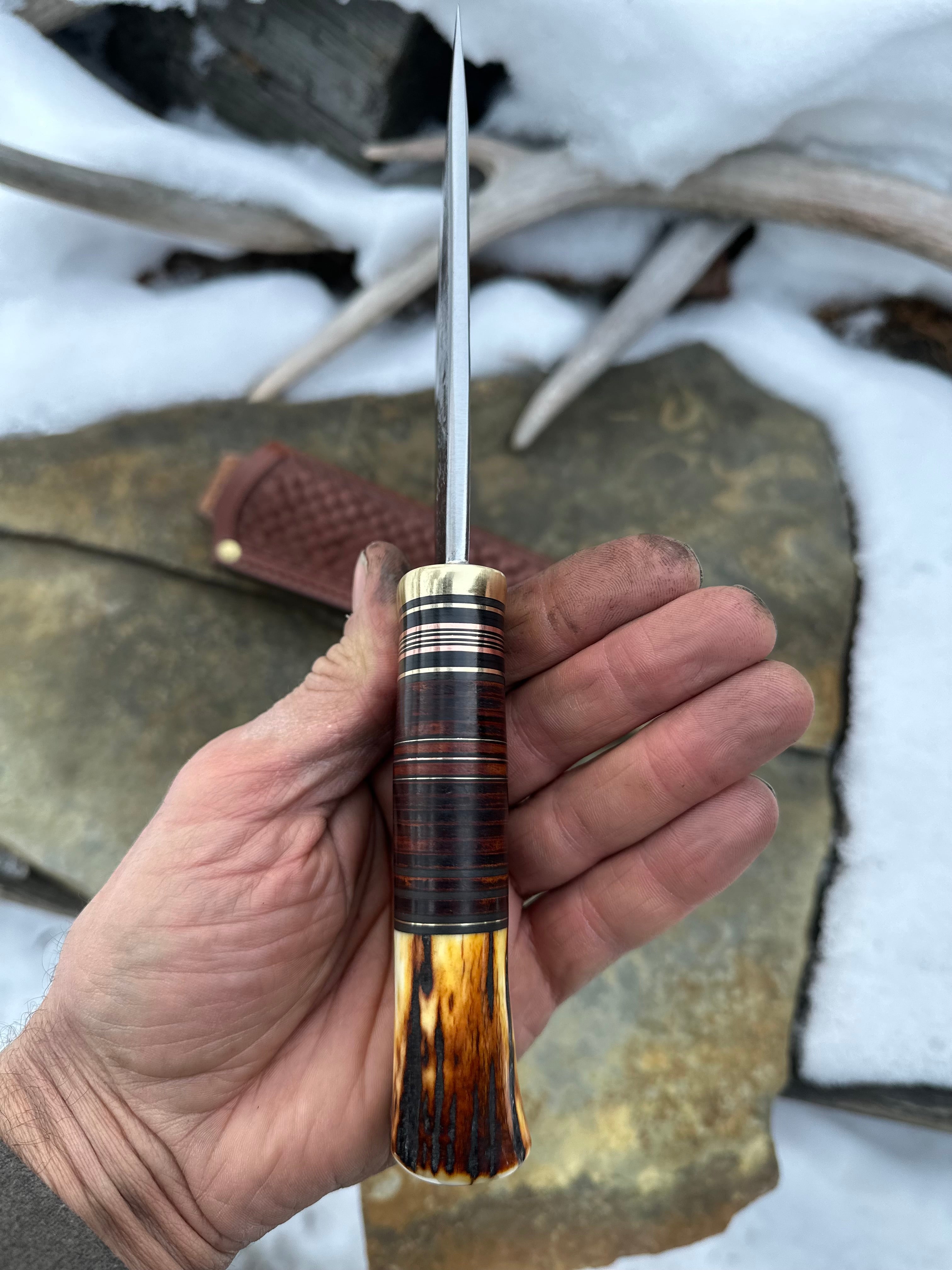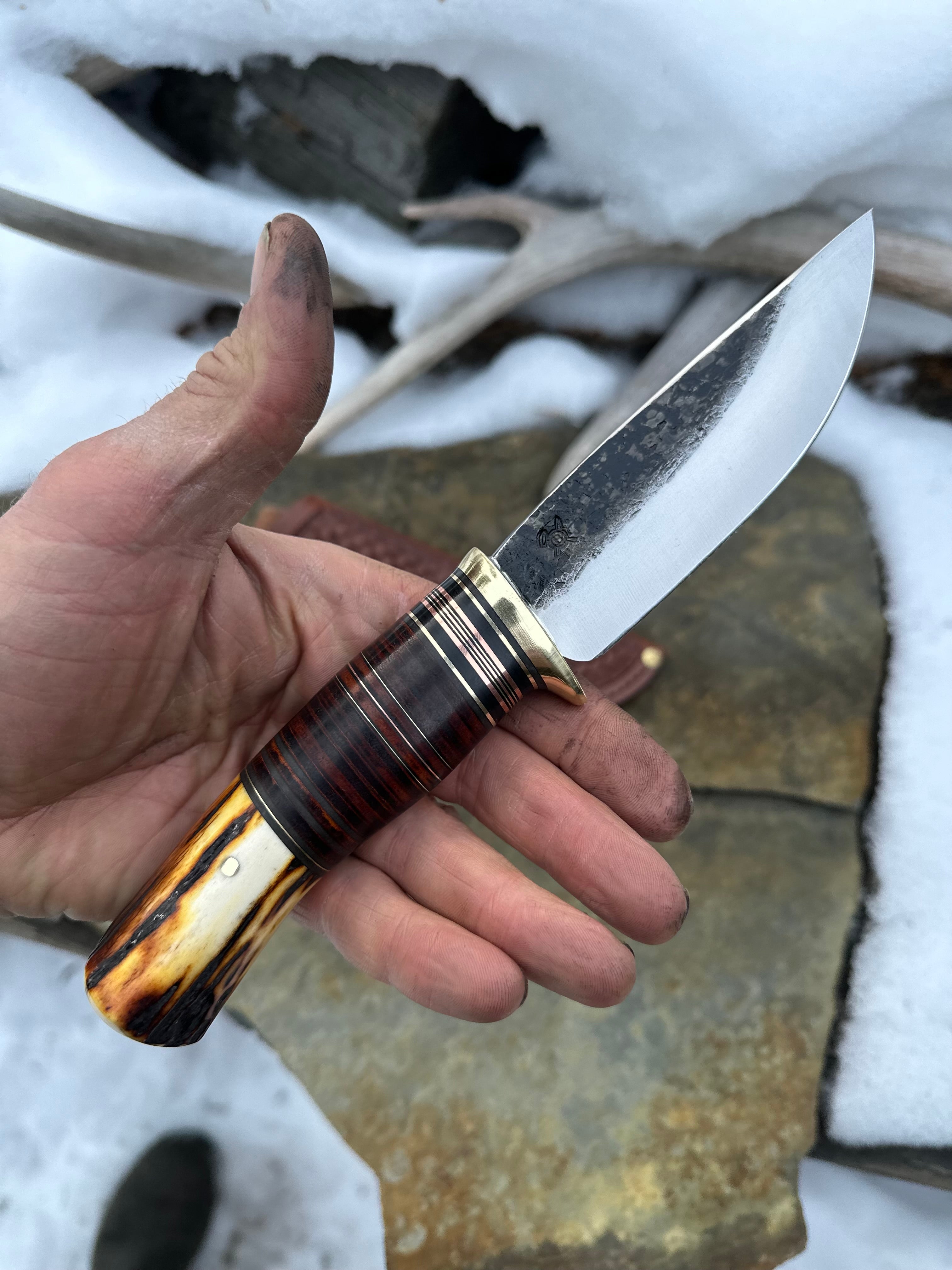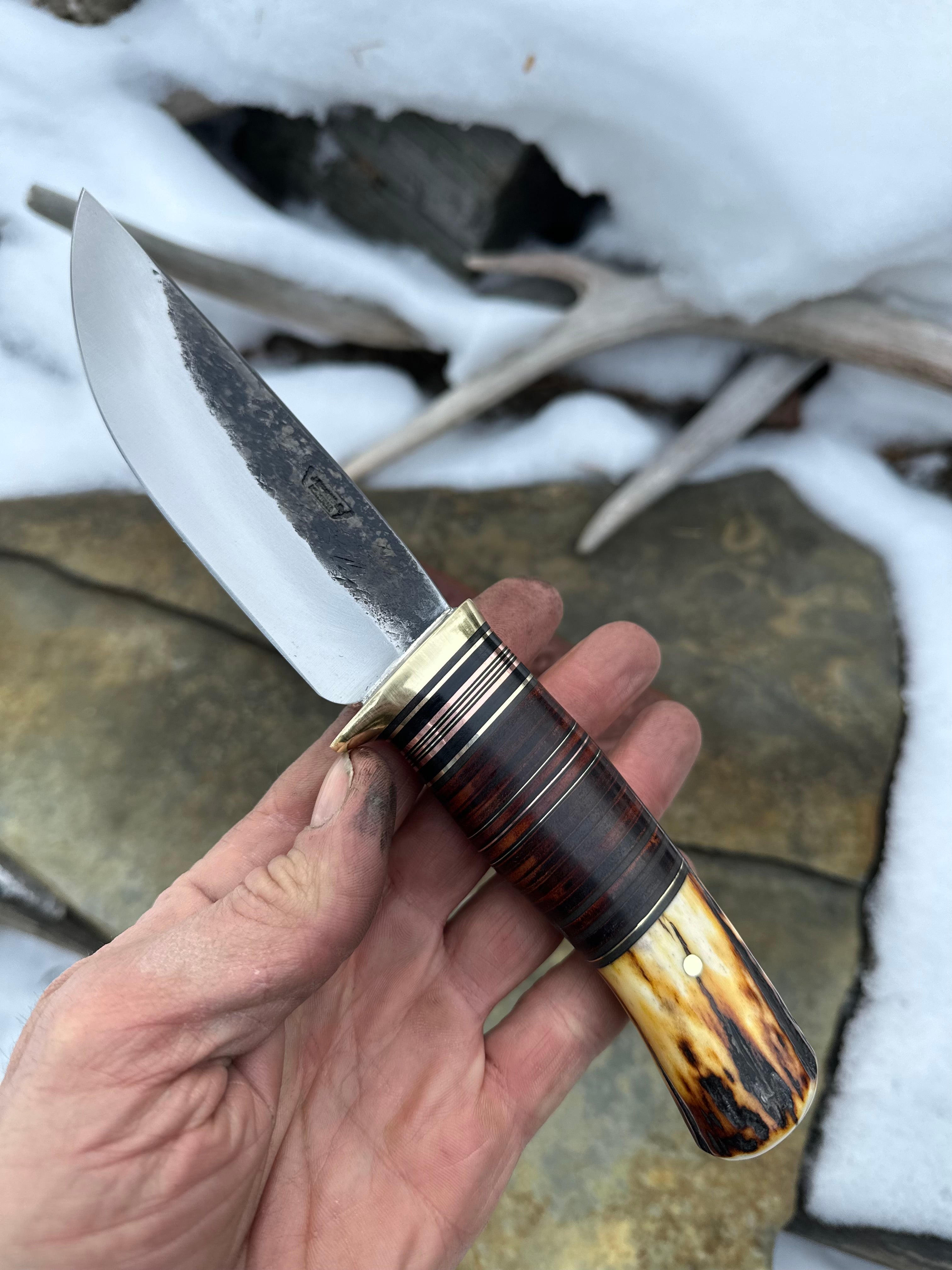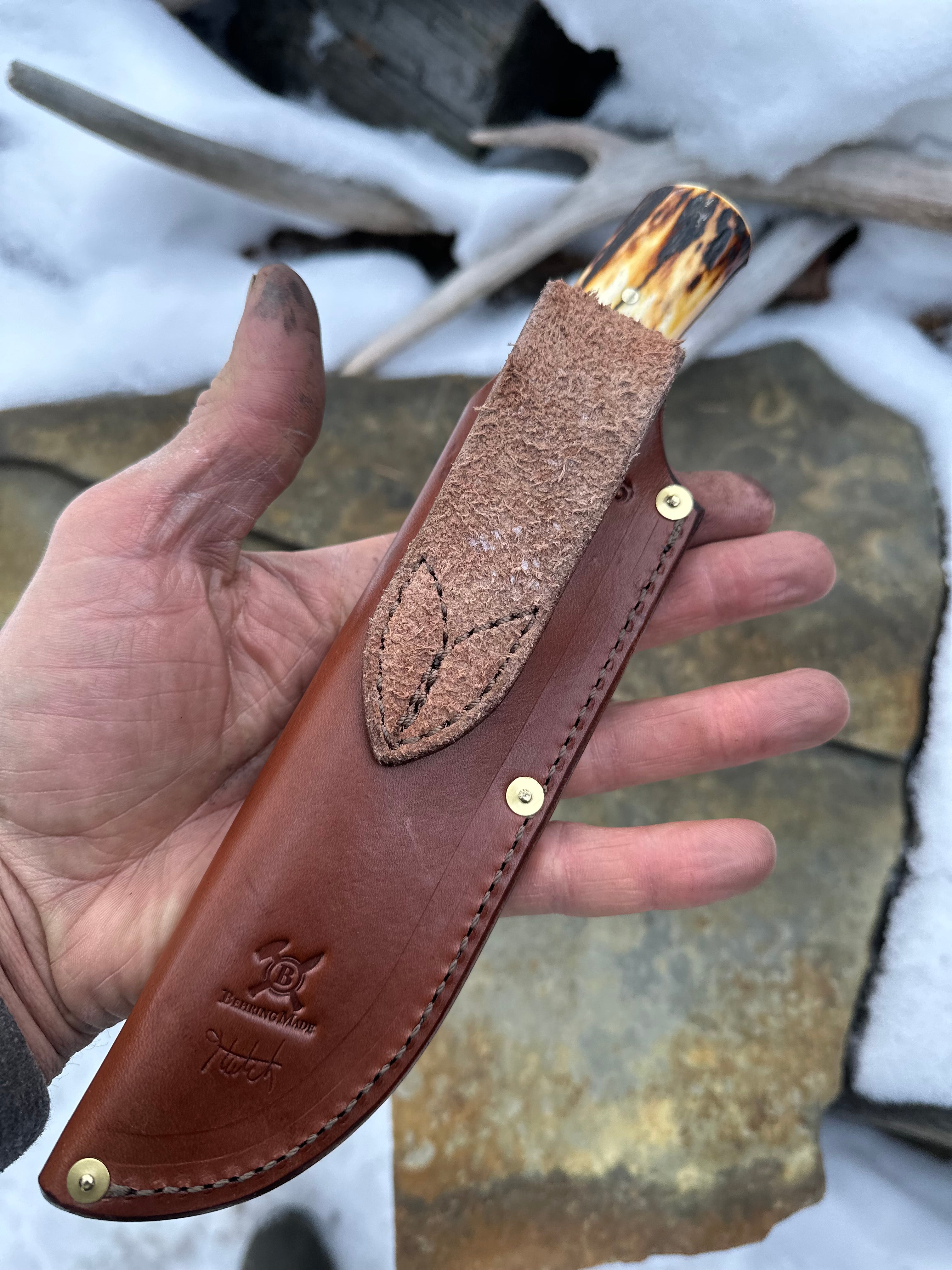 - Horsehide, Brass, Copper, and Black Fiber Handle