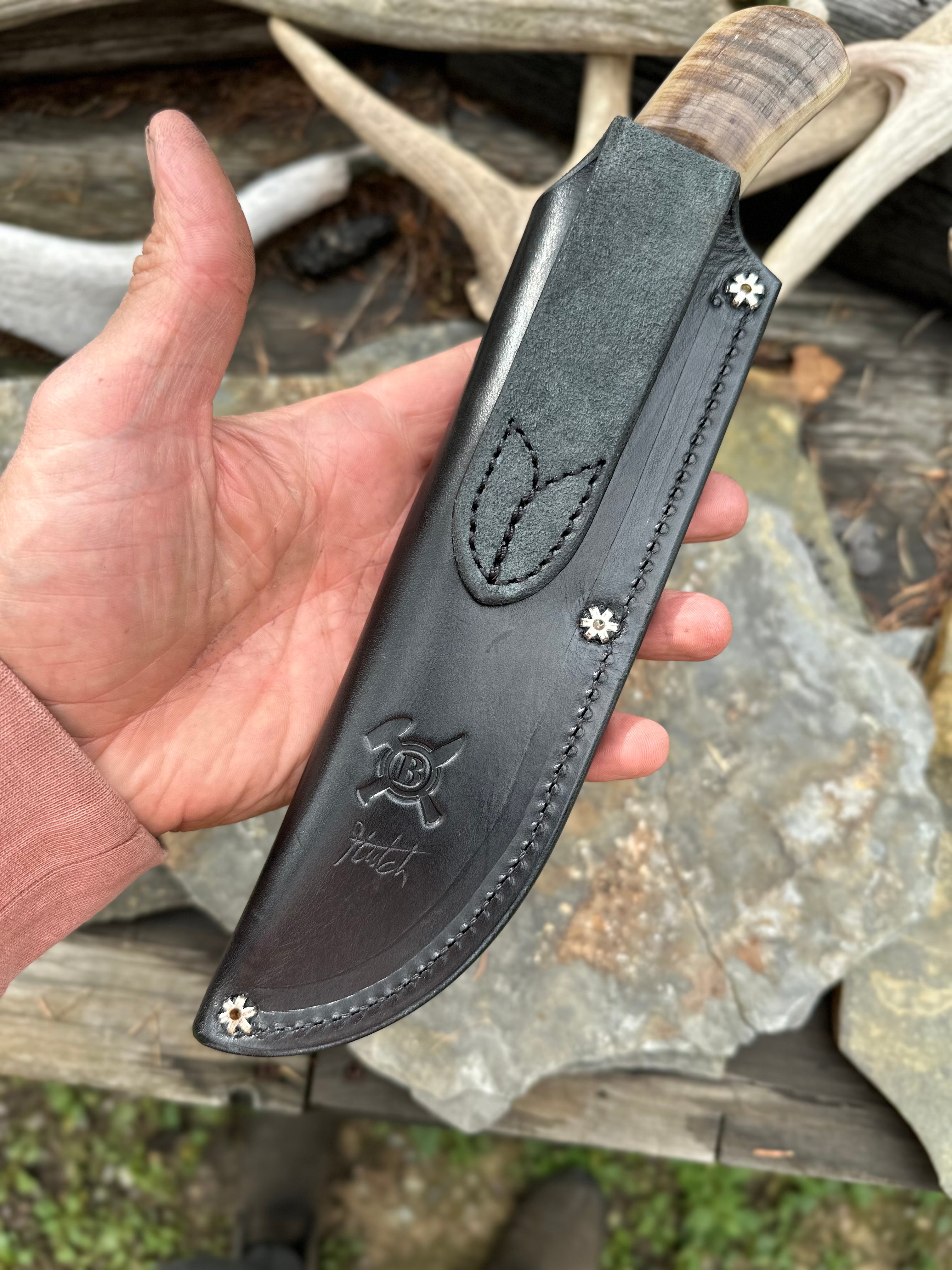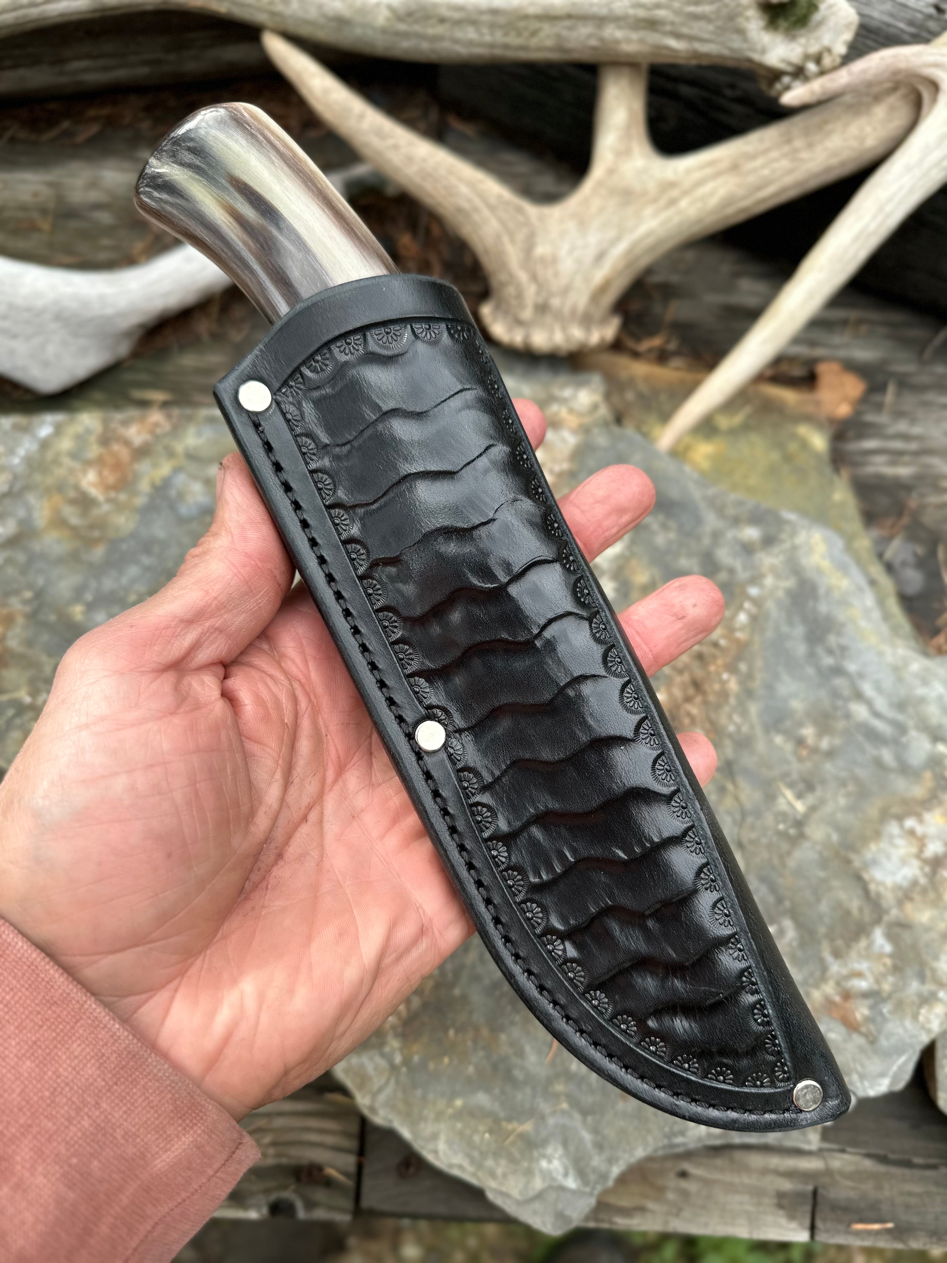 - Black Ripple Tooled Pouch Sheath w/ Nickel Rivets