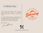 This Behring Made E-Gift Card is a perfect gift for any occasion, allowing the recipient to choose from a wide range of high-quality Behring Made products. With this convenient and versatile card, you can give the gift of quality and choice. This card is not printed. If you would like to request a printed version of this card, please contact us, or purchase one of our printed and shipped cards.
