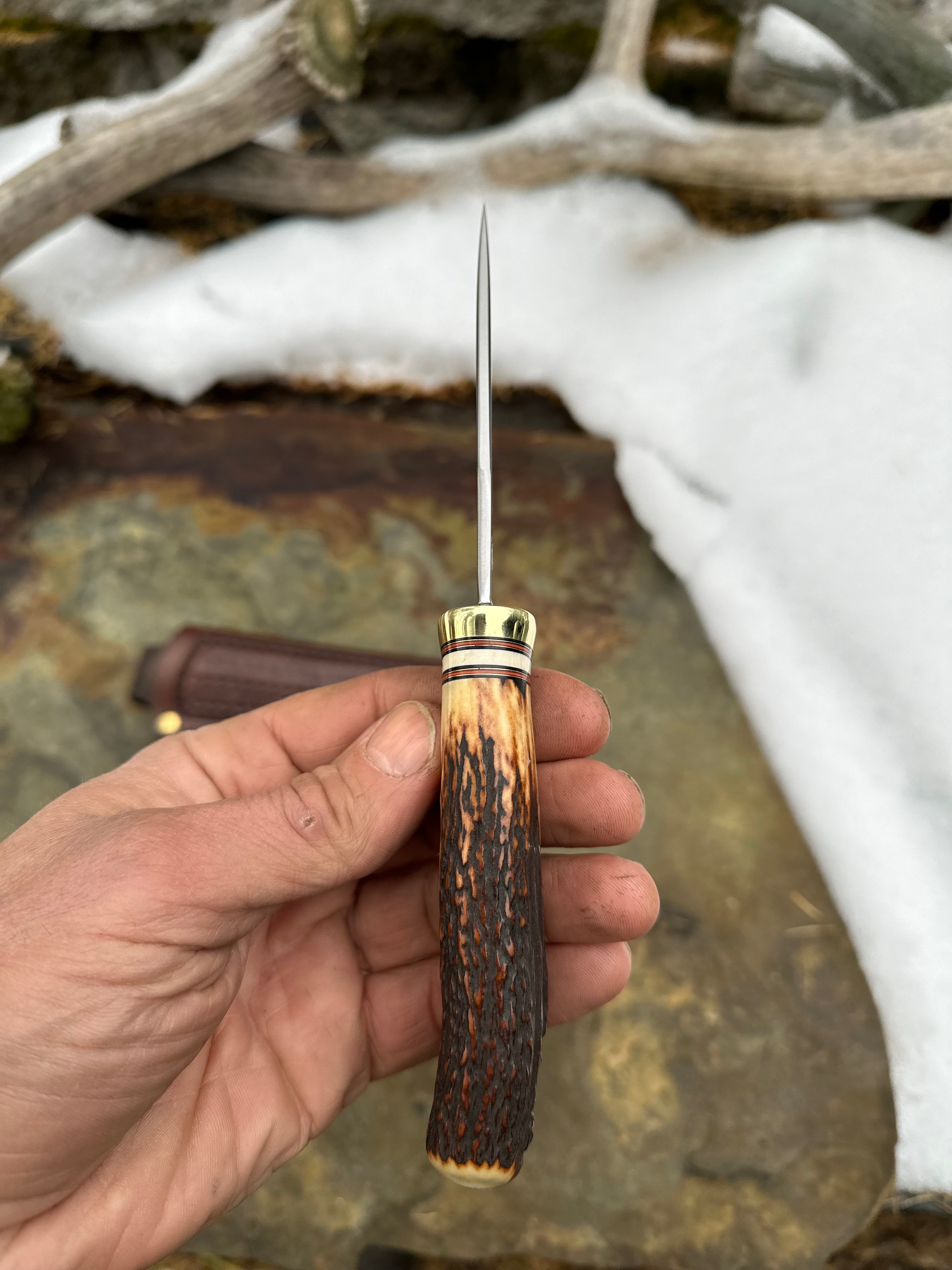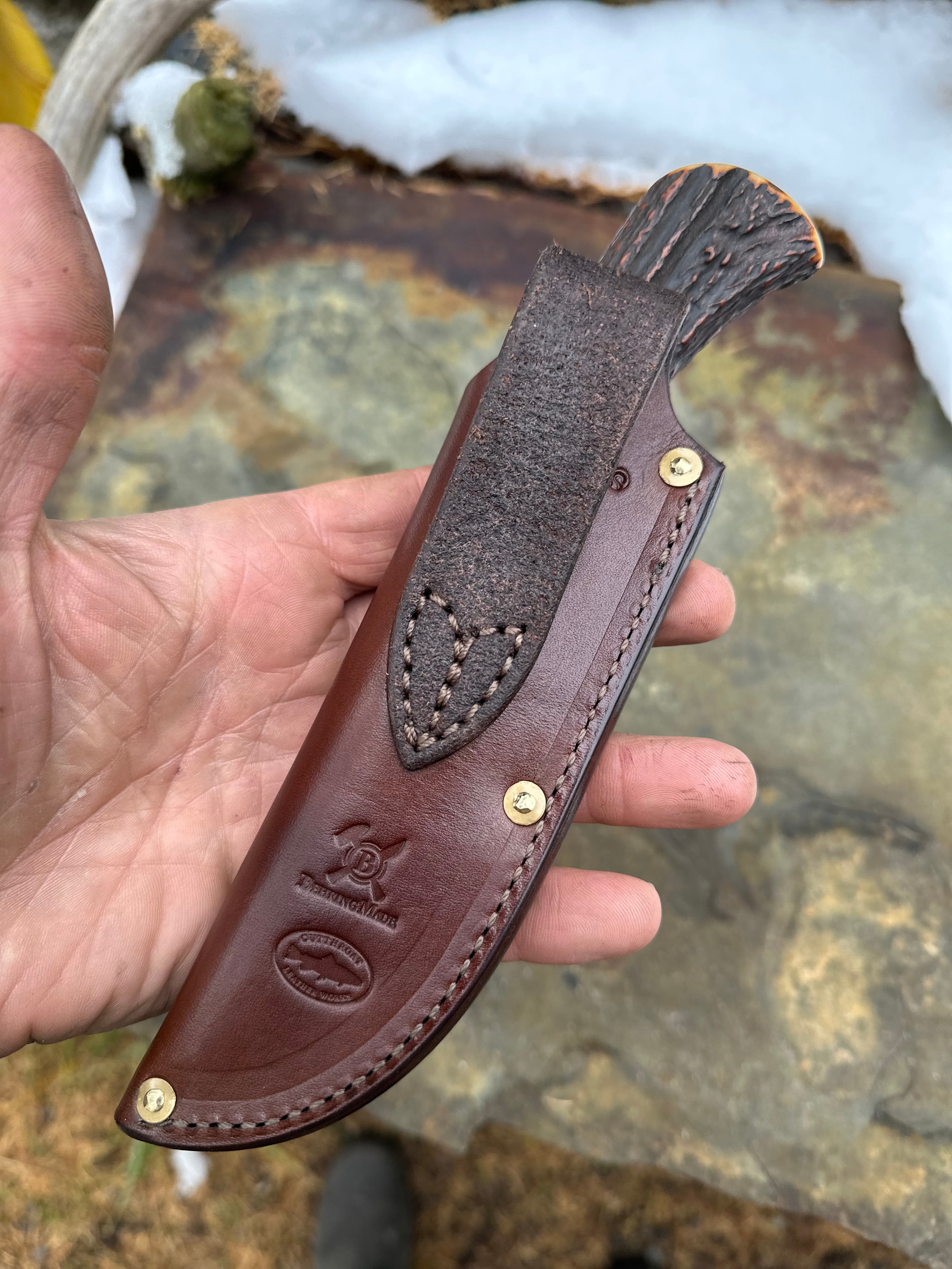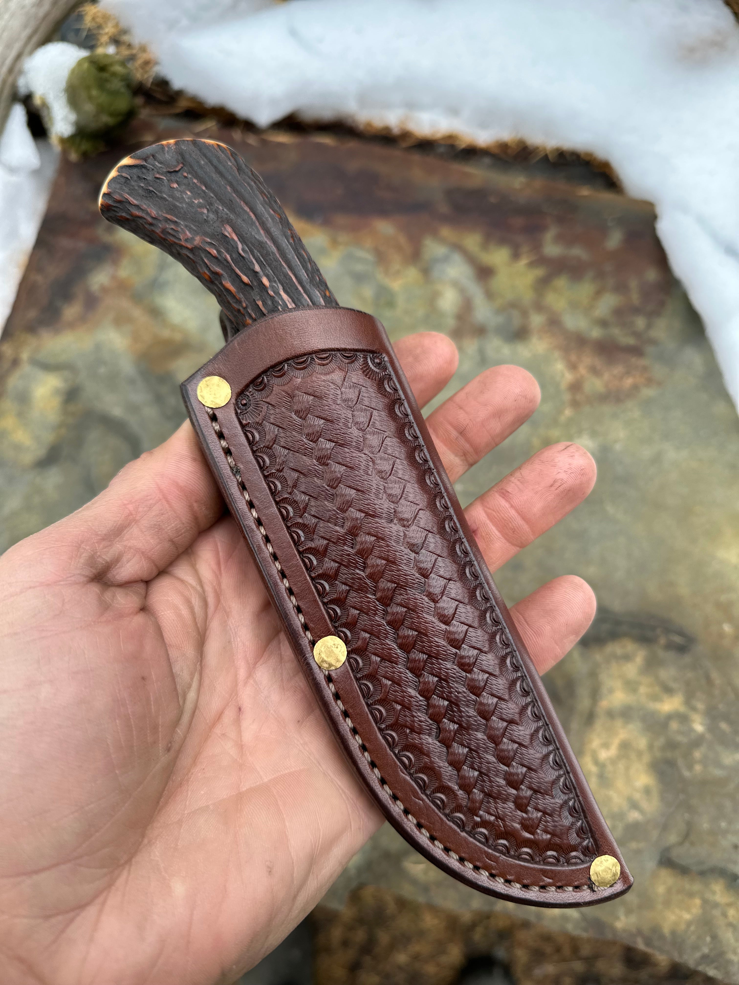 - Brown Tooled Pouch Sheath w/ Brass Rivets