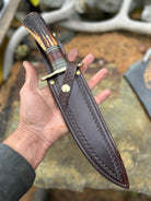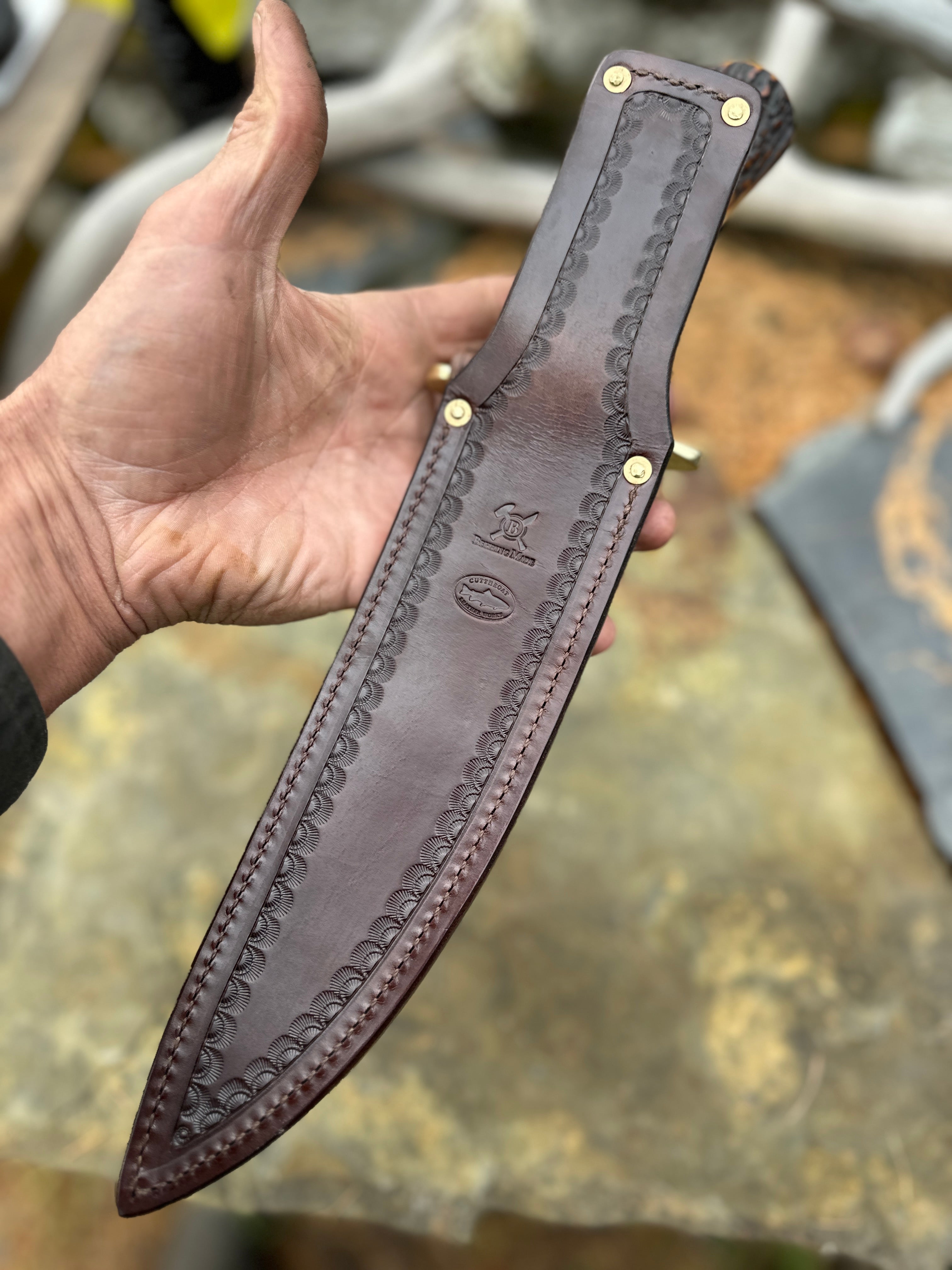 - Brown Border Tooled Belt Sheath with Brass Rivets