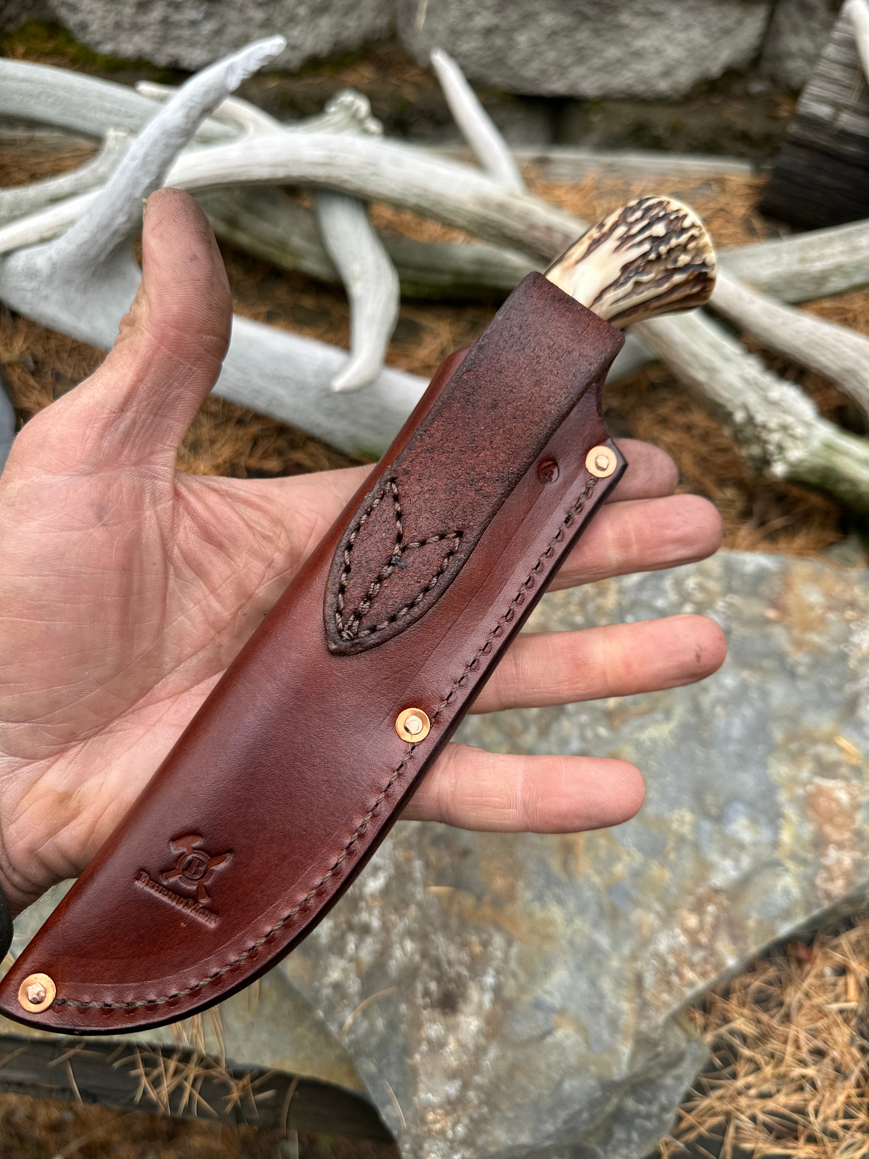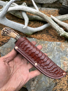 - Brown Ripple Tooled Pouch Sheath with Copper Rivets