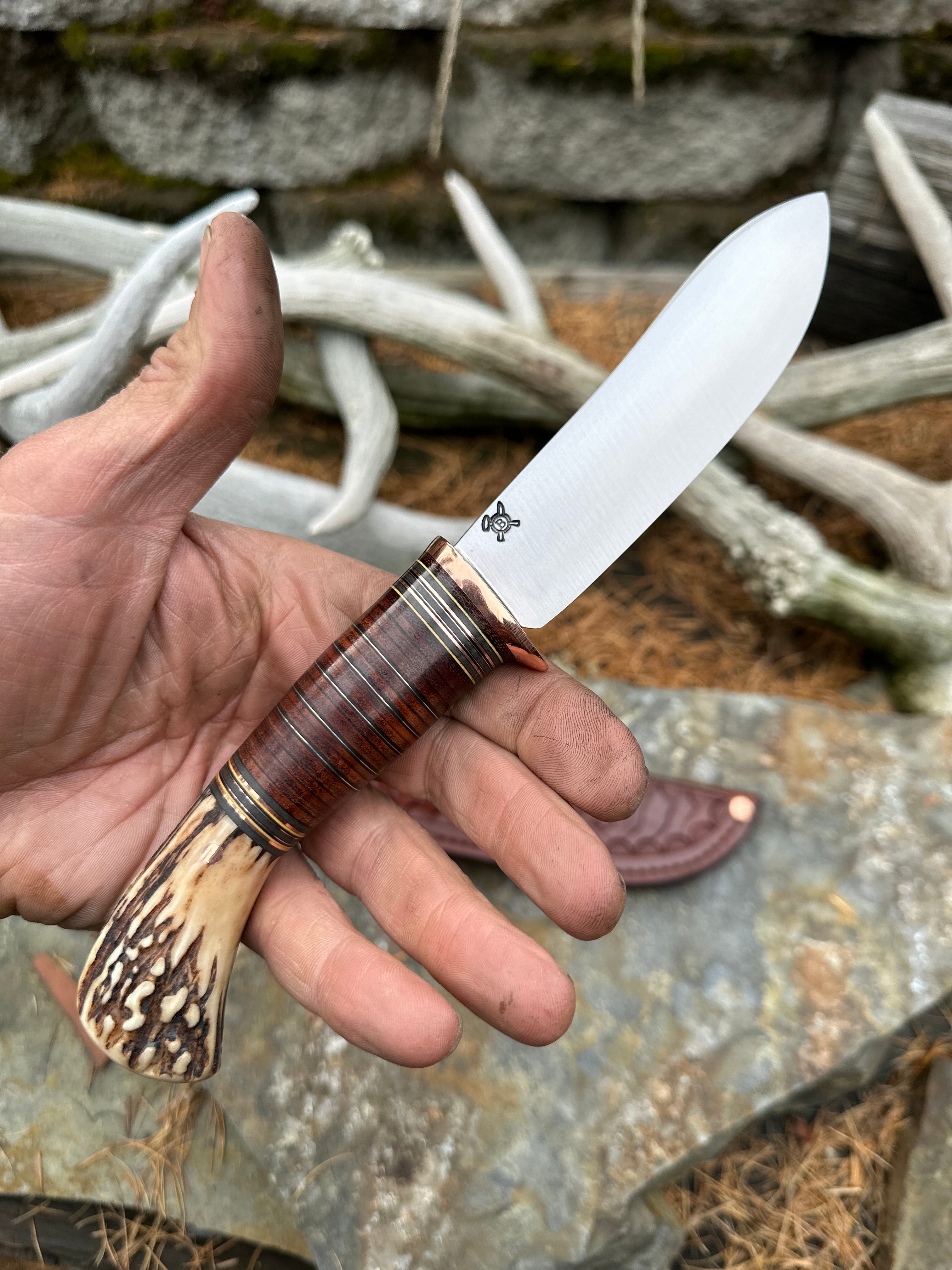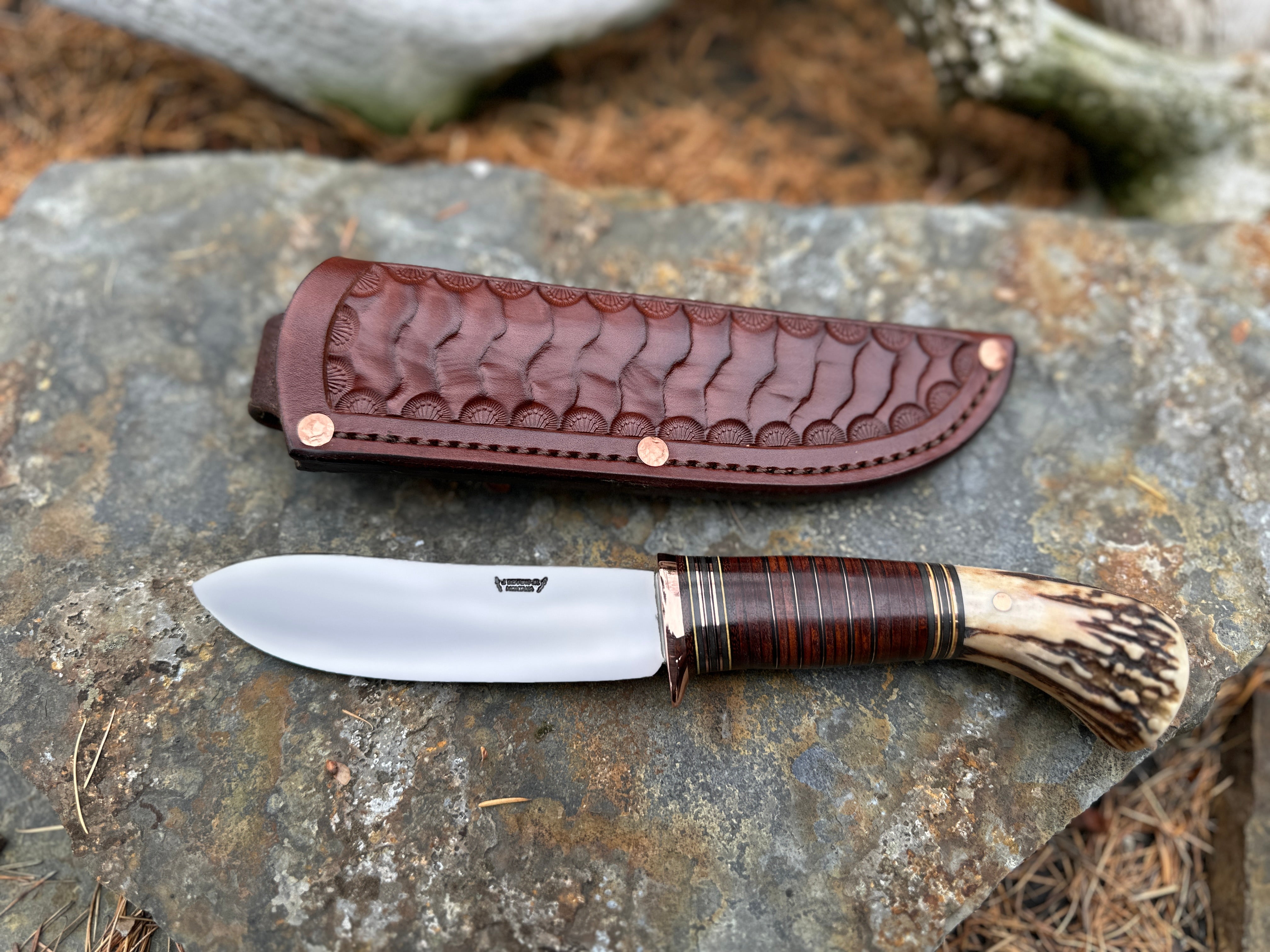 - Black Fiber, Copper, Green G-10, Brown Canvas Micarta, Horsehide & Yellow Fiber Handle