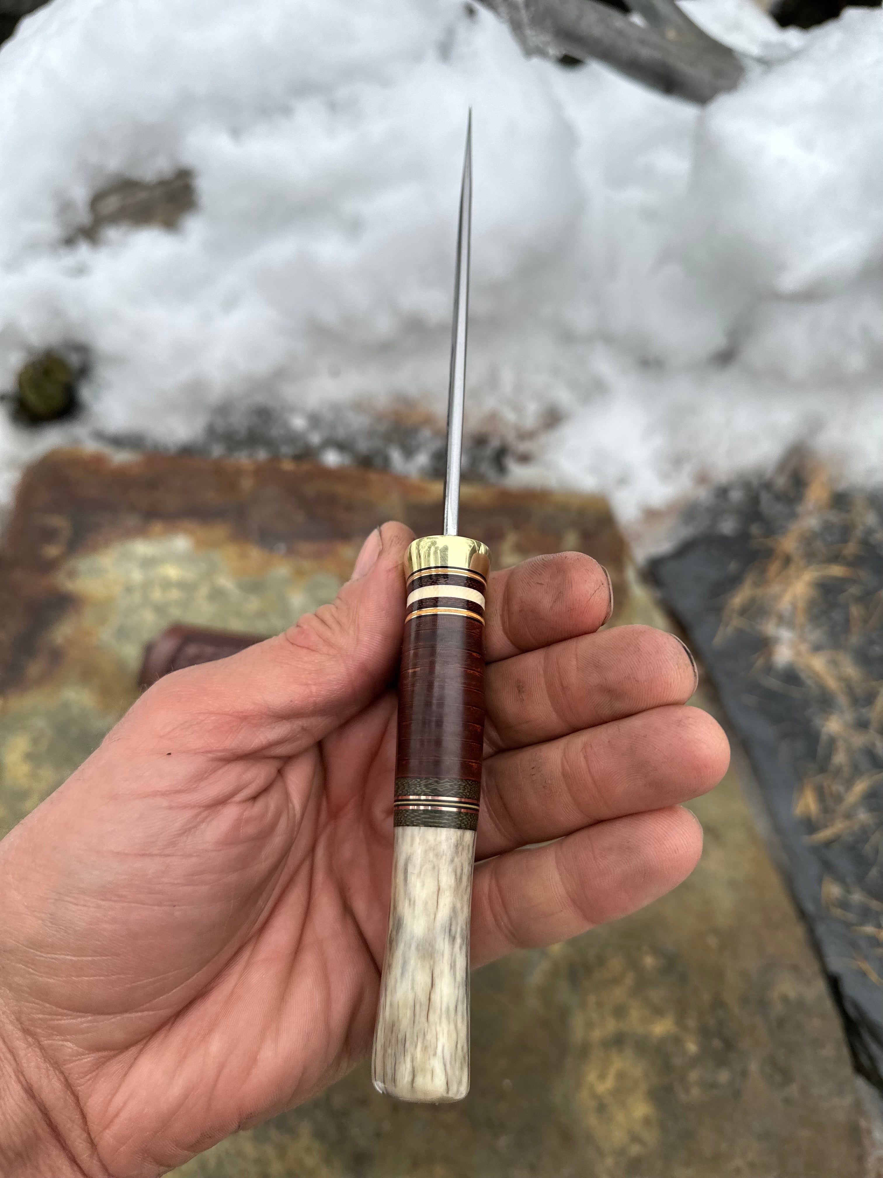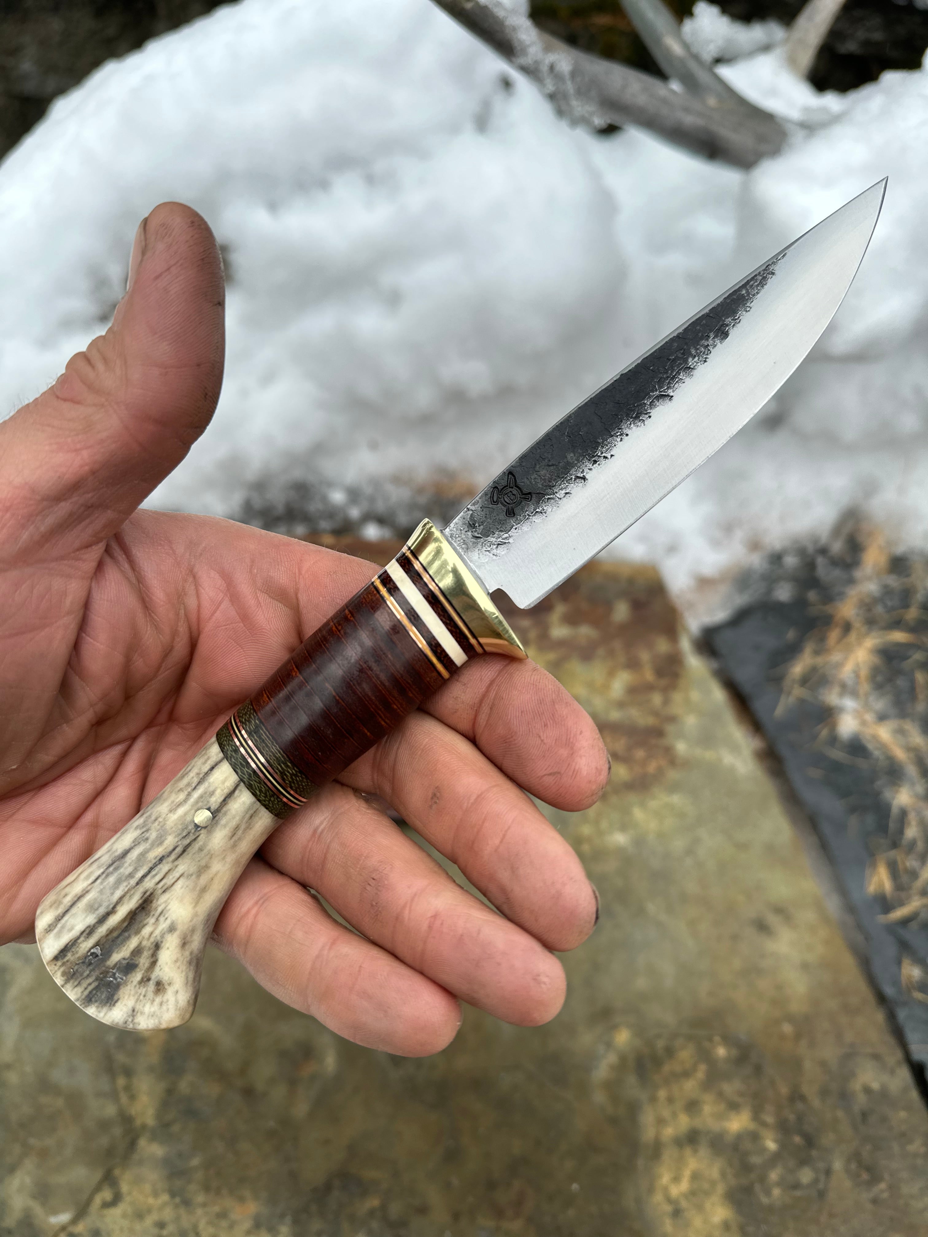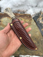 - Black Fiber, Copper, Brass, Brown and Green Micarta, Horsehide, Mammoth Ivory, & Yellow Fiber Handle