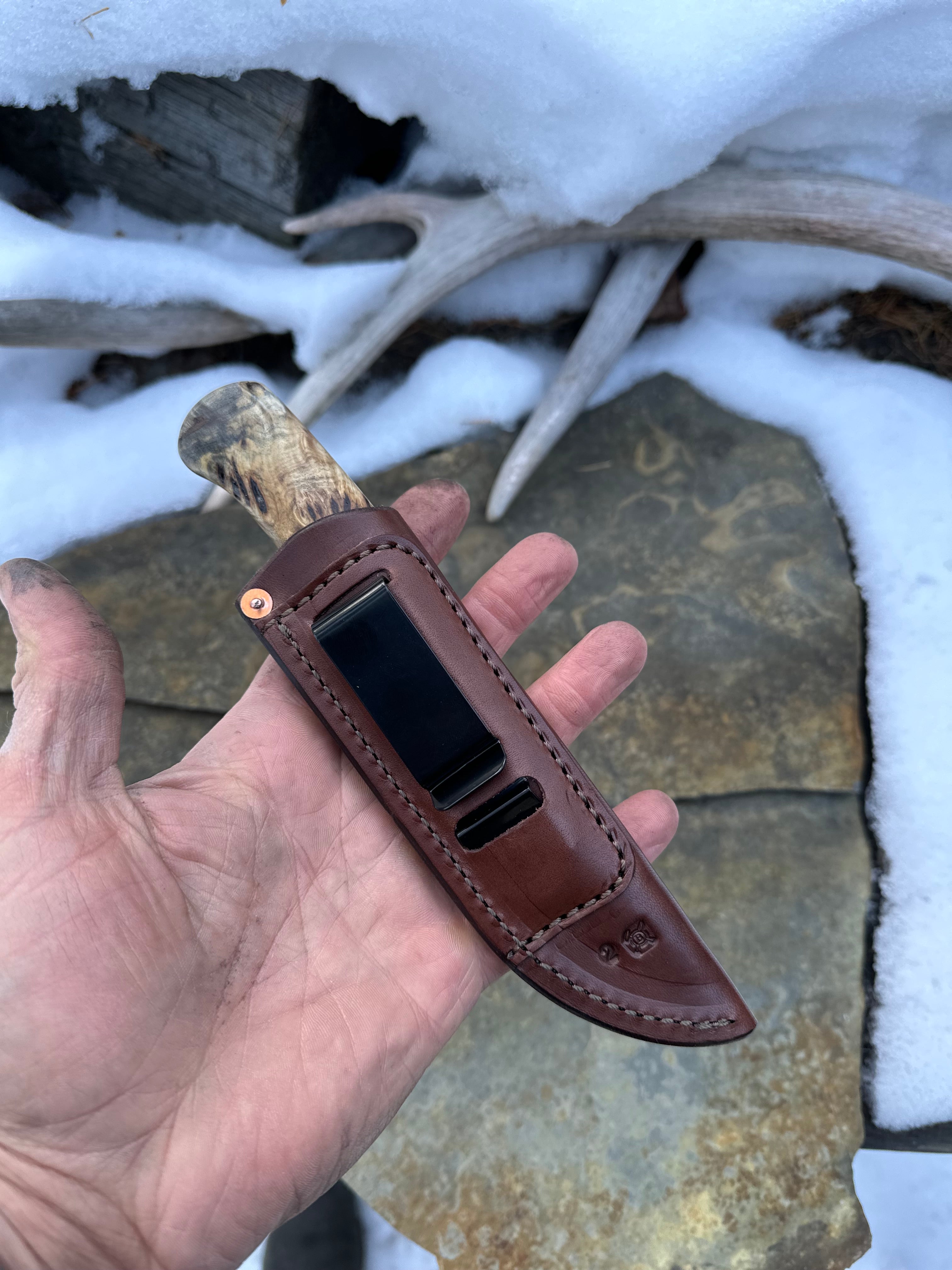 - Dark Brown Border Tooled Pocket Clip Sheath