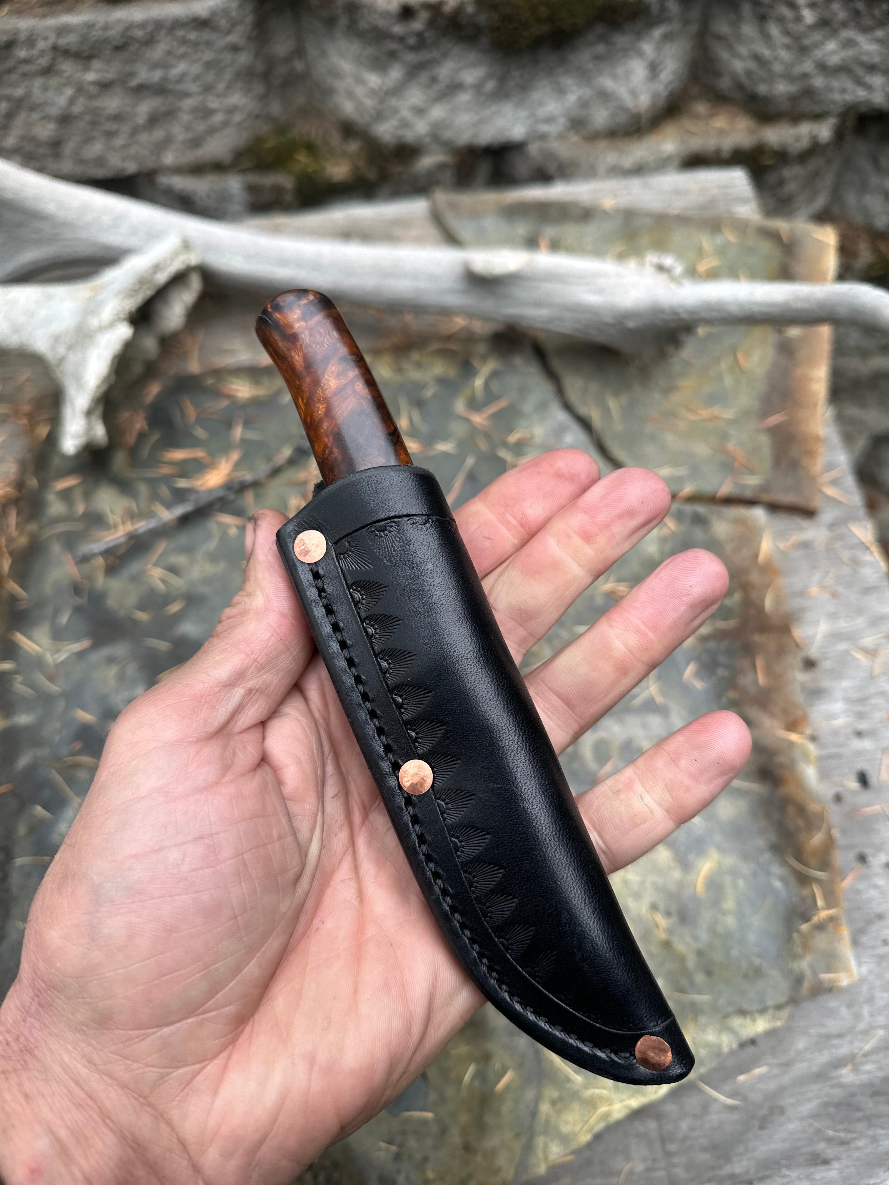 - Border Tooled Pouch Sheath w/ Copper Rivets