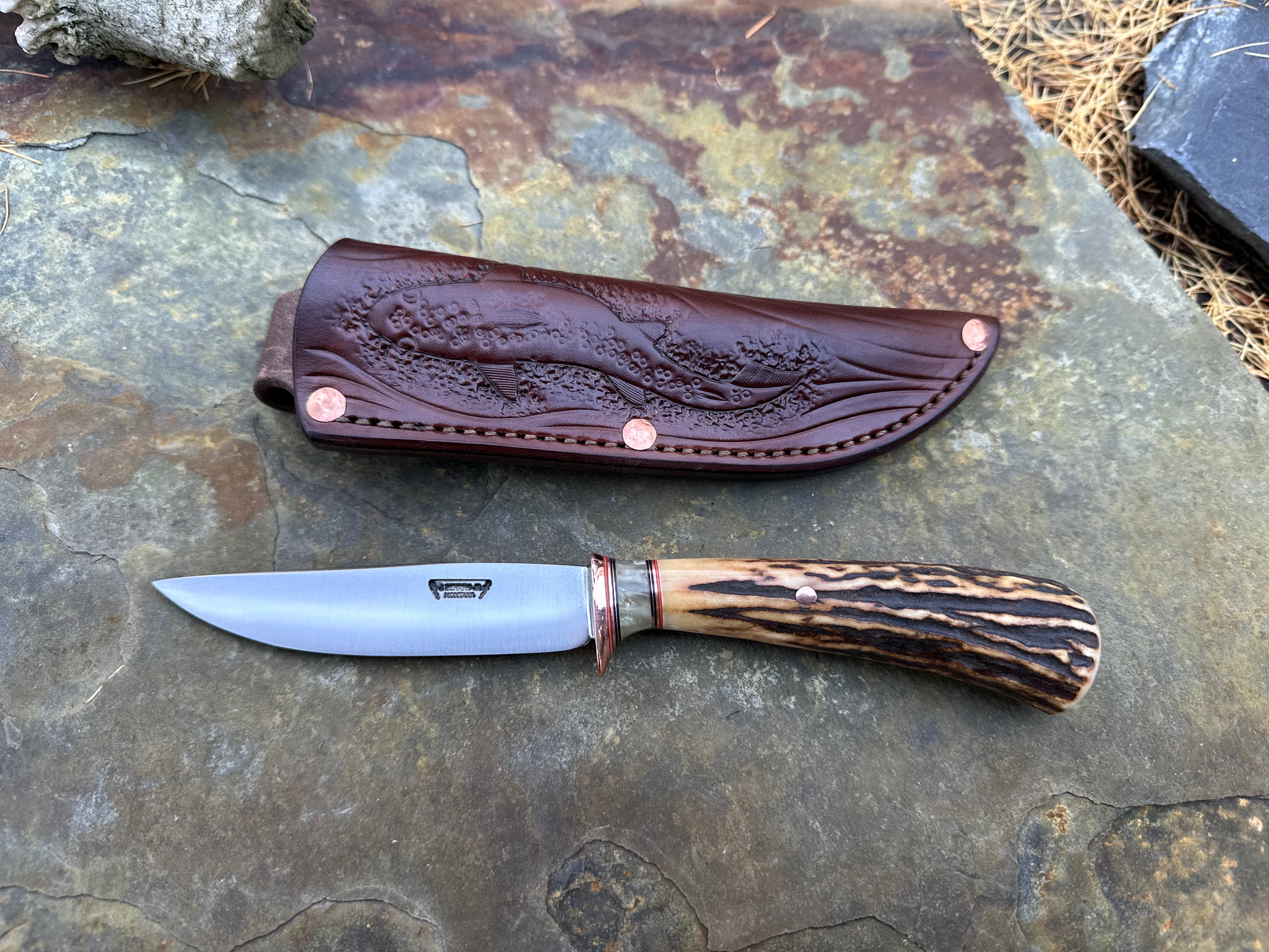 Sambar Stag & Musk Ox Pintail w/ Trout Themed Sheath