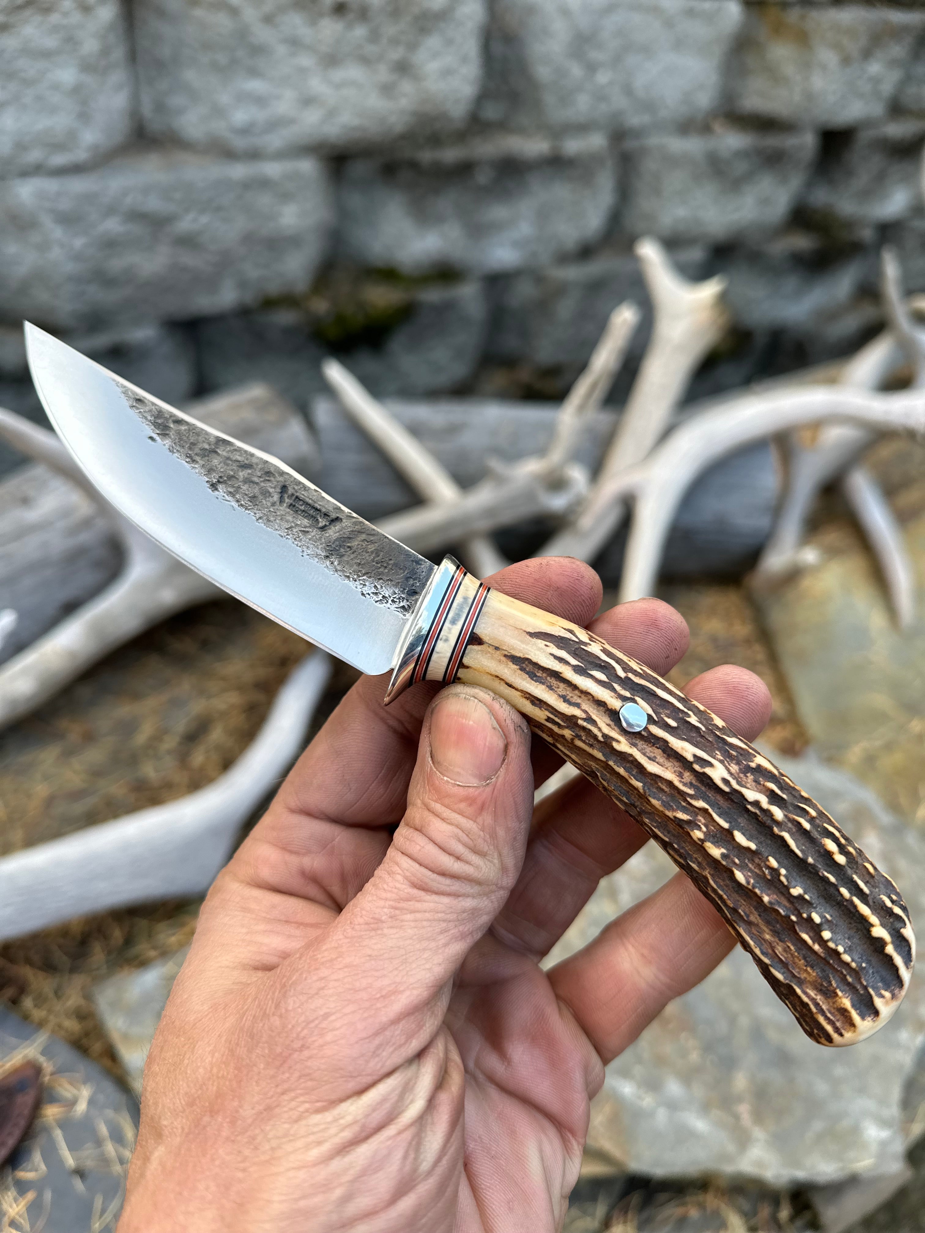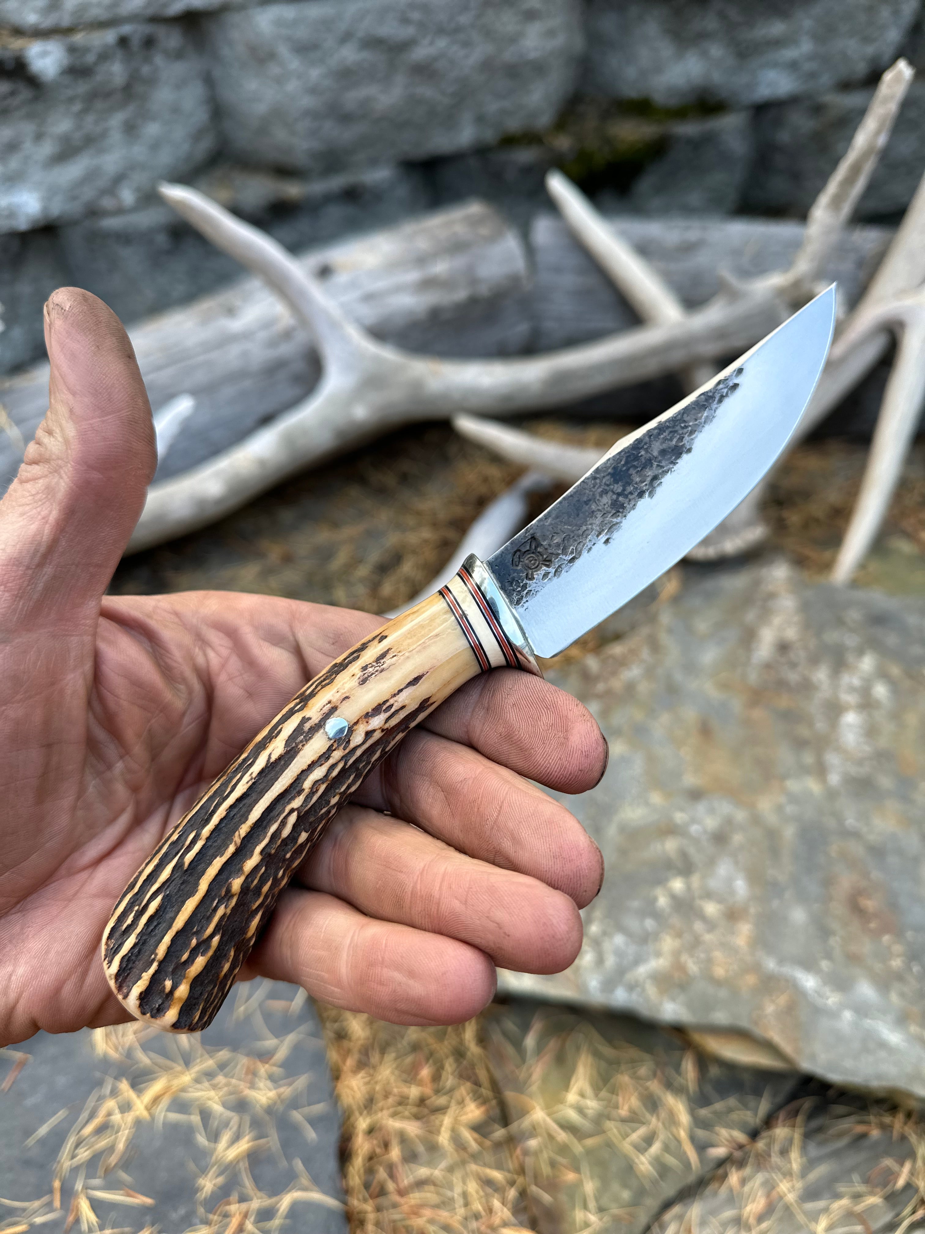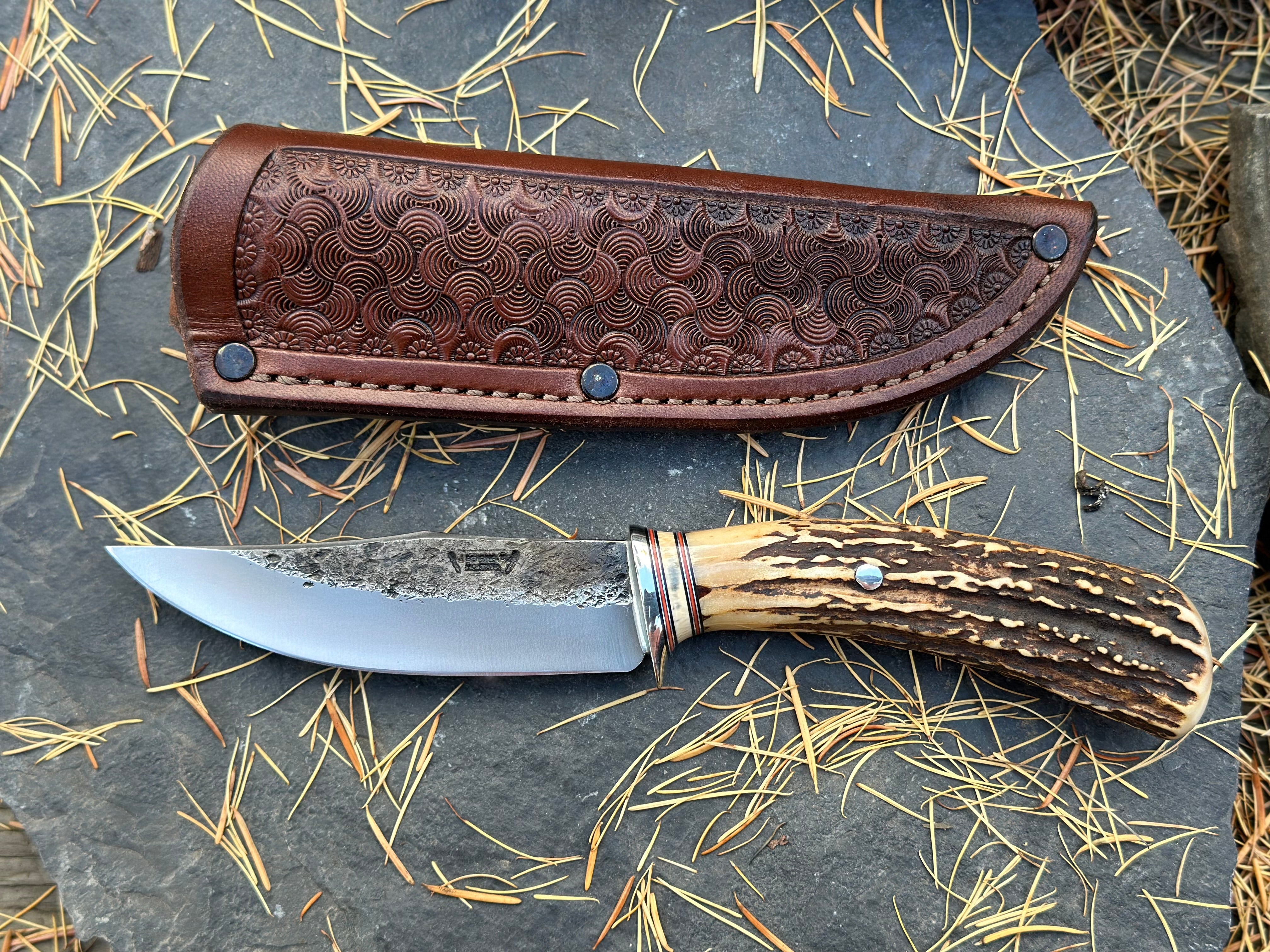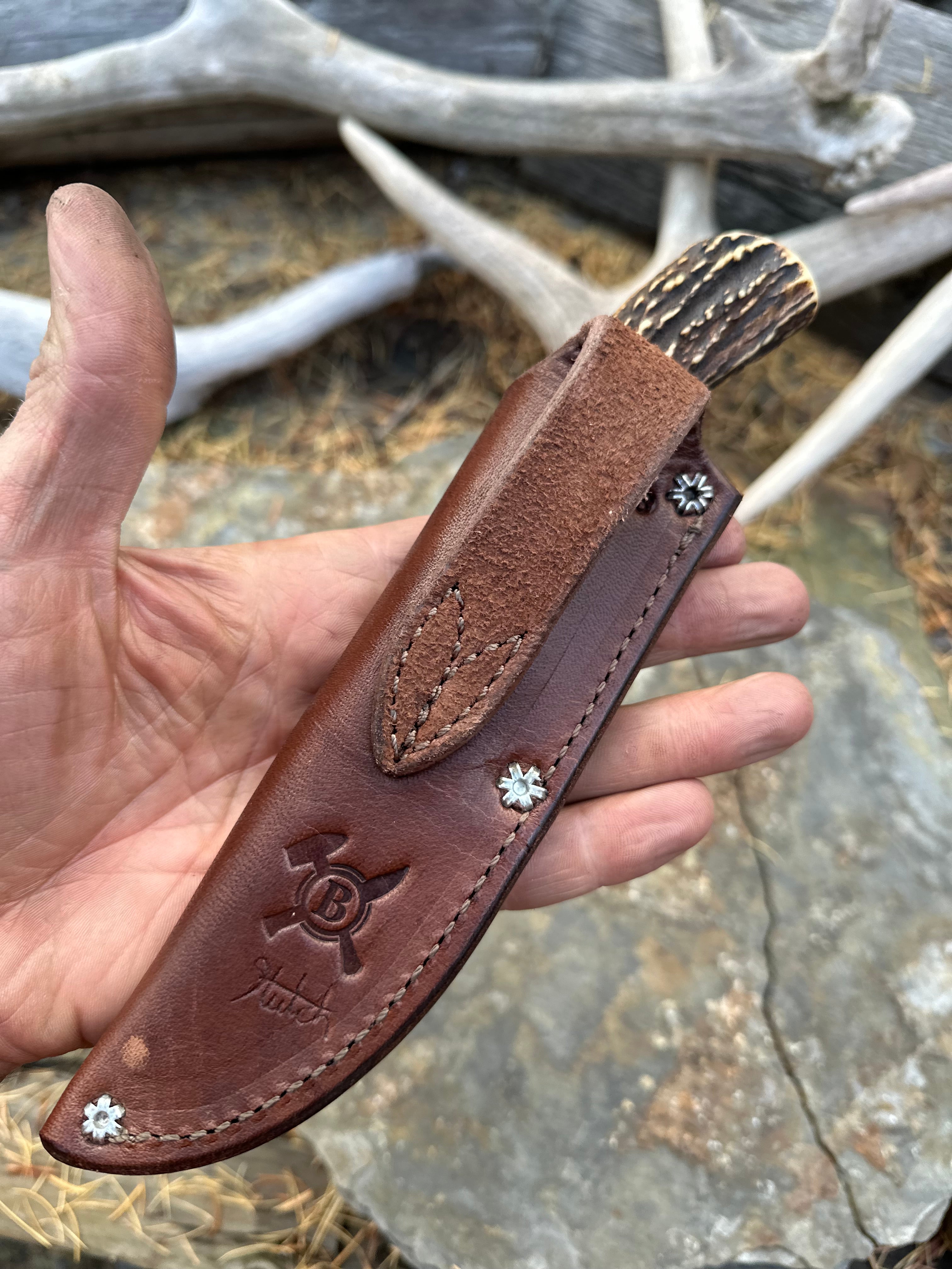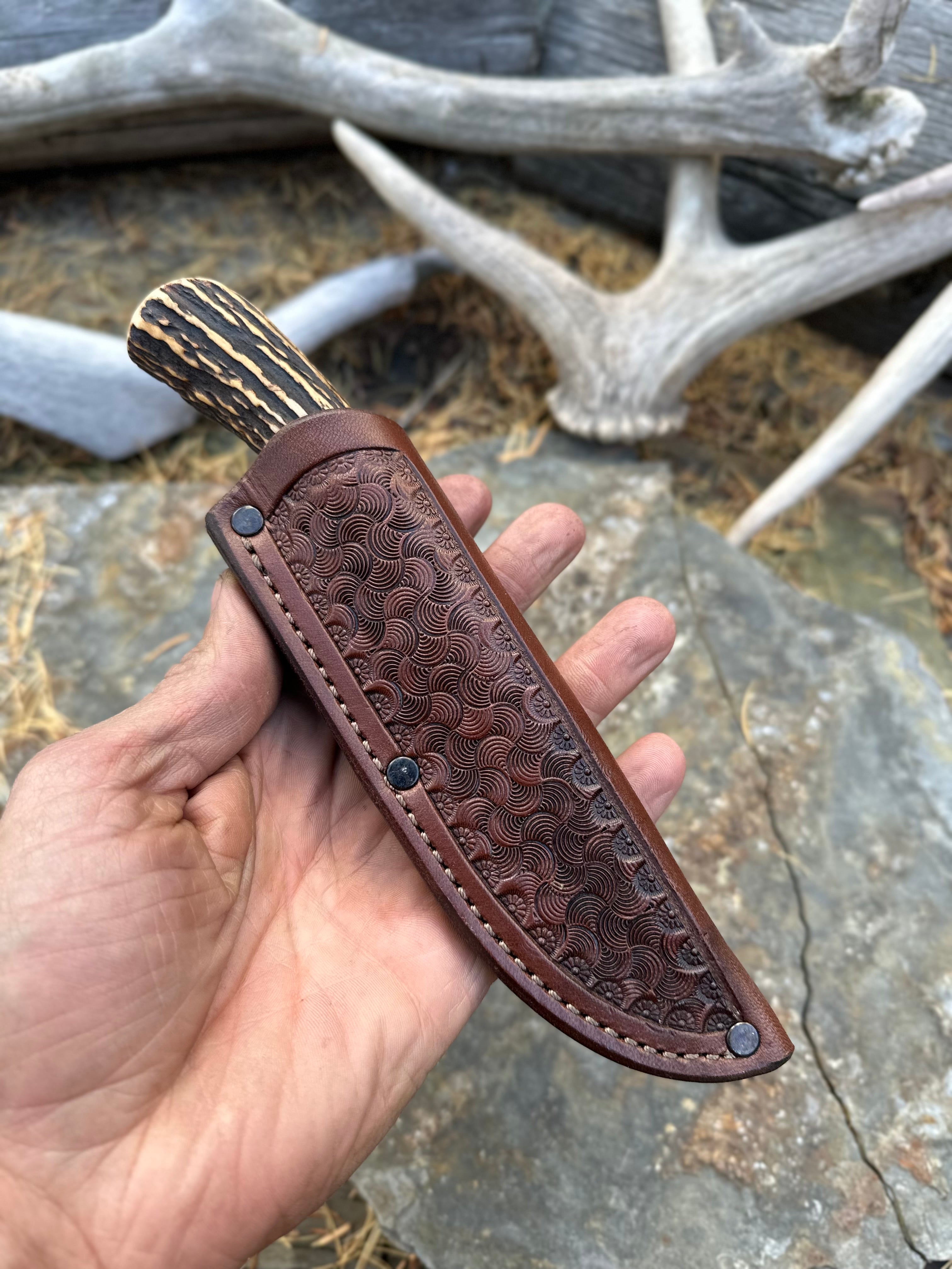 - Dark Brown Tooled Pouch Sheath w/ Black Rivets