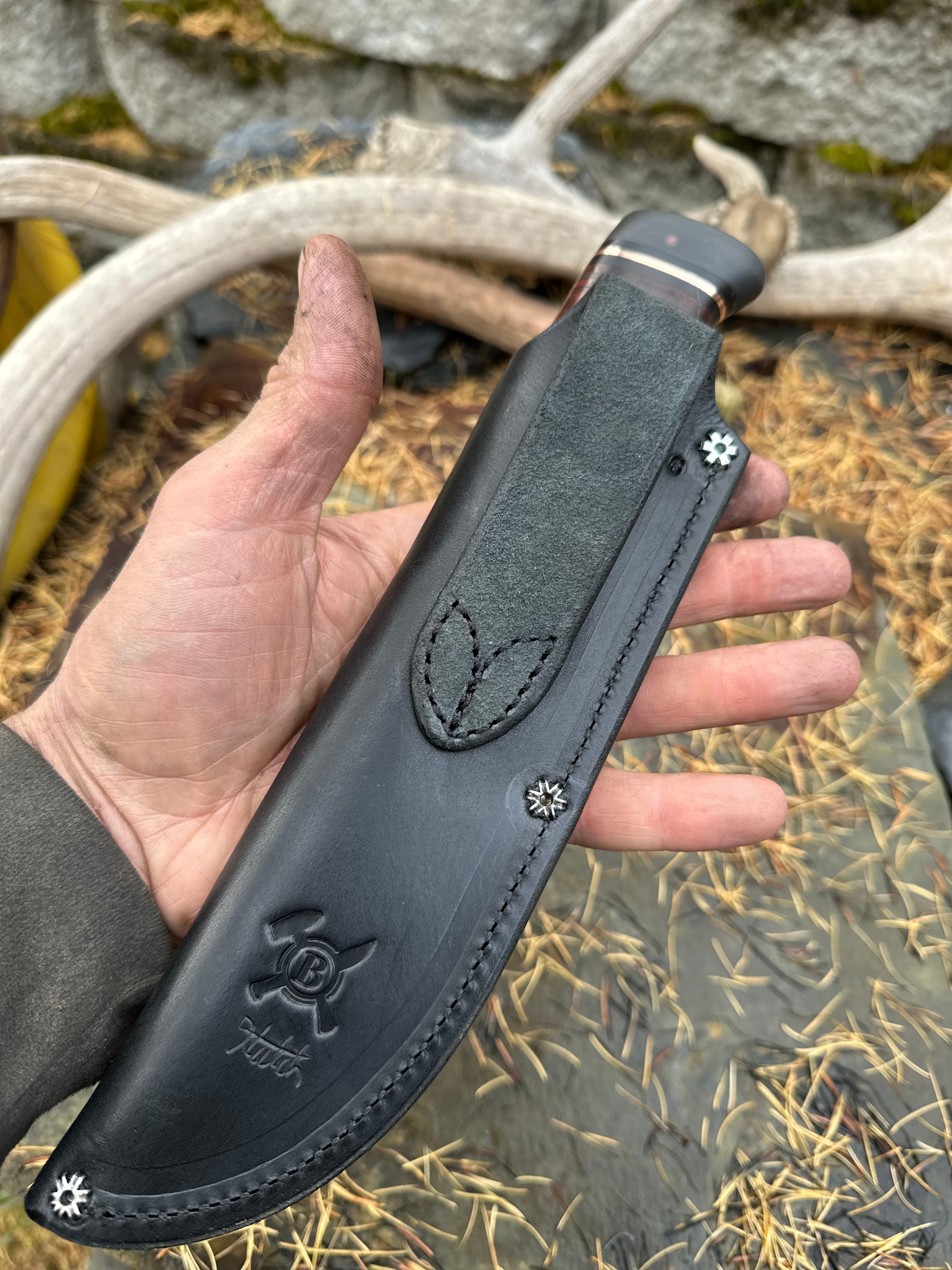 - Black Fiber, Green Micarta, Brown Micarta, Bronze, & Horsehide Handle