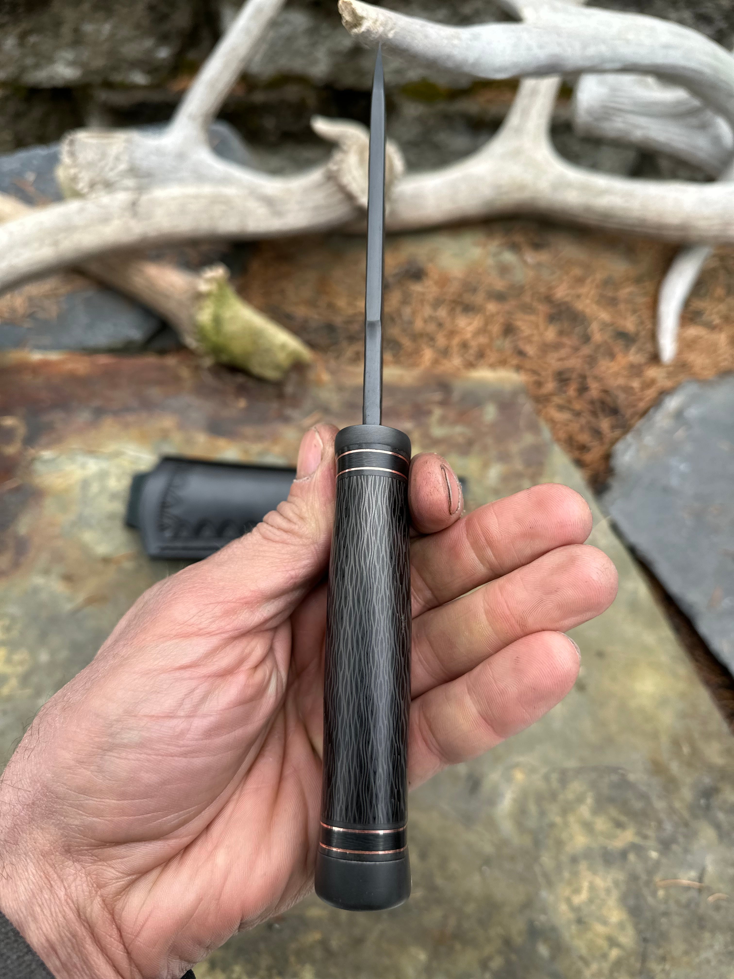 - Carbon Fiber, Copper, & Black Fiber Handle