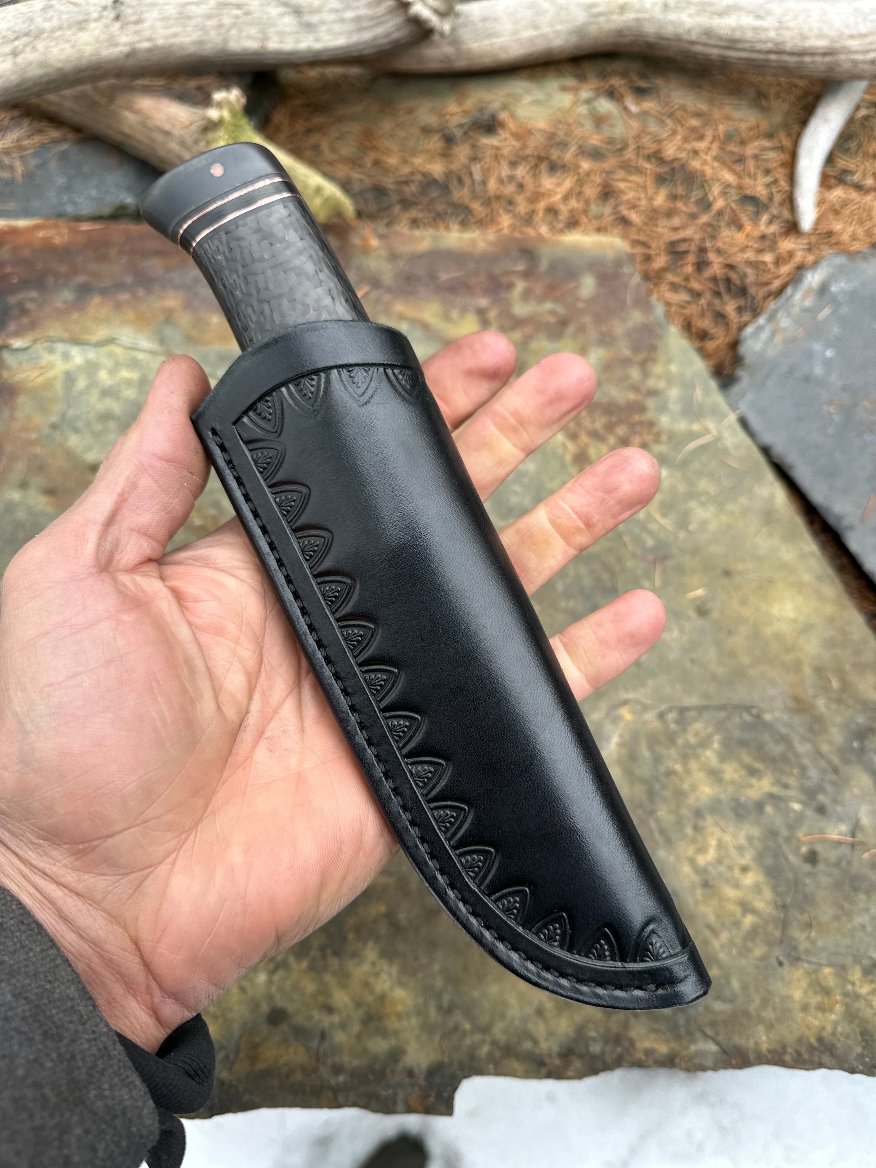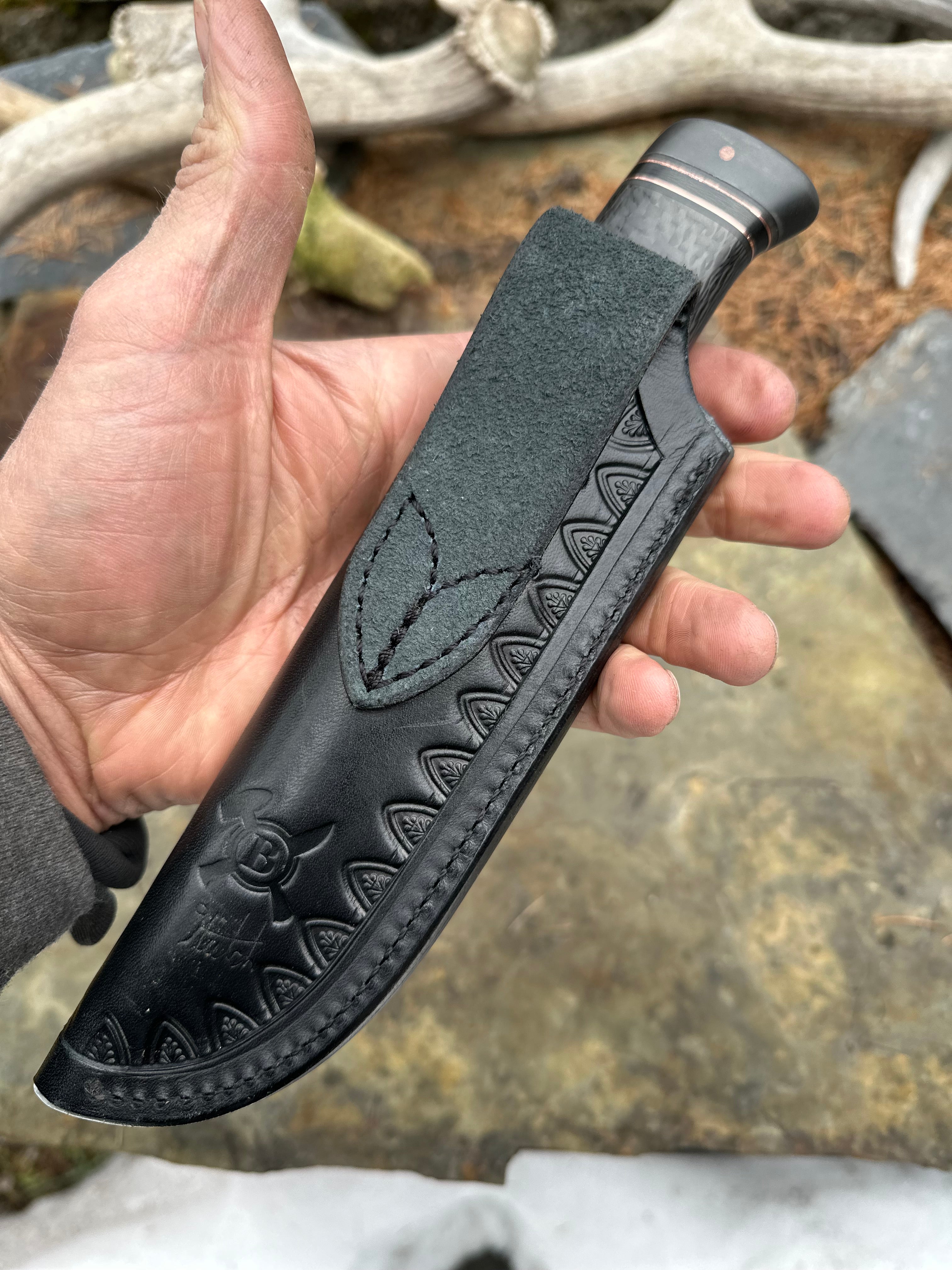 - Black Border Tooled Pouch Sheath w/ Copper Rivets