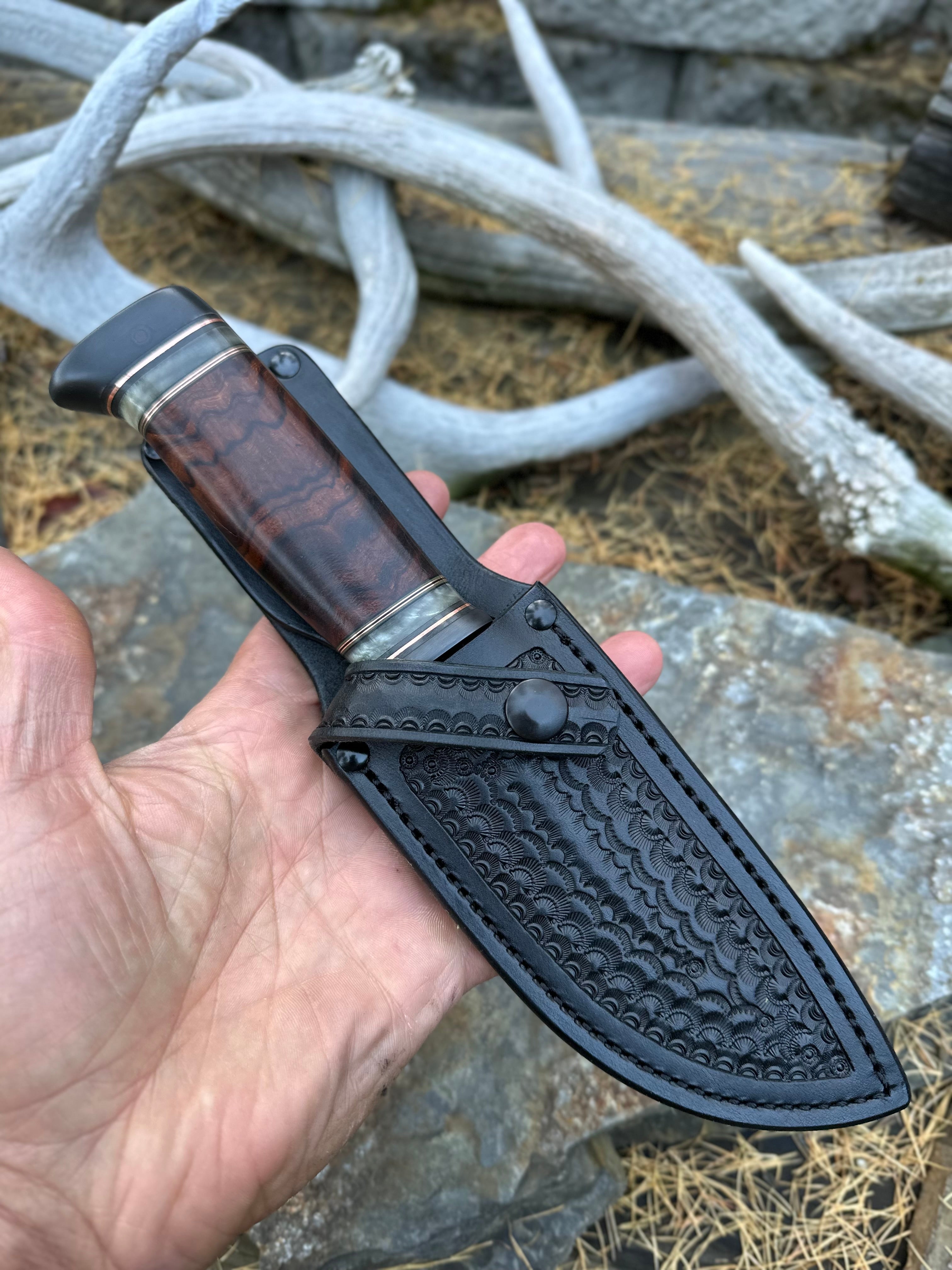 - Black Tooled Belt Sheath with Black Rivets