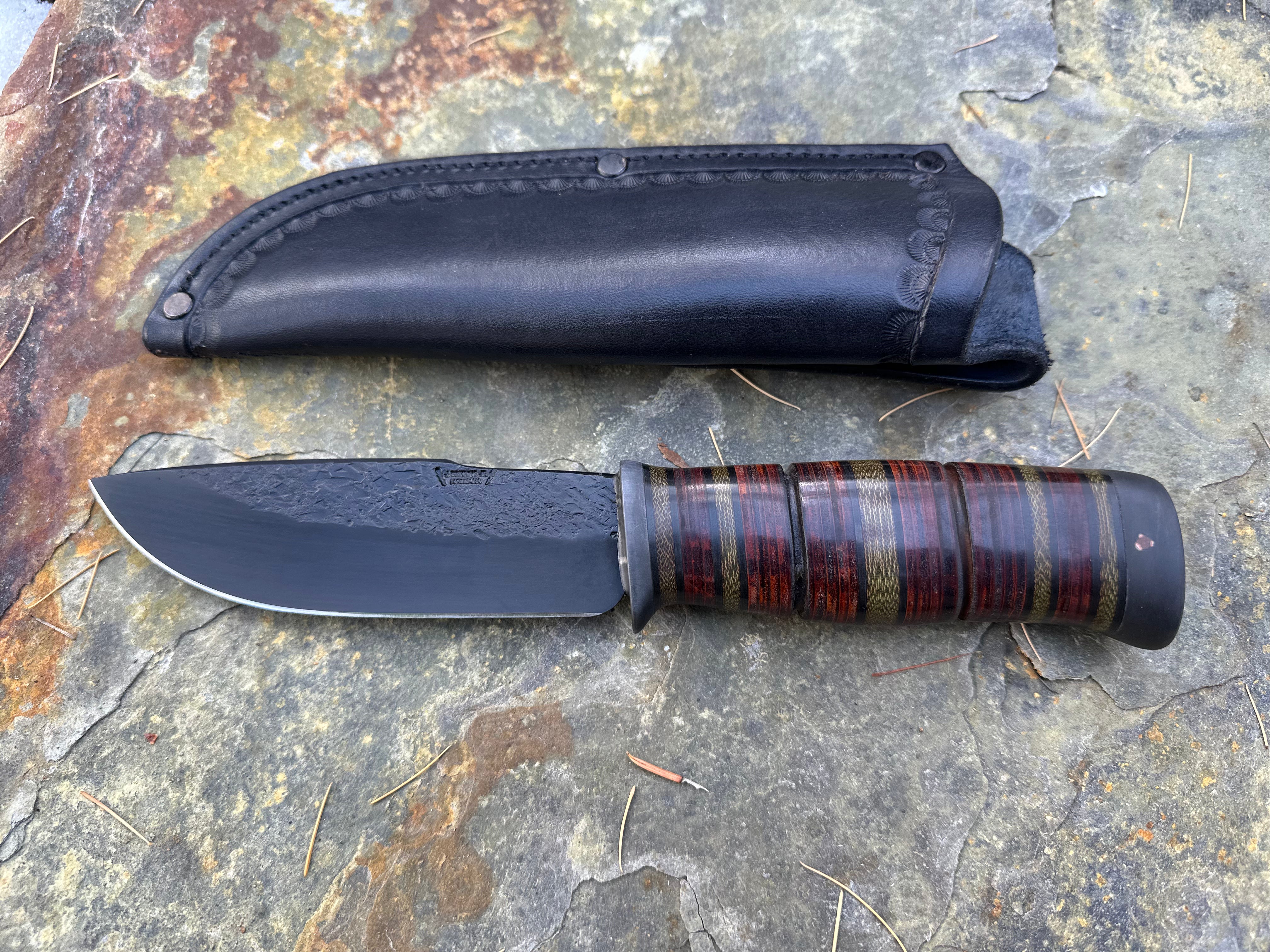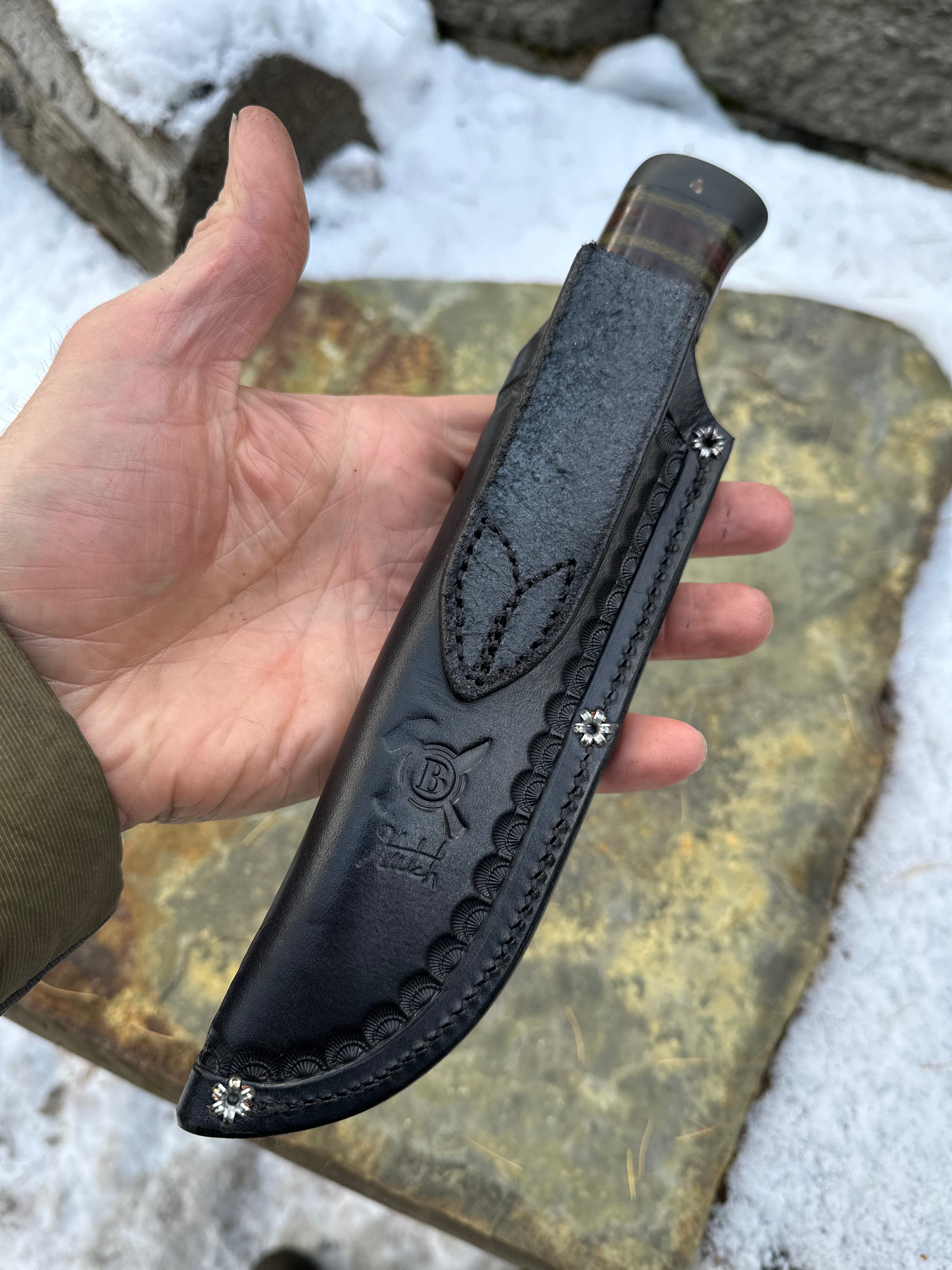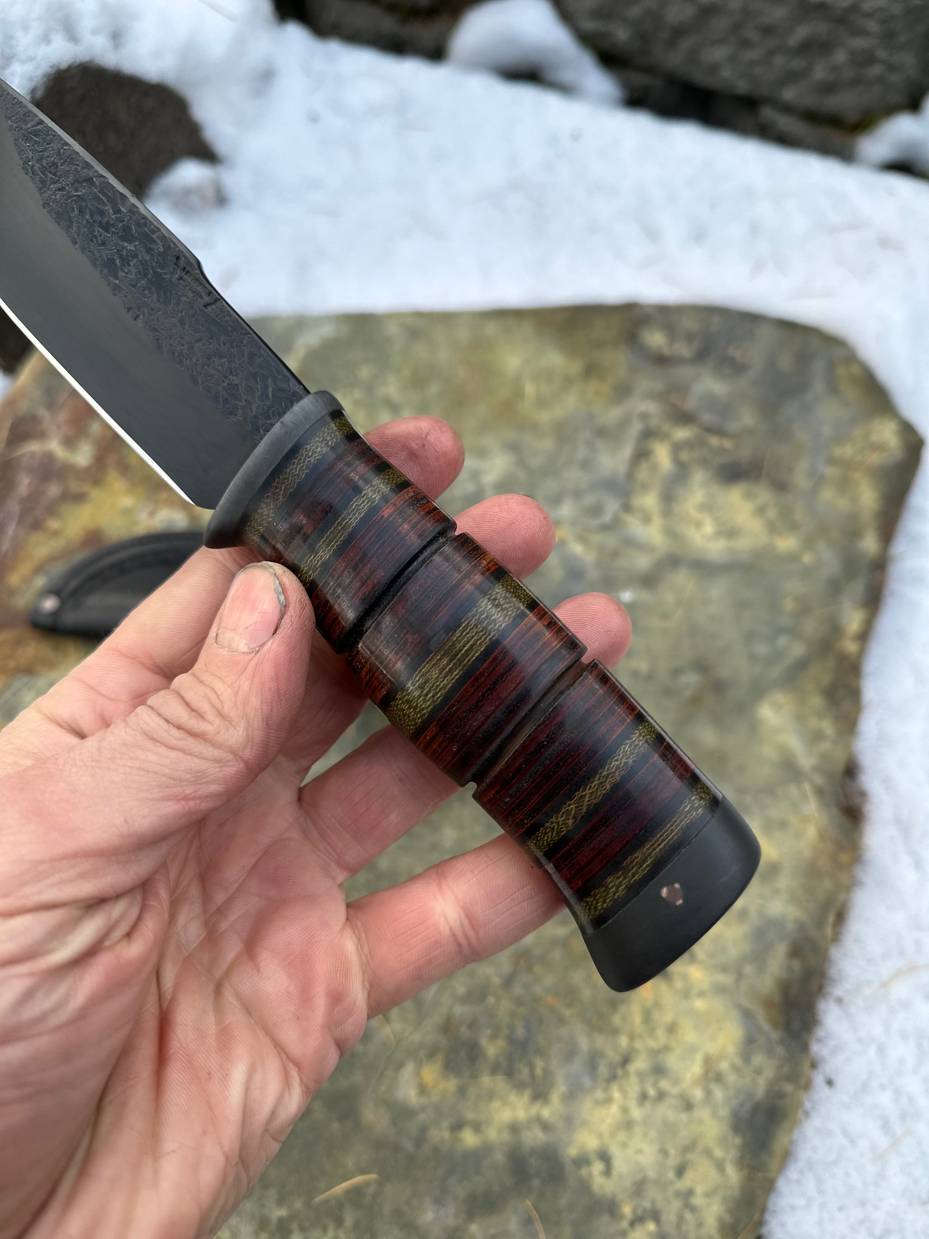 - Black Fiber, Green Micarta, & Horse Hide Handle