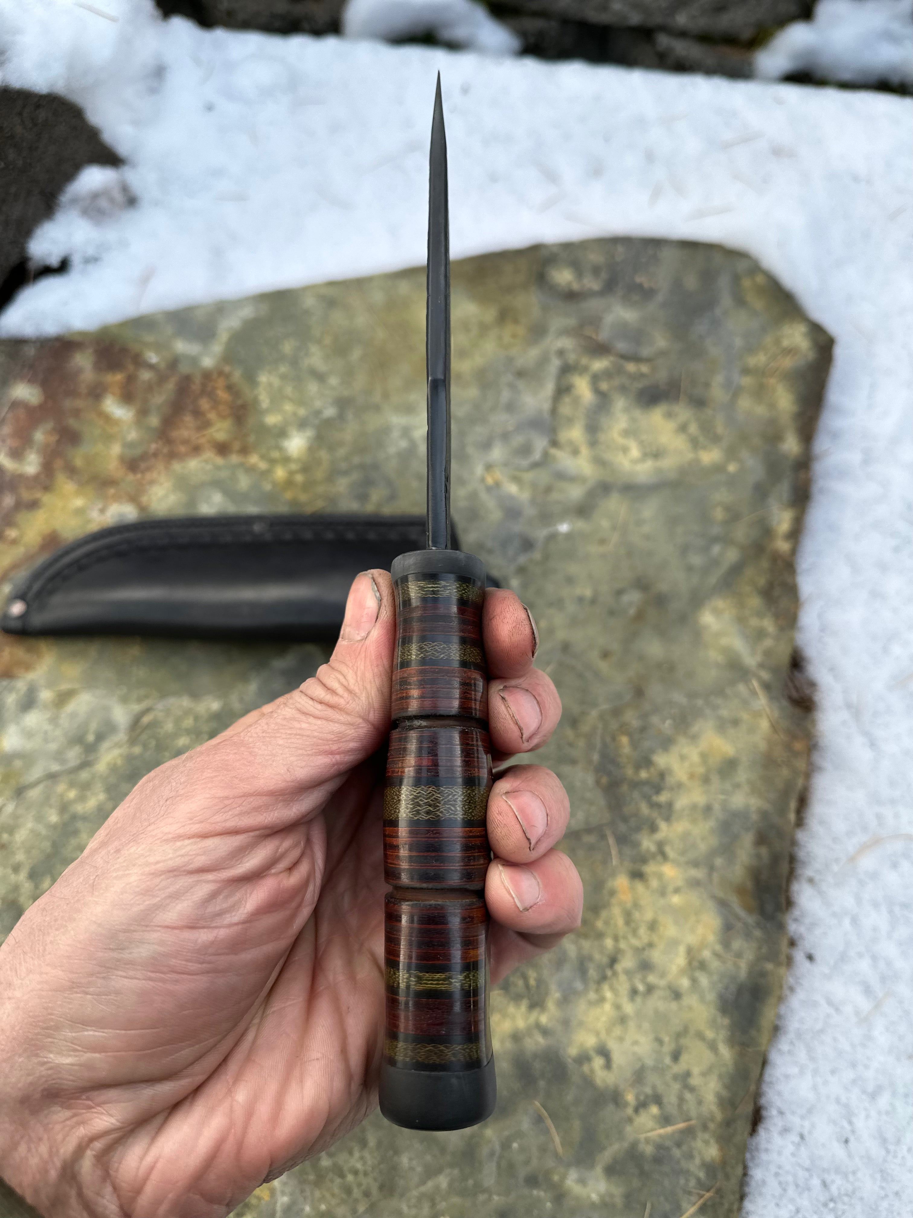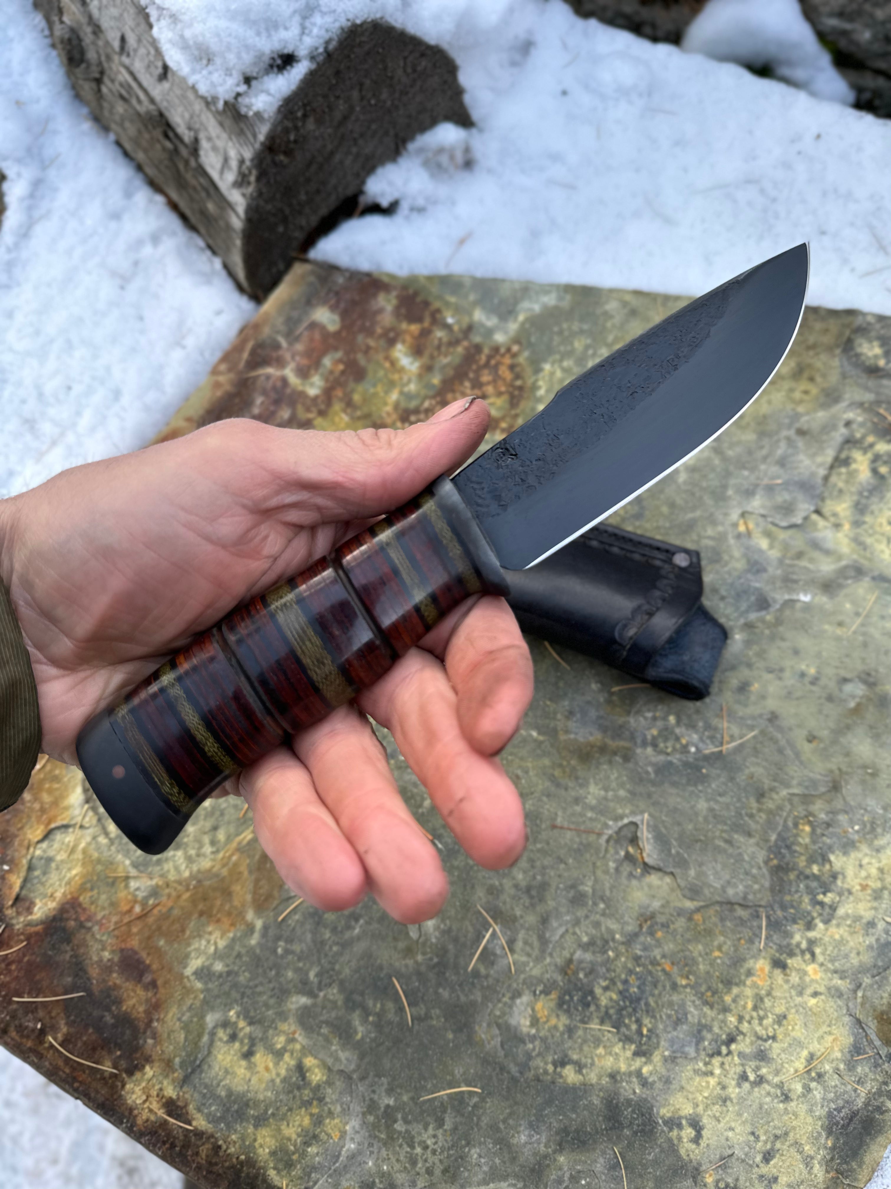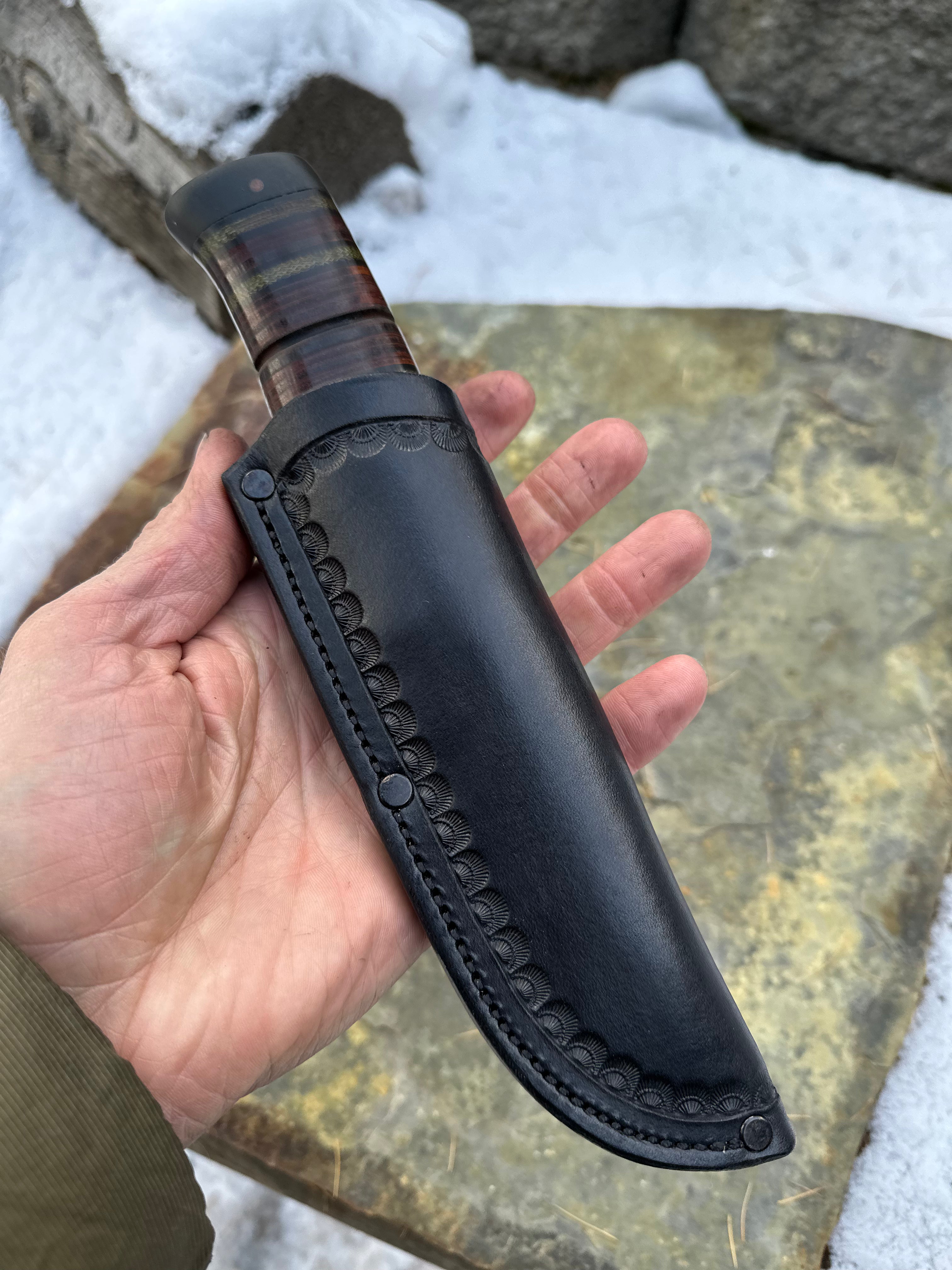 - Black Fiber, Green Micarta, & Horse Hide Handle