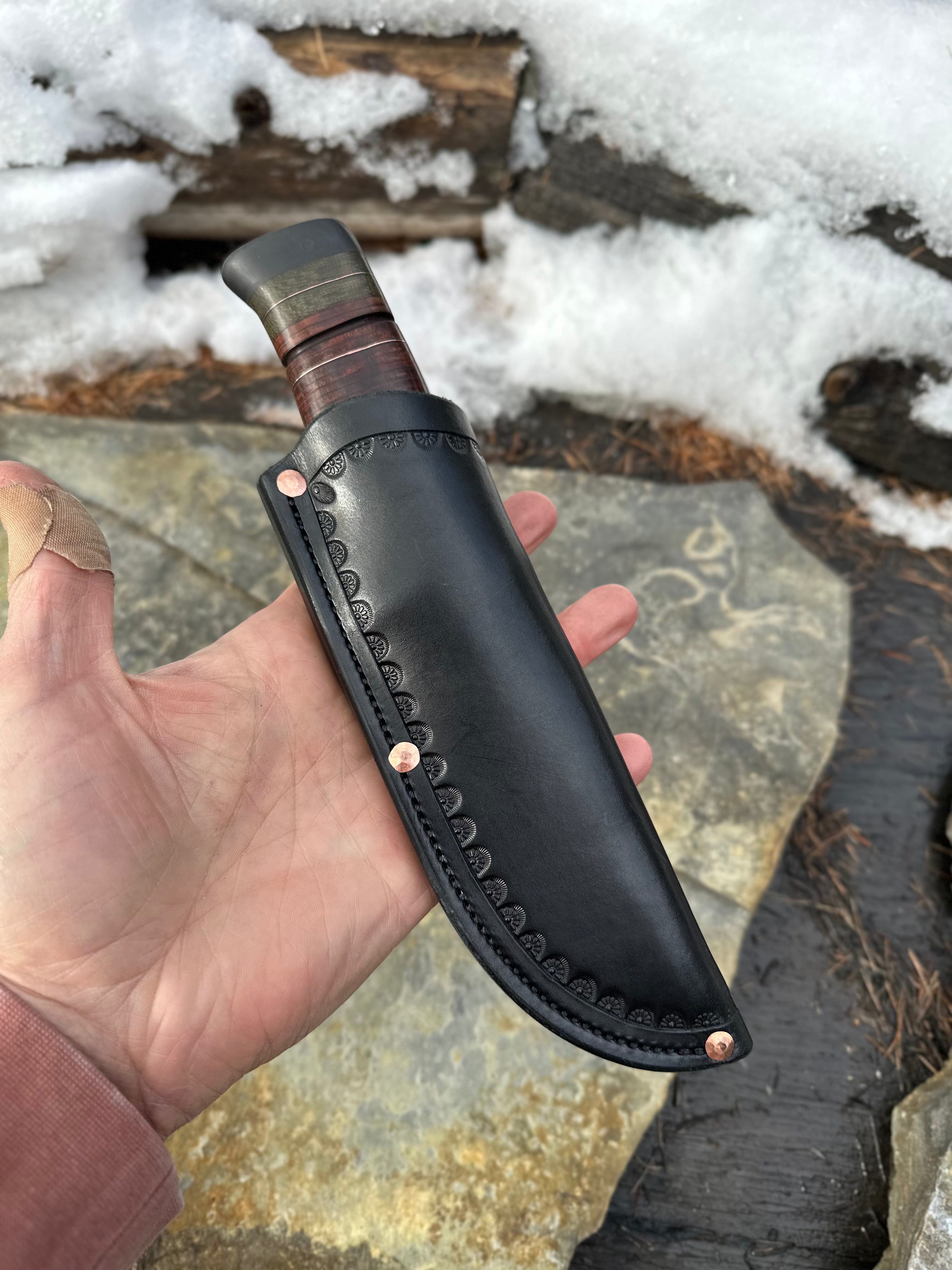 - Horsehide, Black Fiber, Copper, & Green Micarta Spacers