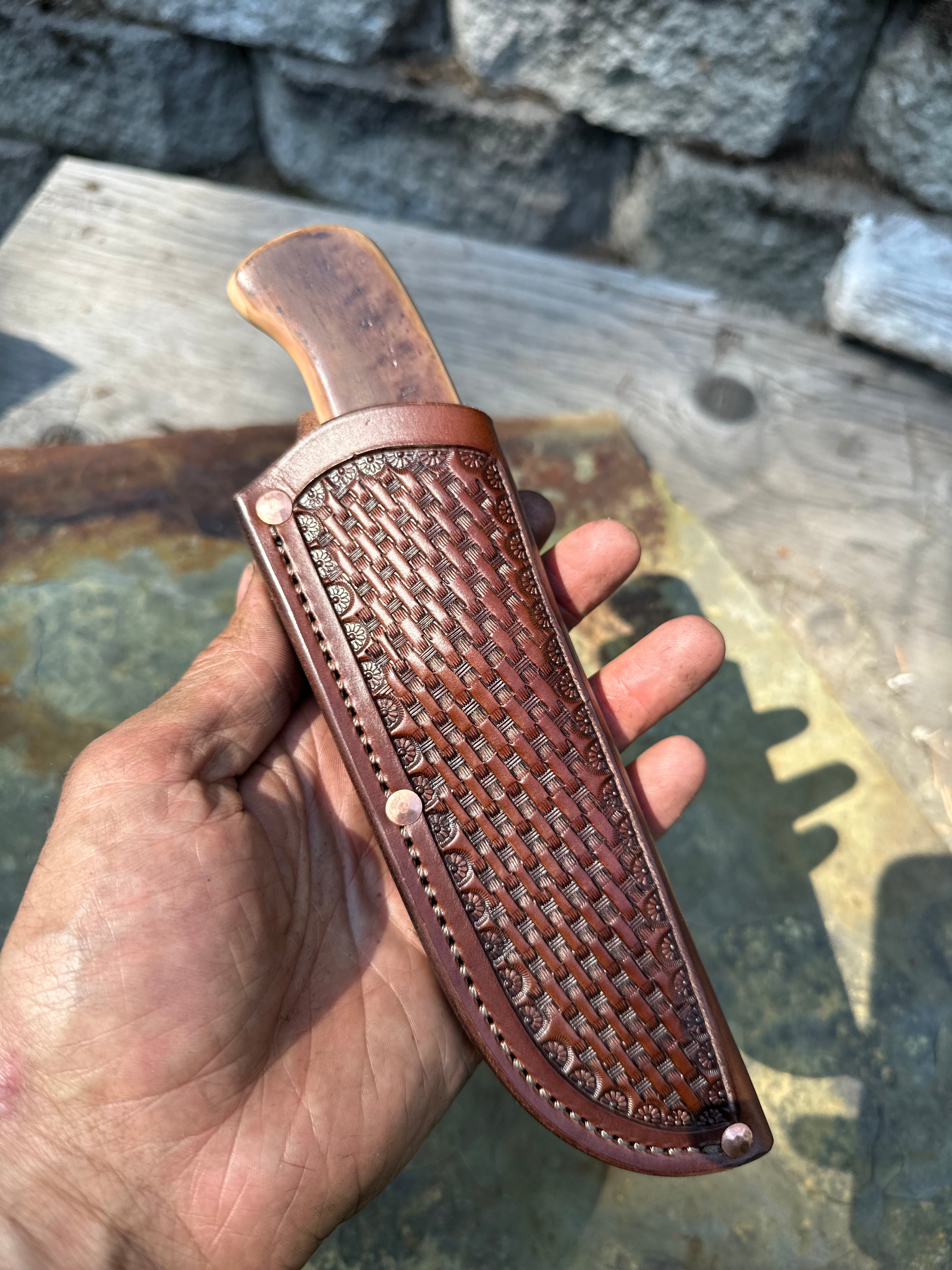 - Dark Brown Belt Sheath w/ Black Beaver Tail Inlay