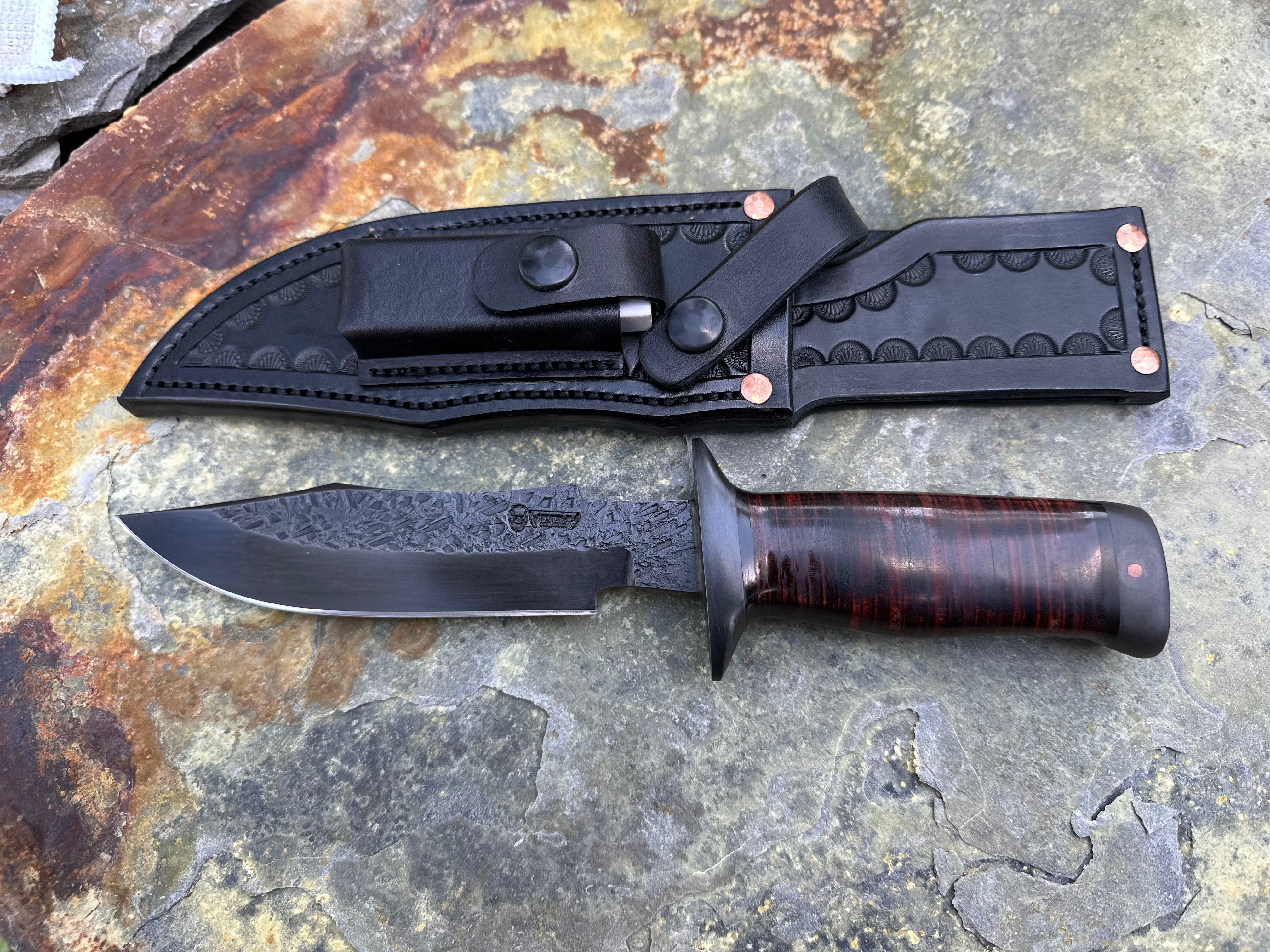 - Black Fiber, Brown Canvas Micarta, & Copper Spacers