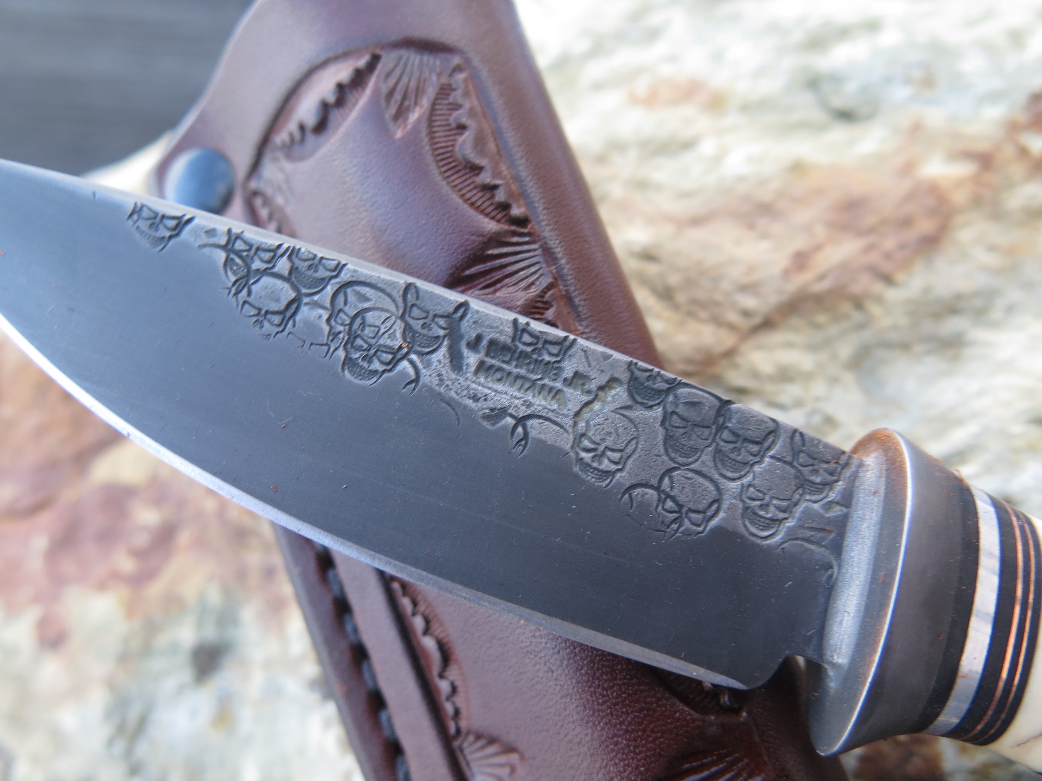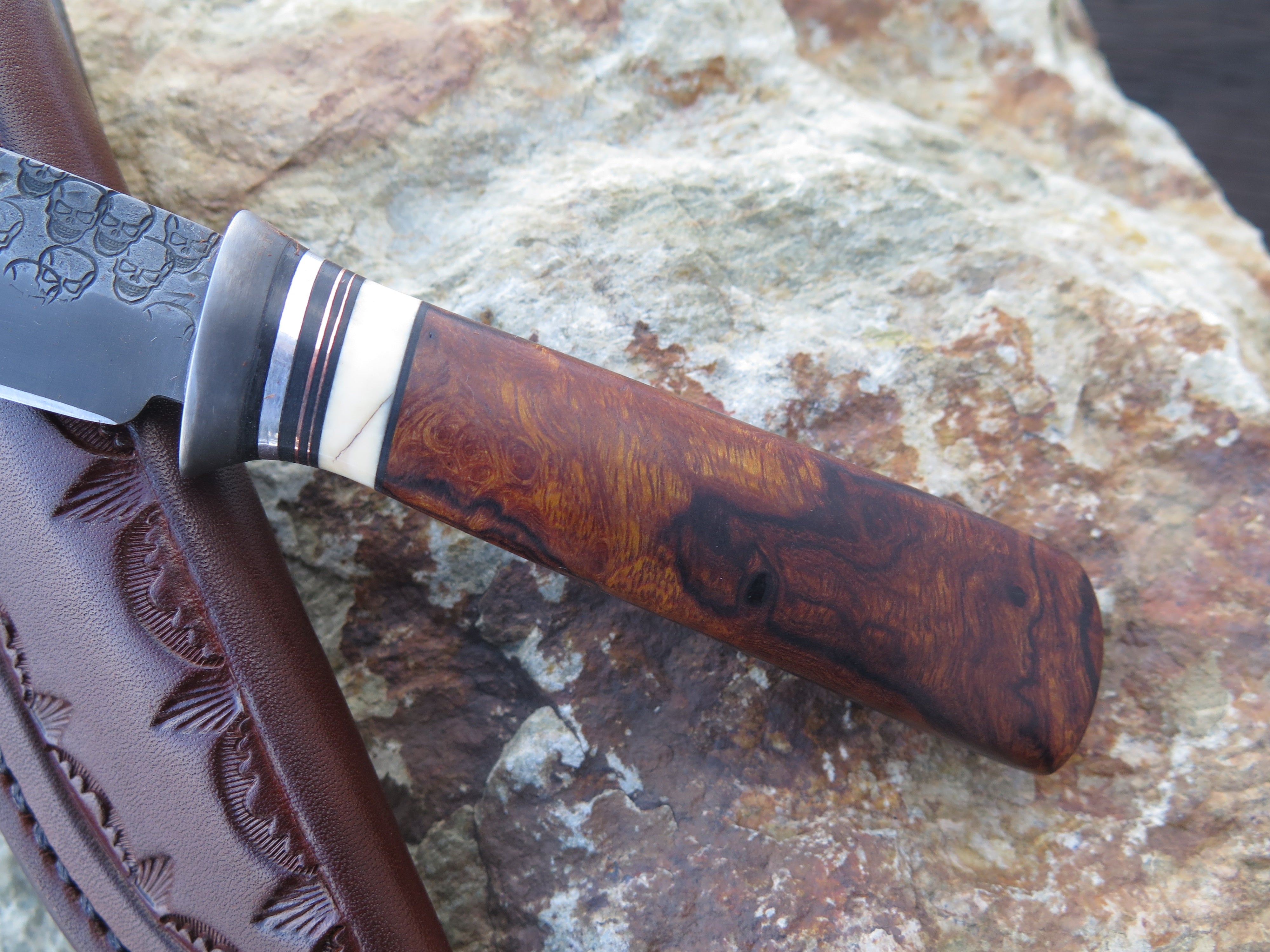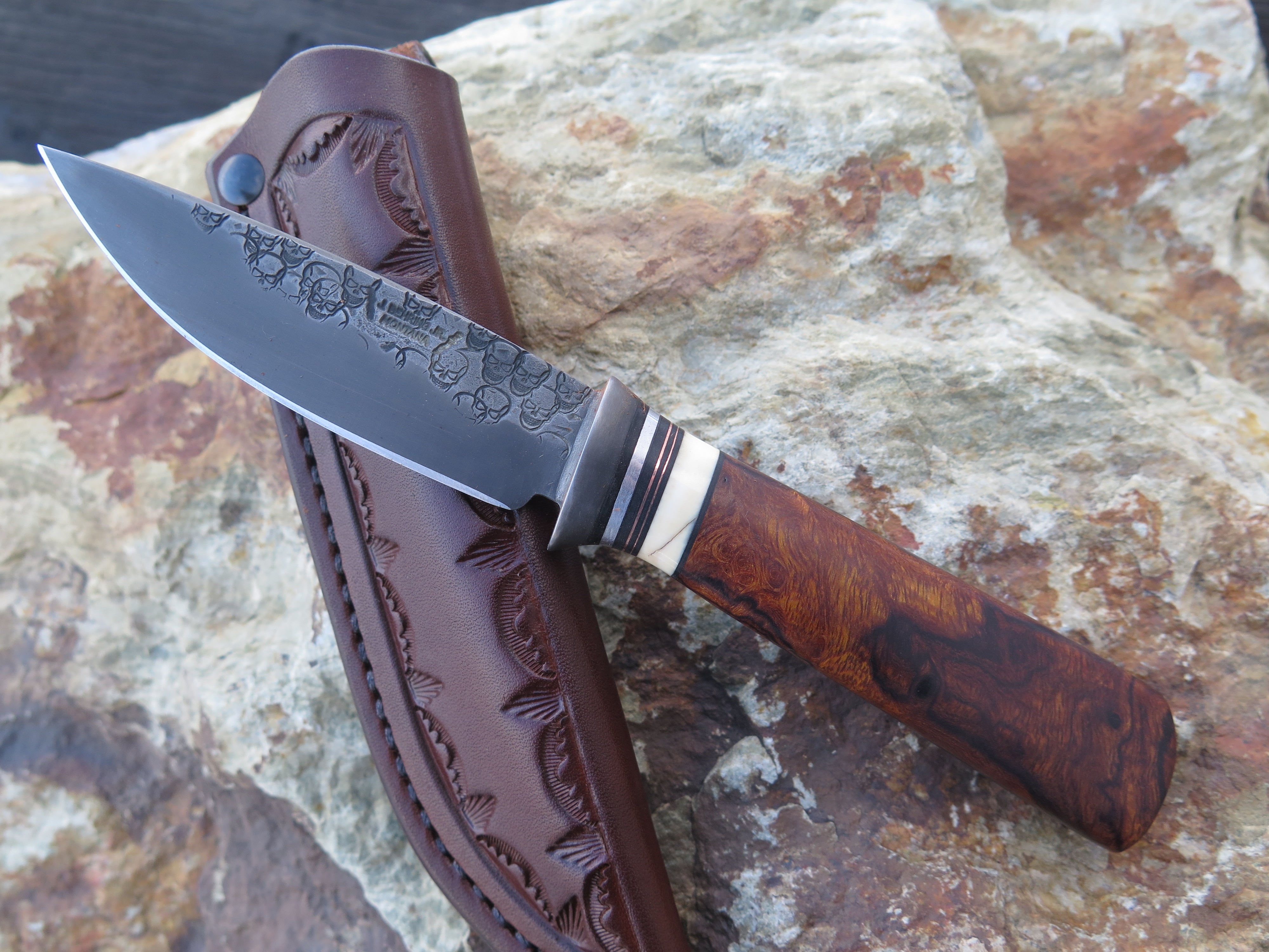 Desert Ironwood and Walrus Blued Ghost Skull Mini Drop Point