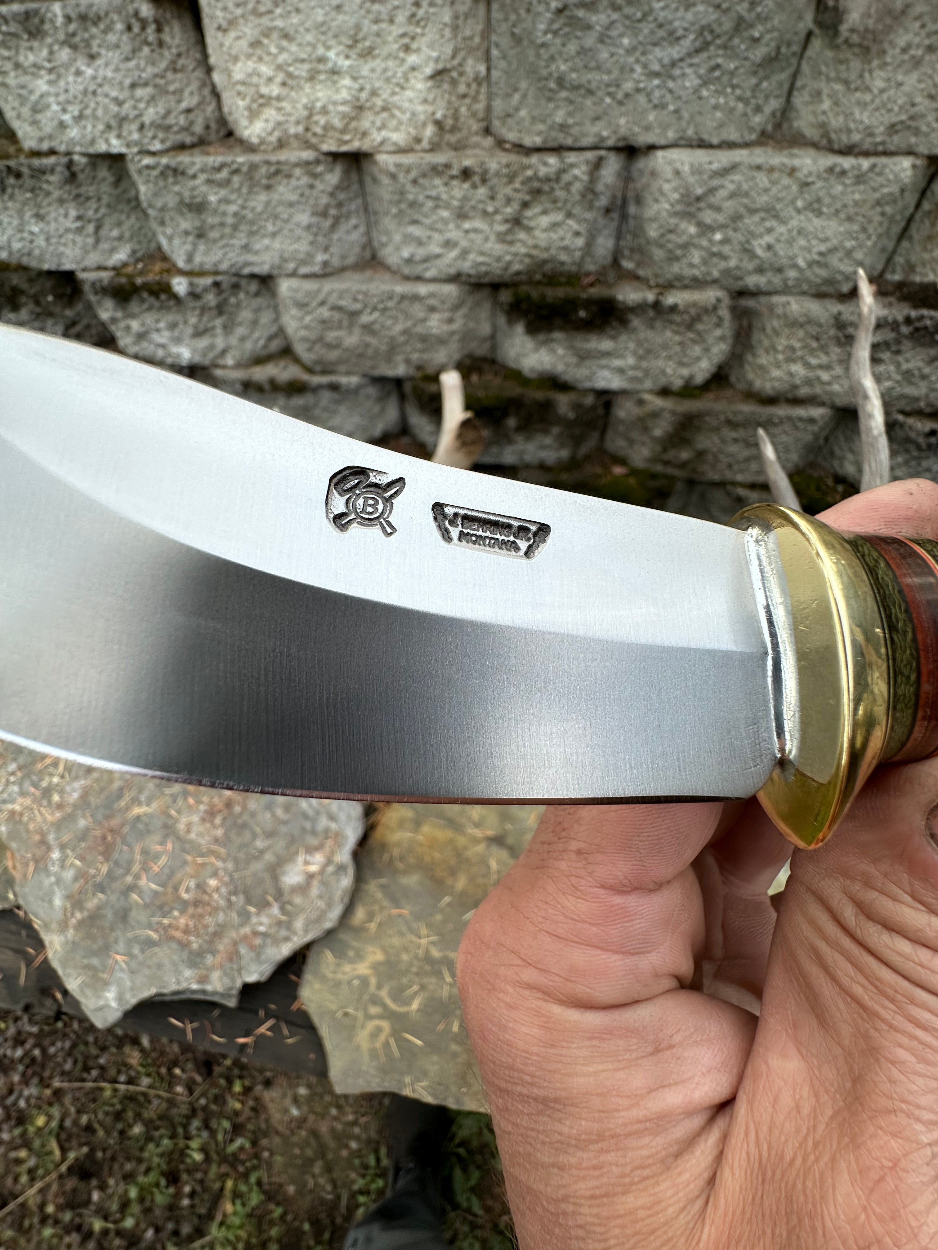 - Green Micarta, Horsehide, Maroon Fiber, Brass, & Black Fiber Spacers