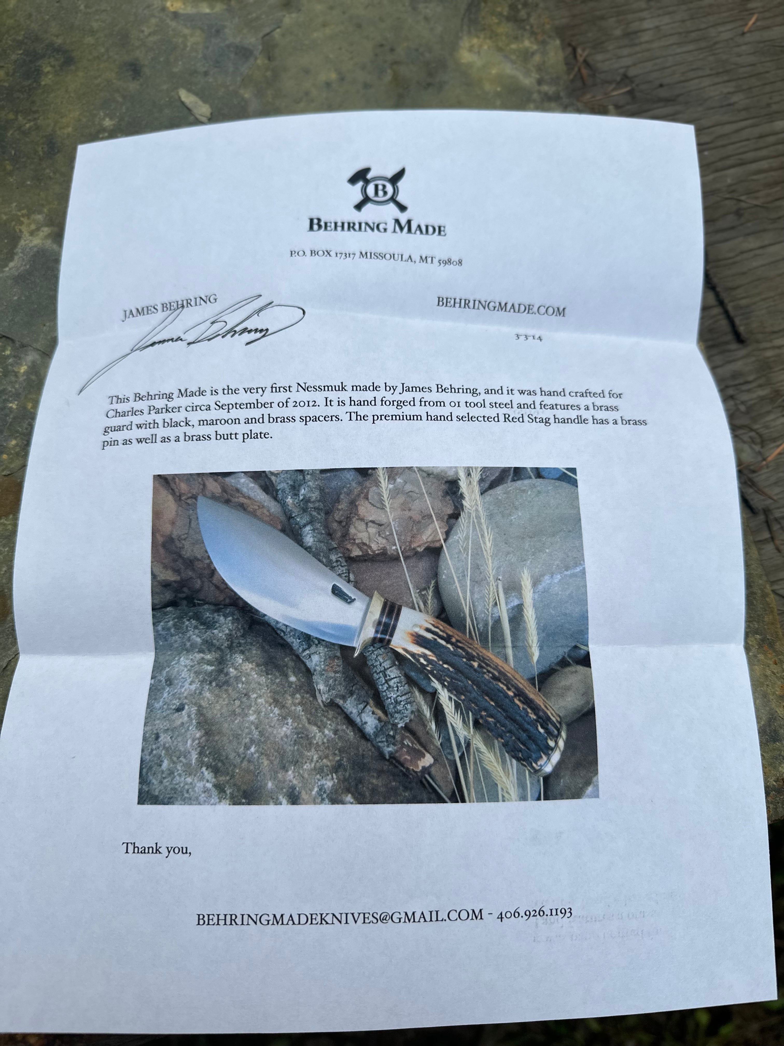 - This is a Pre B Logo Knife was made September 2012. It is the first Nessmuk I made and it comes with a signed letter.