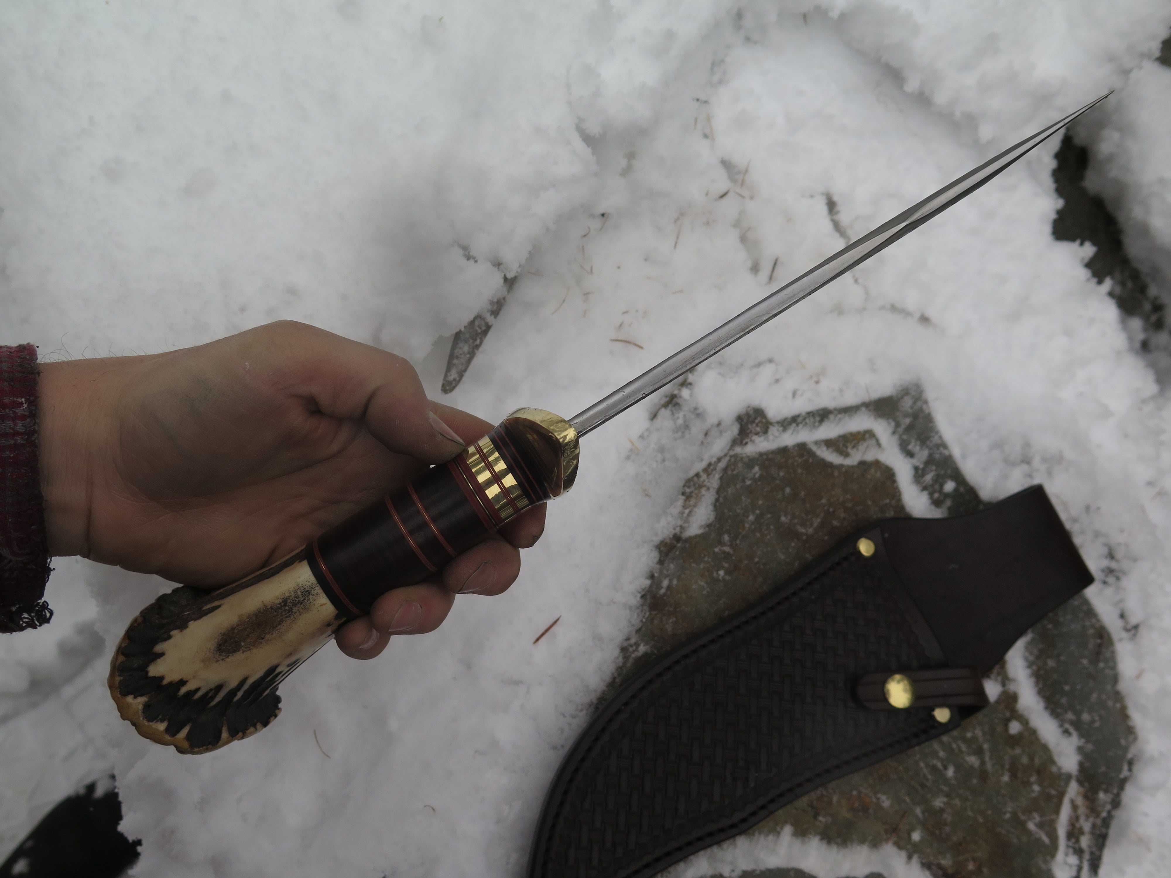 Crown Stag & Horsehide Scagel style Bowie