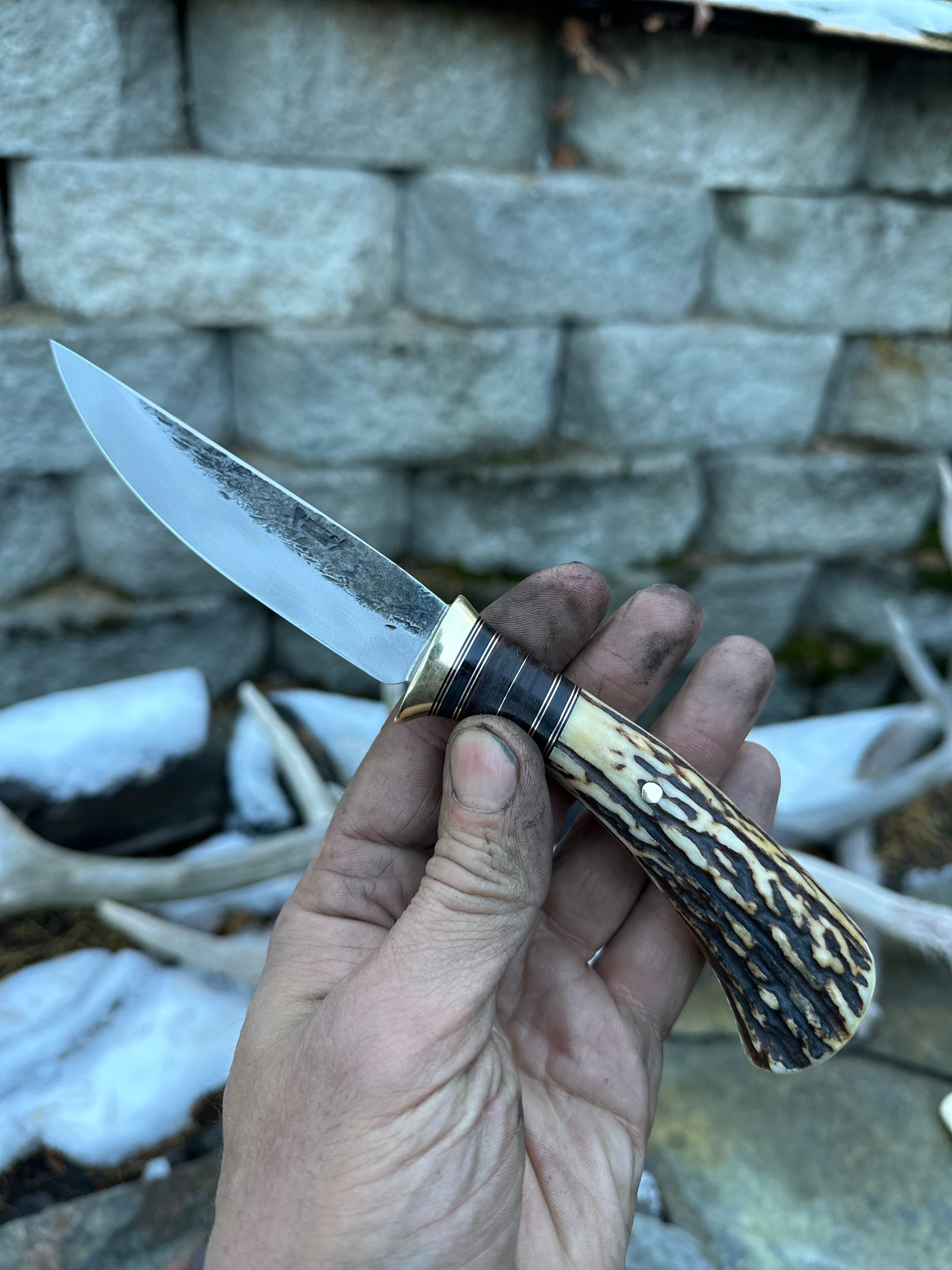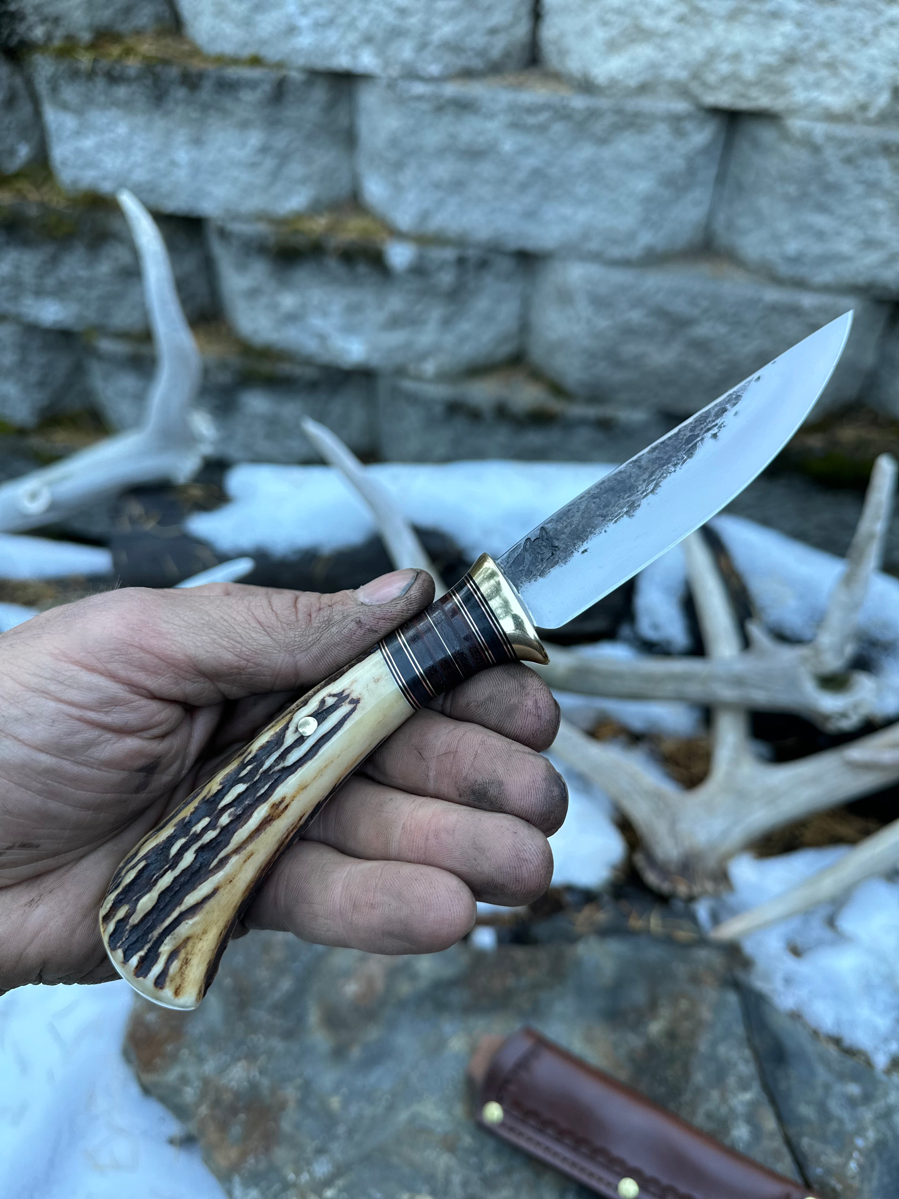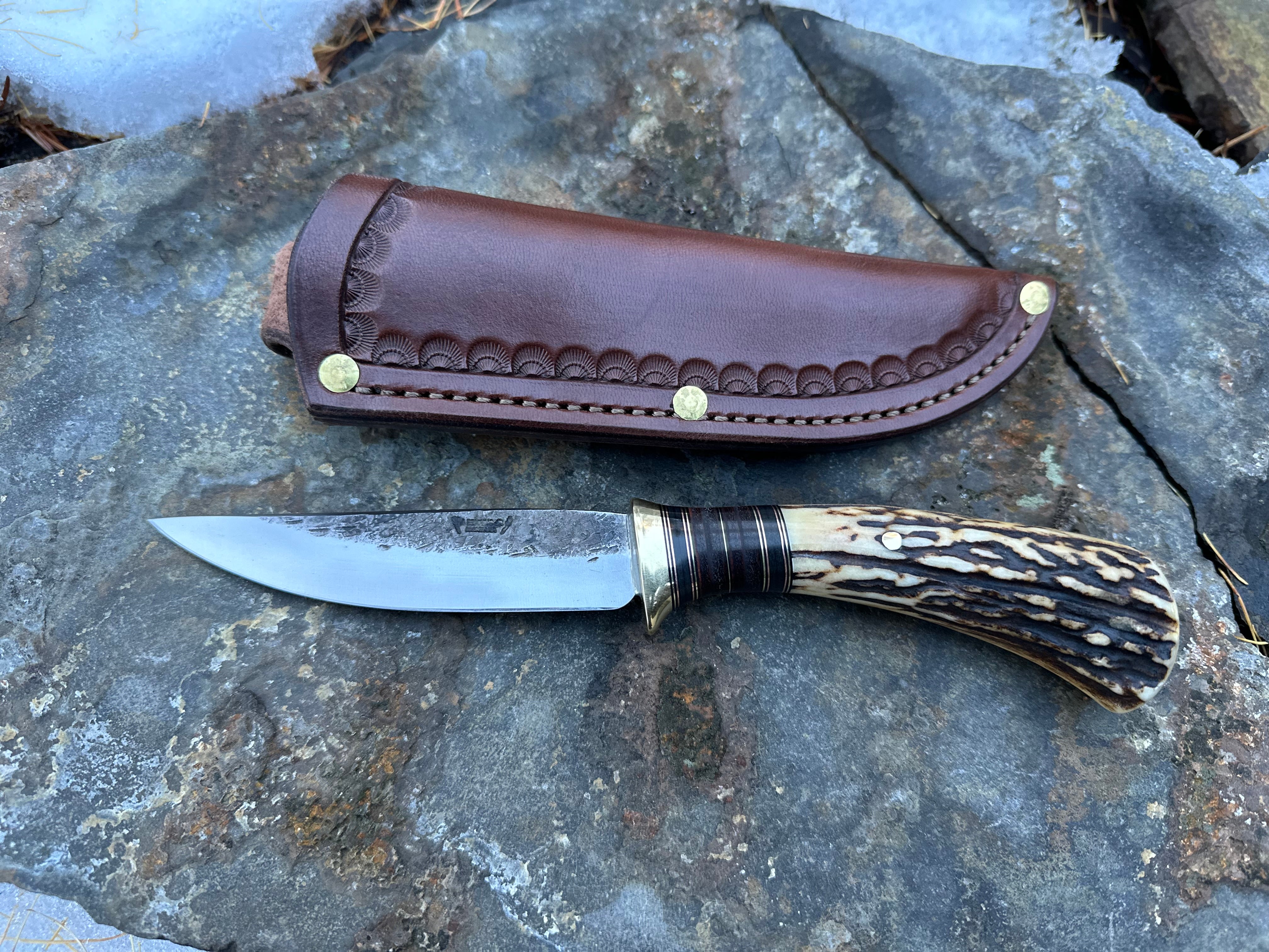 - Brown Border Tooled Pouch Sheath w/ Brass Rivets