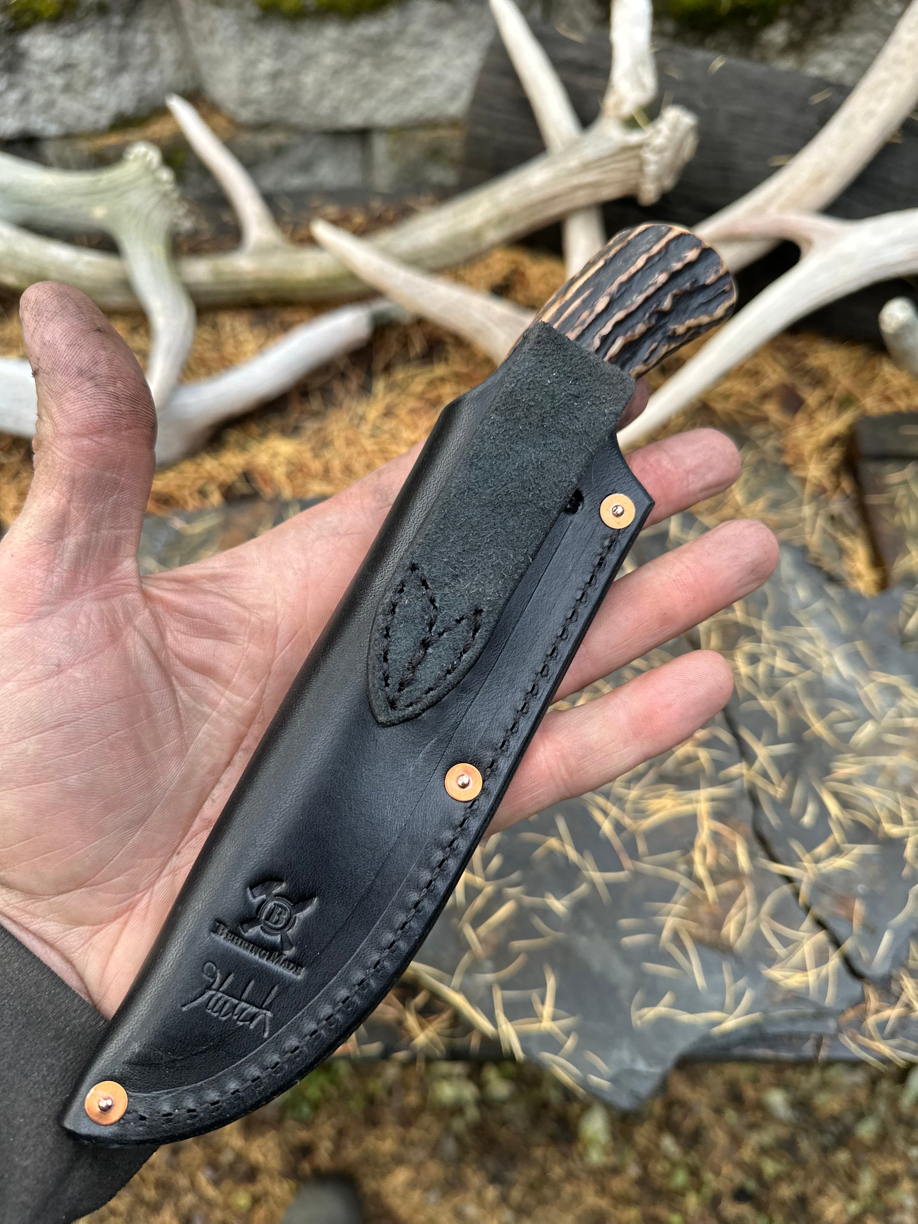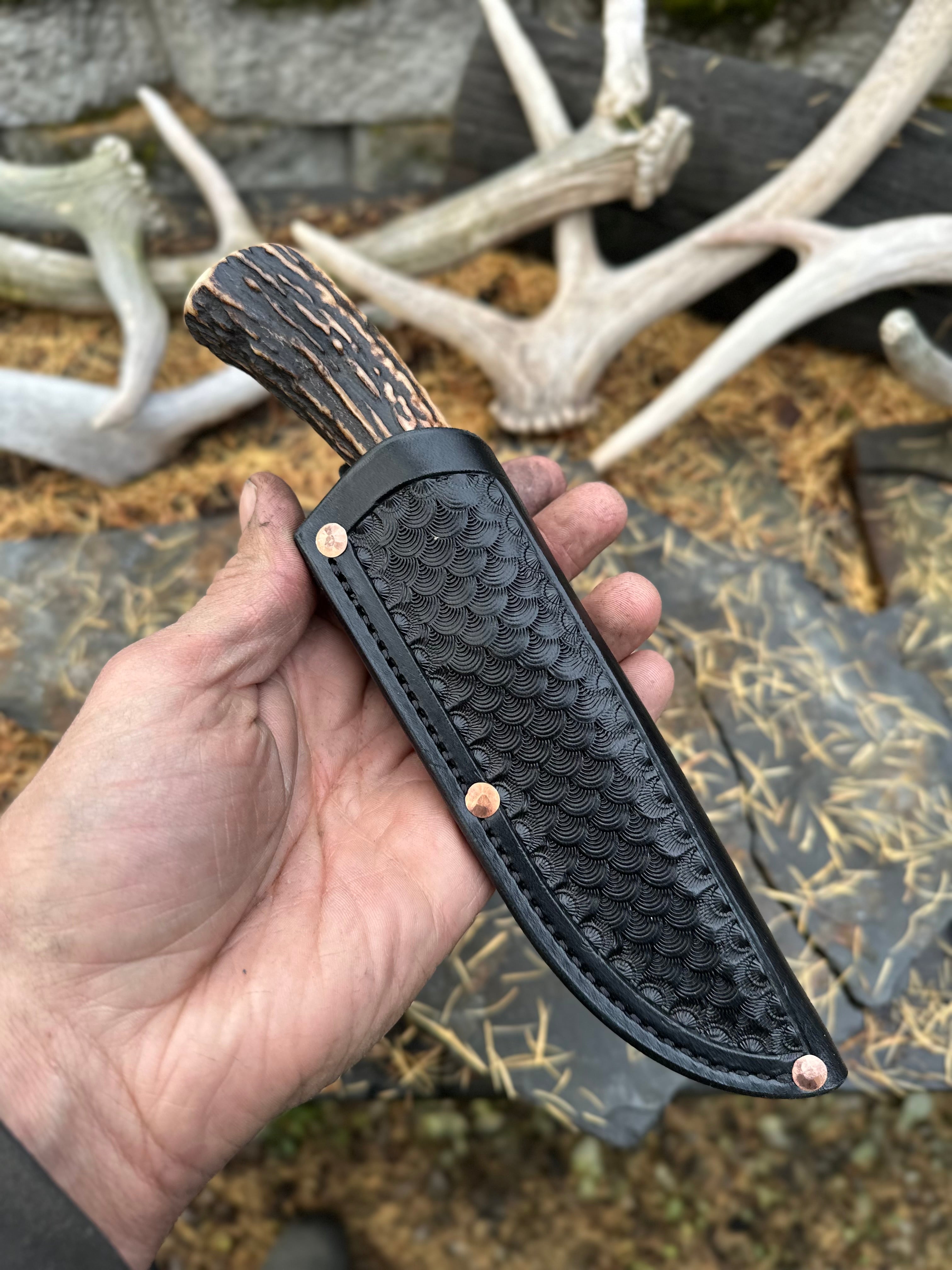 - Black Tooled Pouch Sheath w/ Copper Rivets