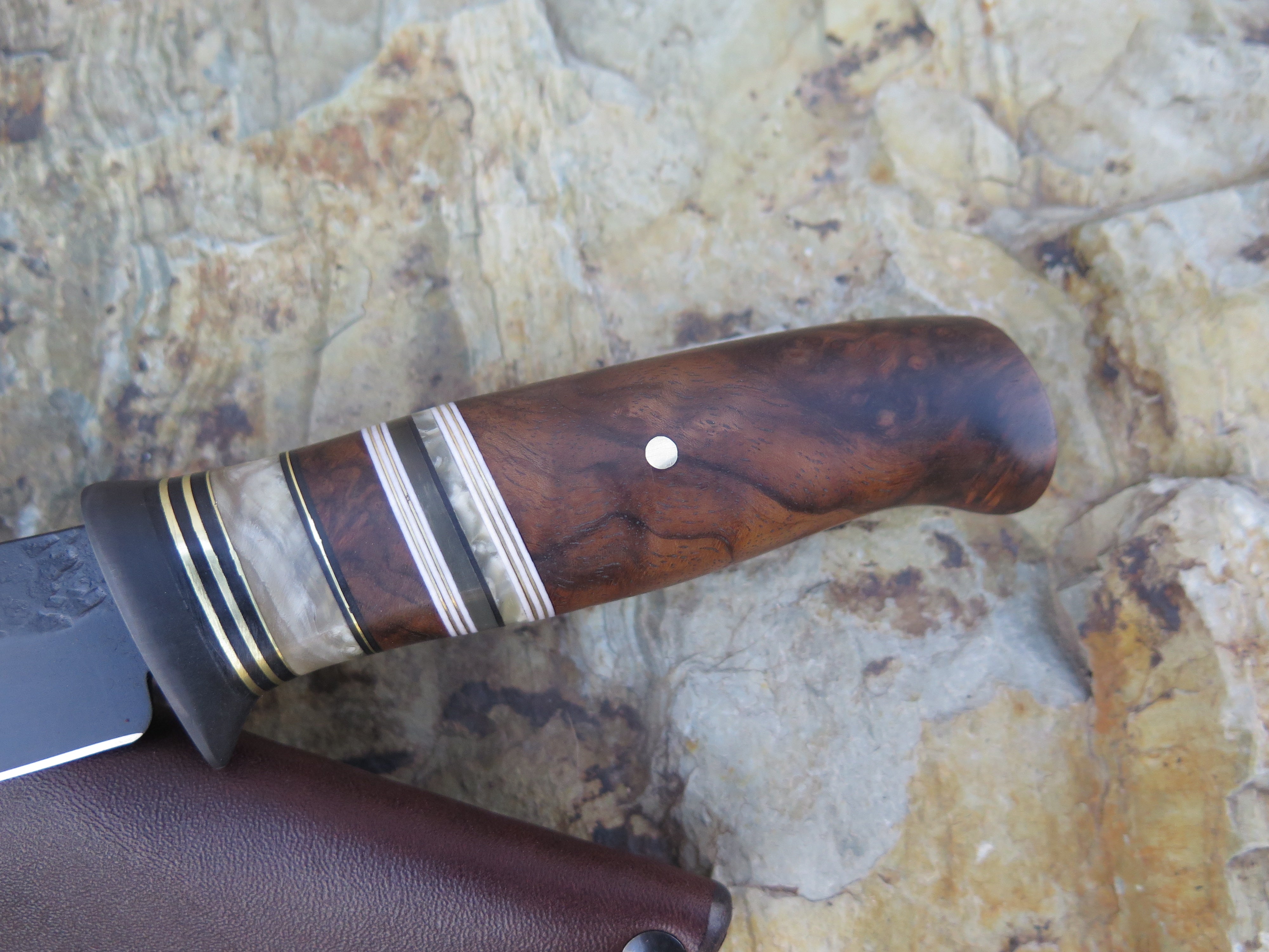 Turkish Walnut and Musk Ox Boss Blued Clip Point