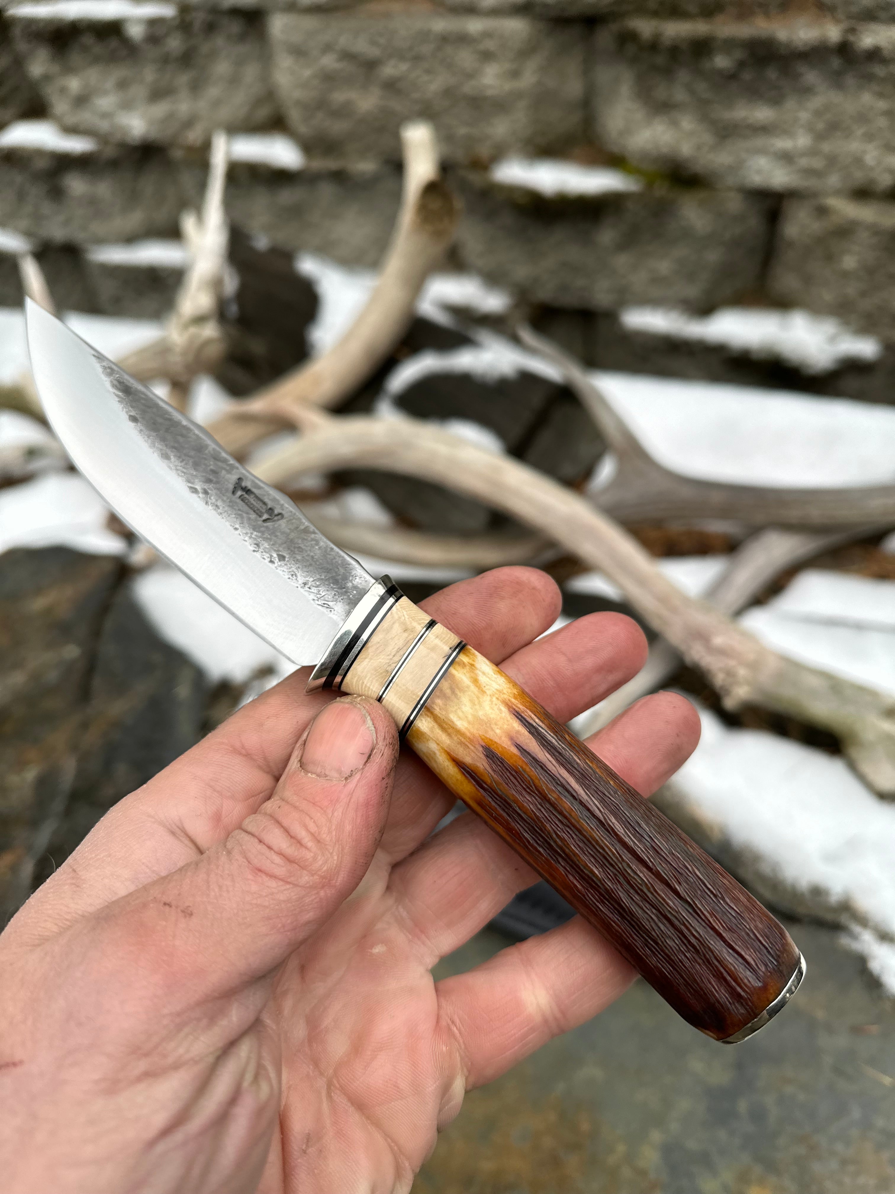 - 100+ Year Old European Stag Handle w/ original German Silver Butt Plate. The stag looks to have been hand jigged for texture, and it looks really cool!