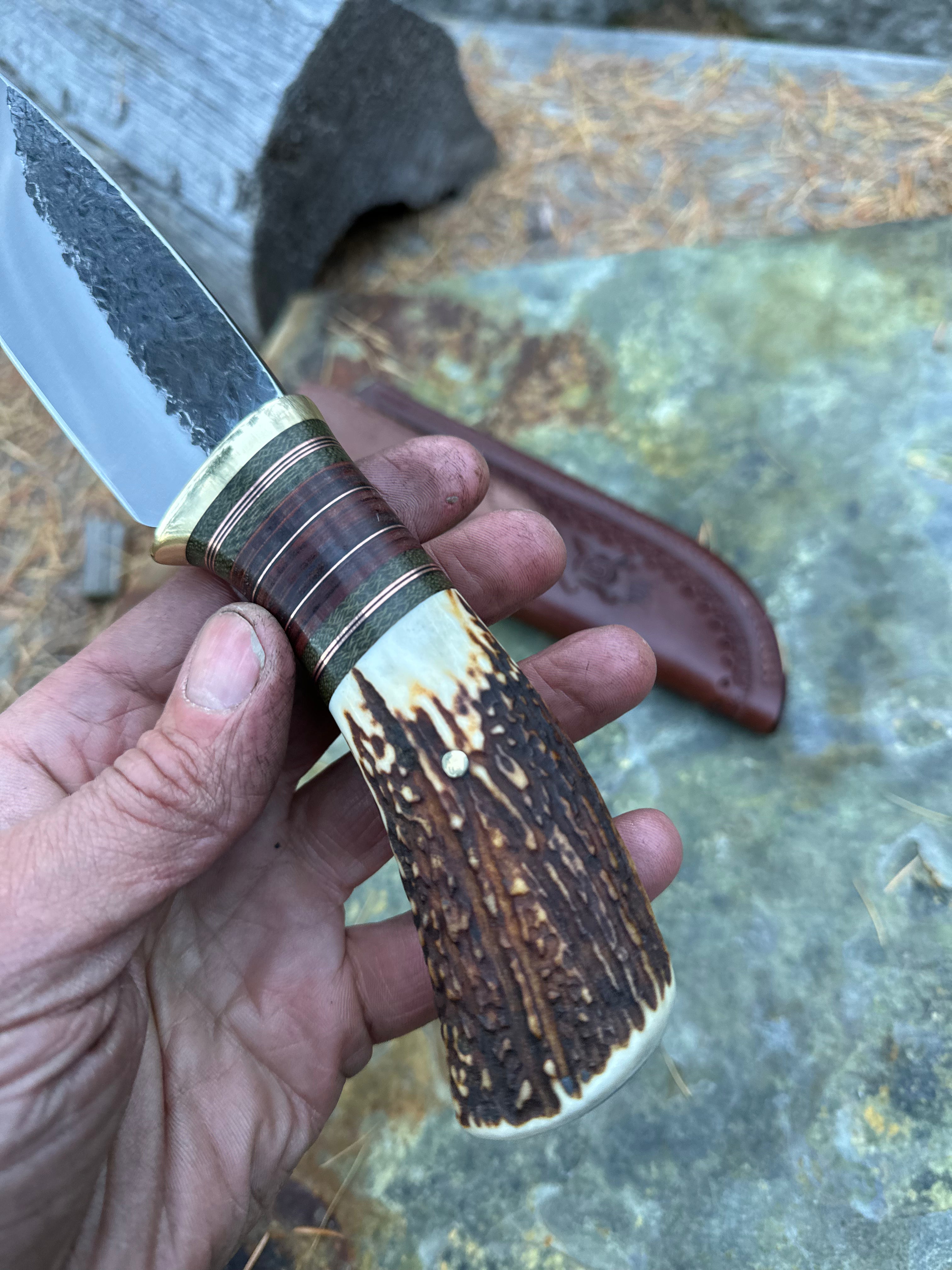 XL Red Stag & Horsehide Drop Point